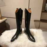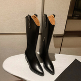 Флисовые высокие высокие сапоги с заостренным носом, из натуральной кожи