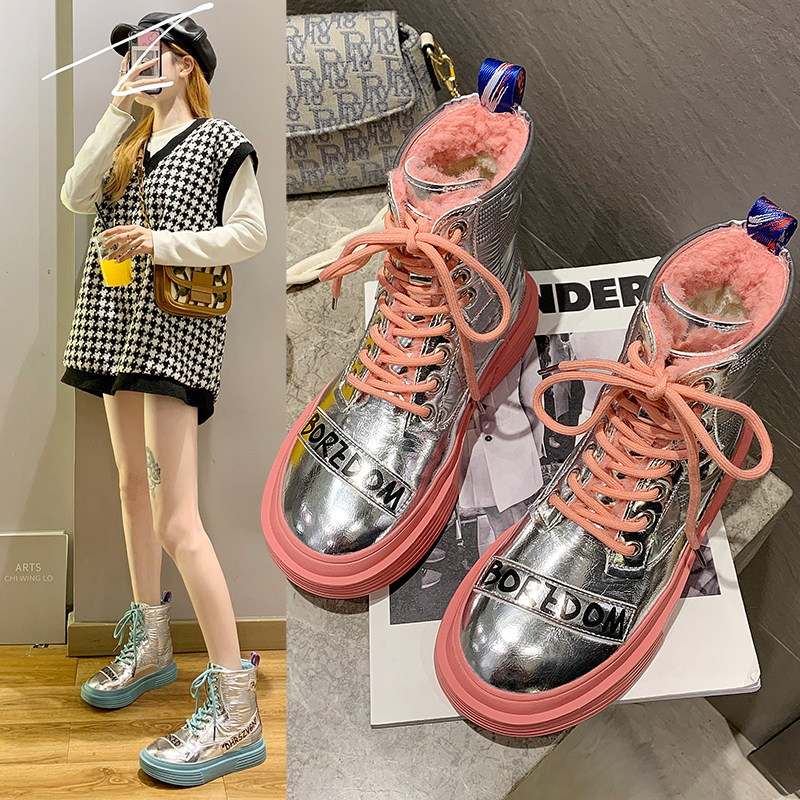 Сапоги, зимняя флисовая модная обувь на платформе, 2020 года