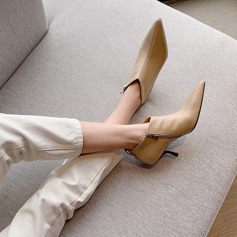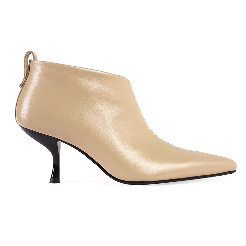 Весенние ботильоны с заостренным носом, обувь на высоком каблуке, зимние короткие сапоги, осенние, французский ретро стиль, из натуральной кожи