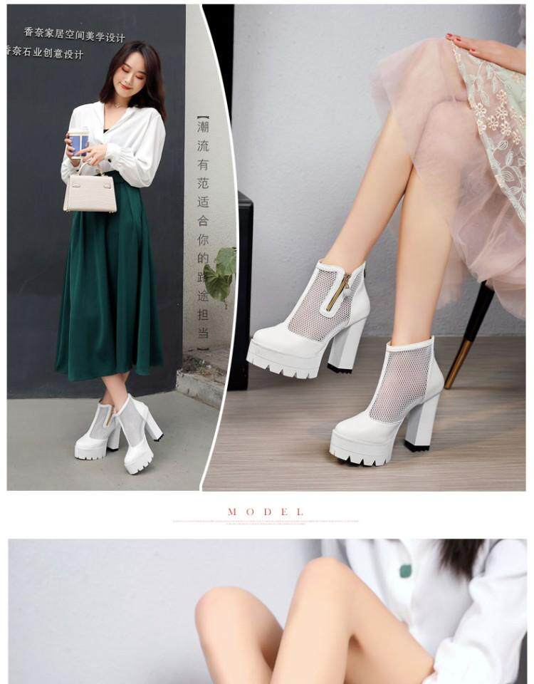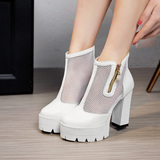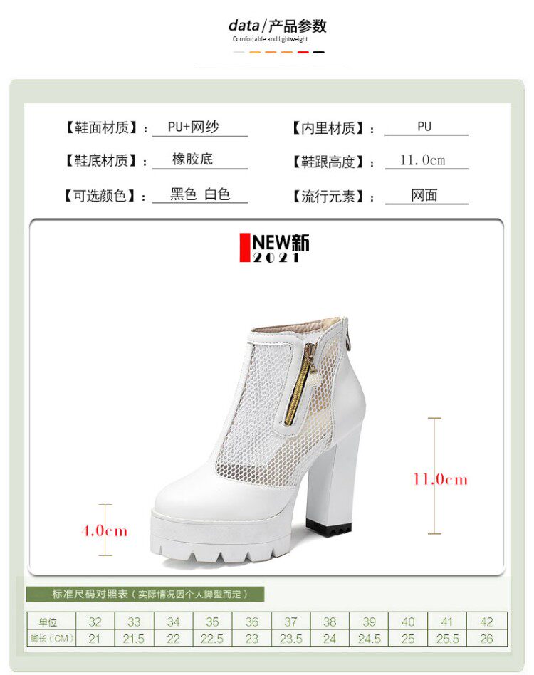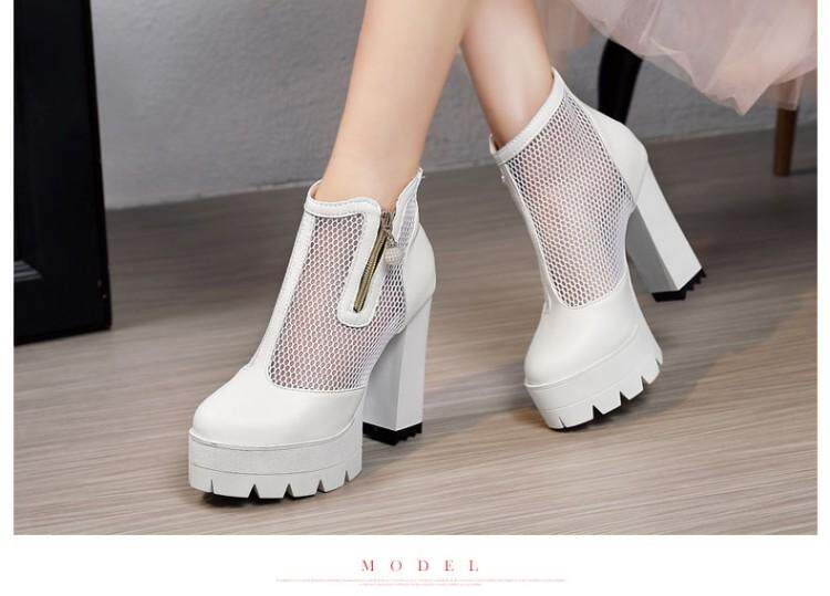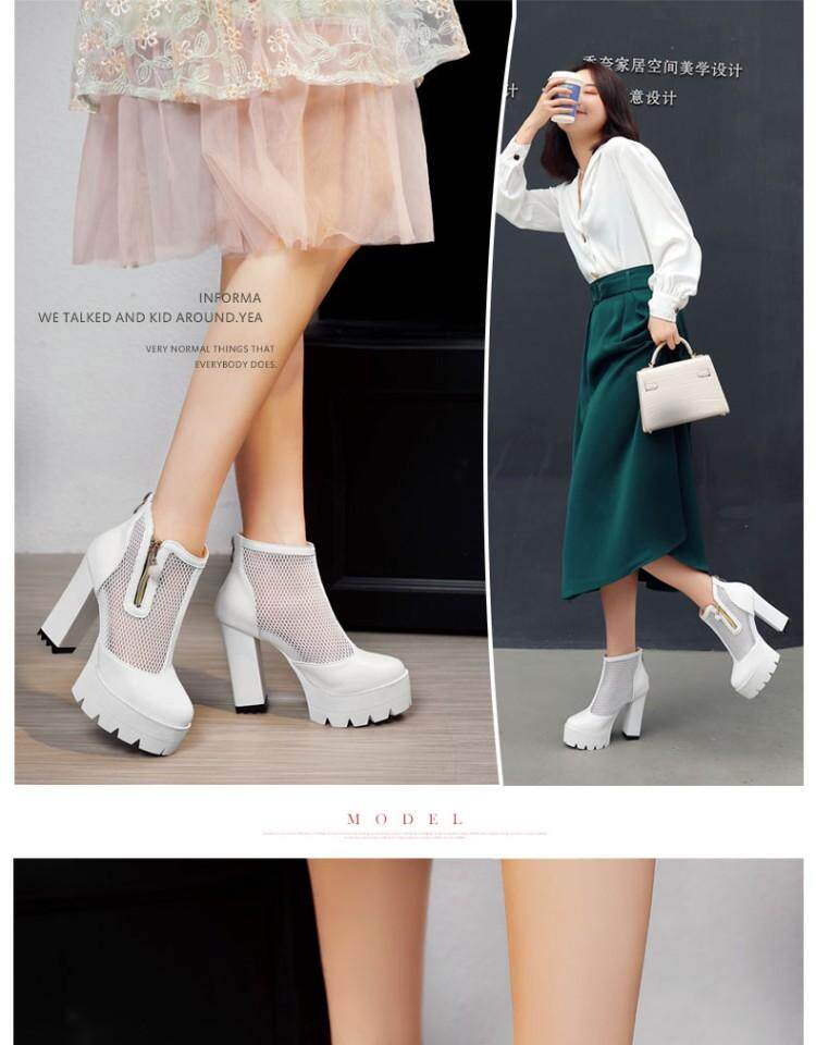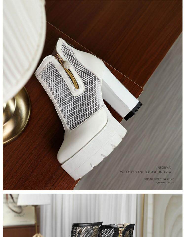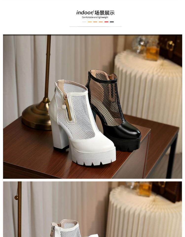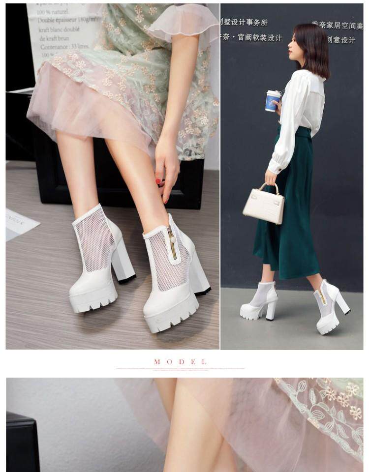 Белые римские сандалии на очень высоком каблуке 11 см, новинка 2021 года, весенние сапоги в сетку, непромокаемые короткие женские сапоги на толстом каблуке на платформе, большой размер