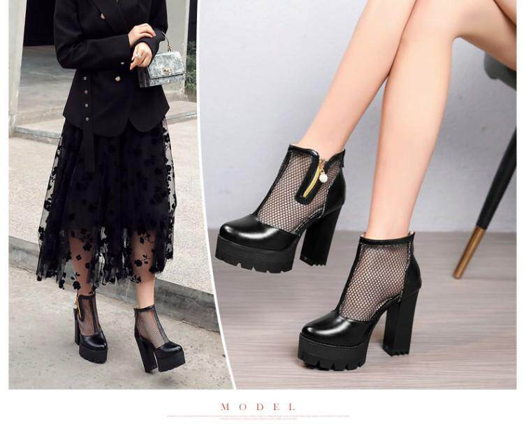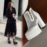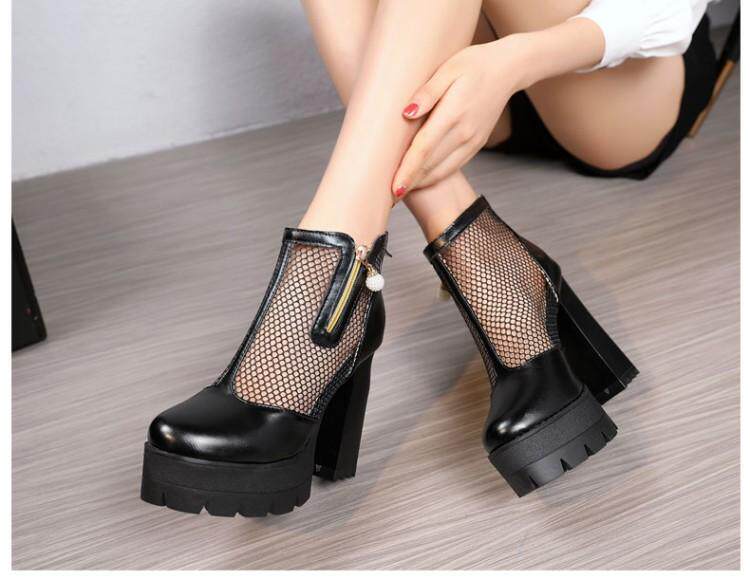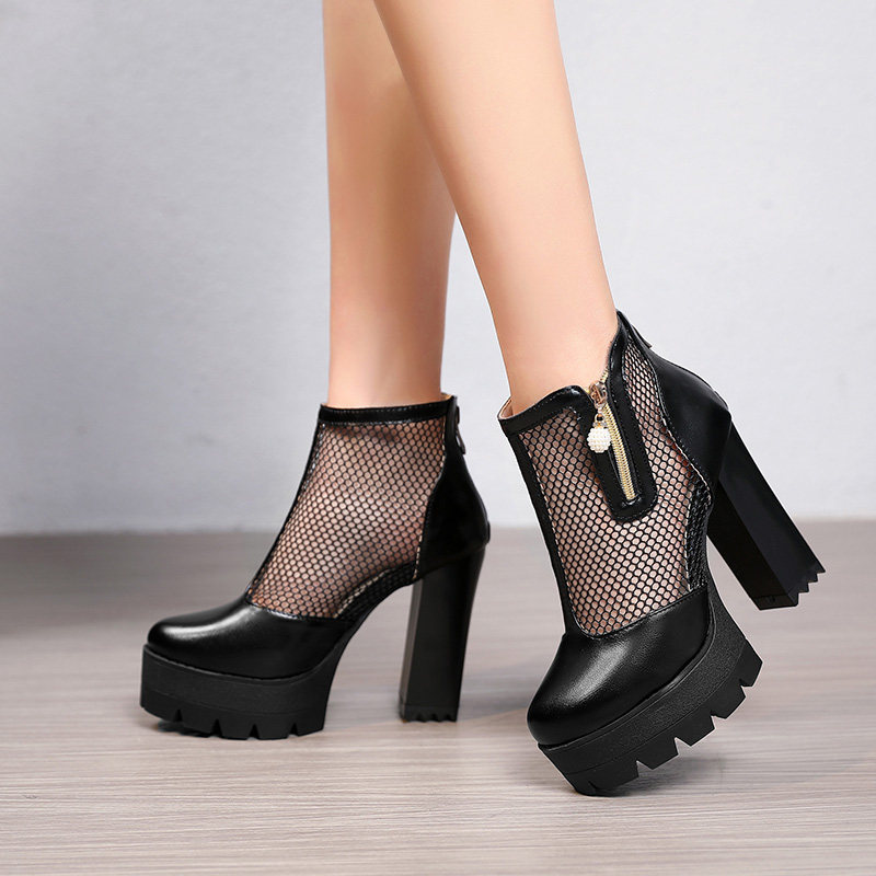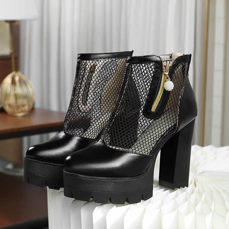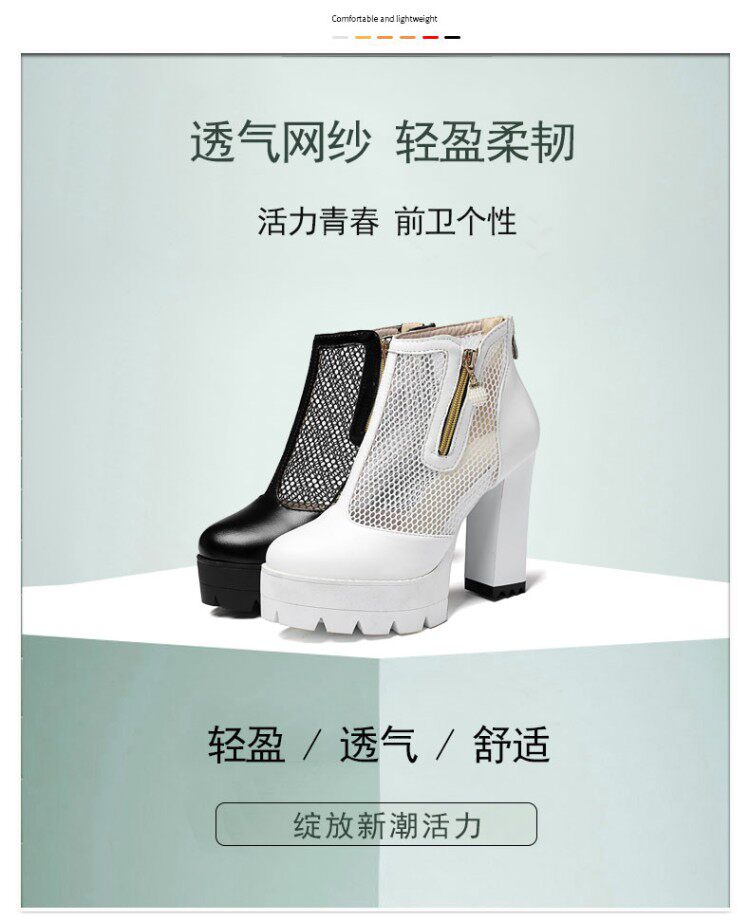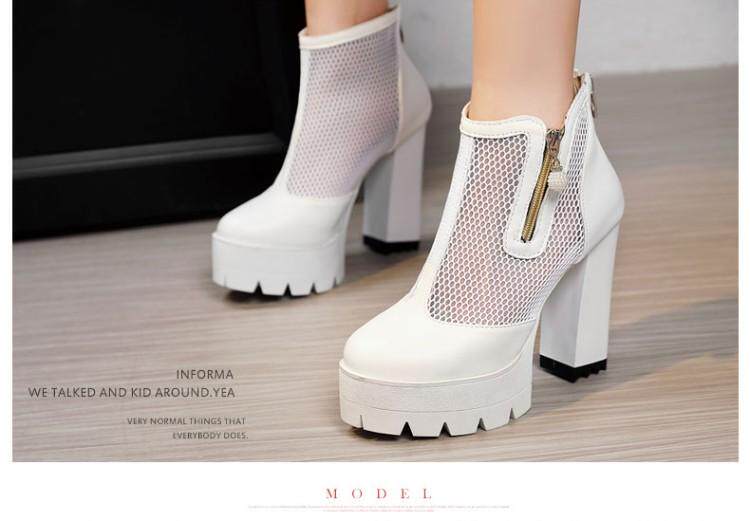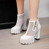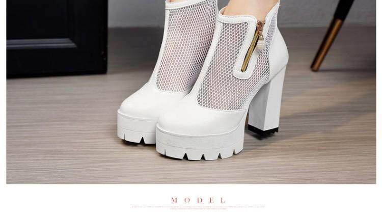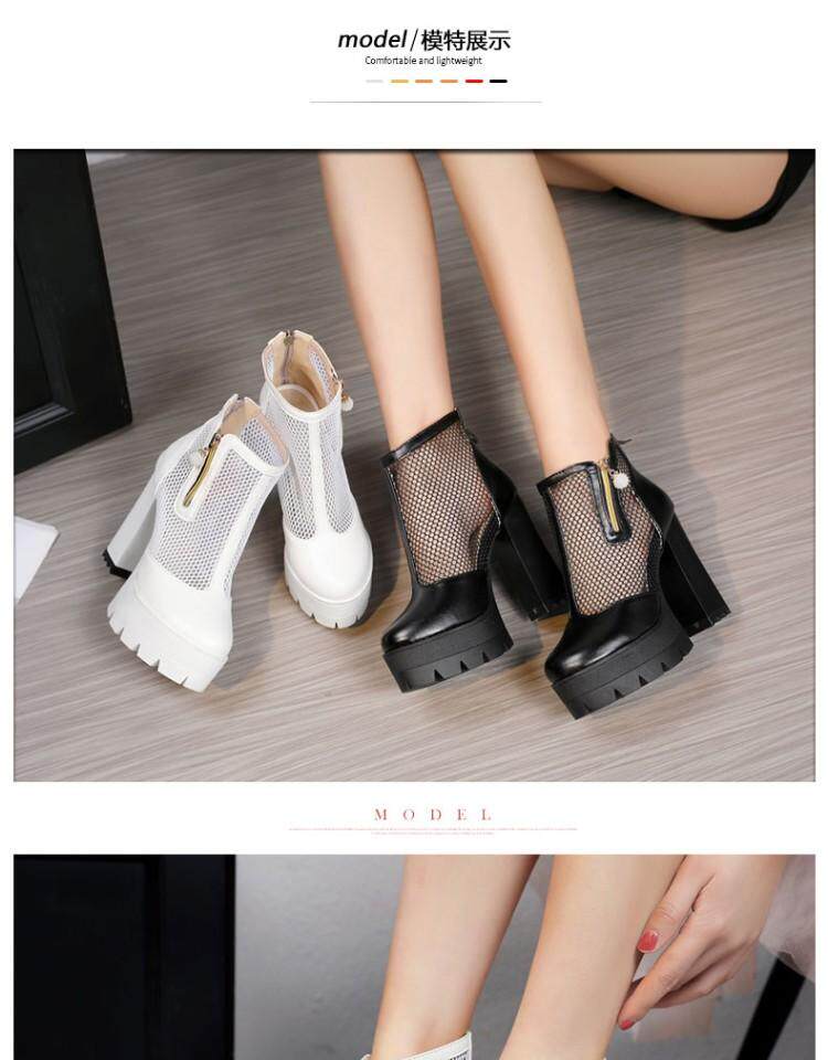 Белые римские сандалии на очень высоком каблуке 11 см, новинка 2021 года, весенние сапоги в сетку, непромокаемые короткие женские сапоги на толстом каблуке на платформе, большой размер