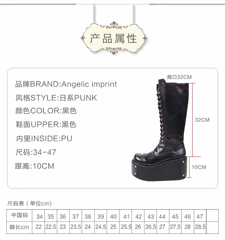 Высокие высокие сапоги на платформе, стиль Лолита, в стиле панк