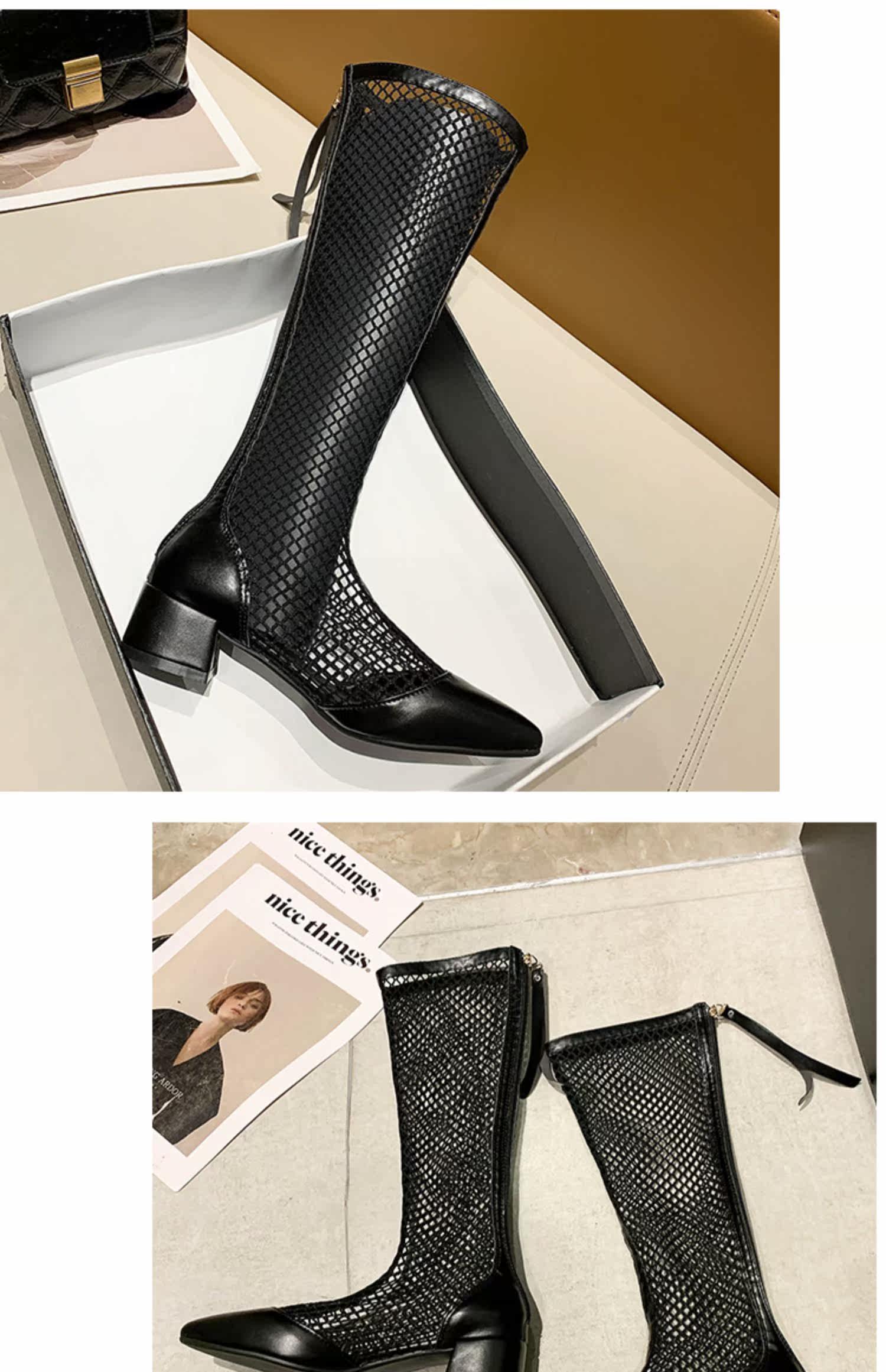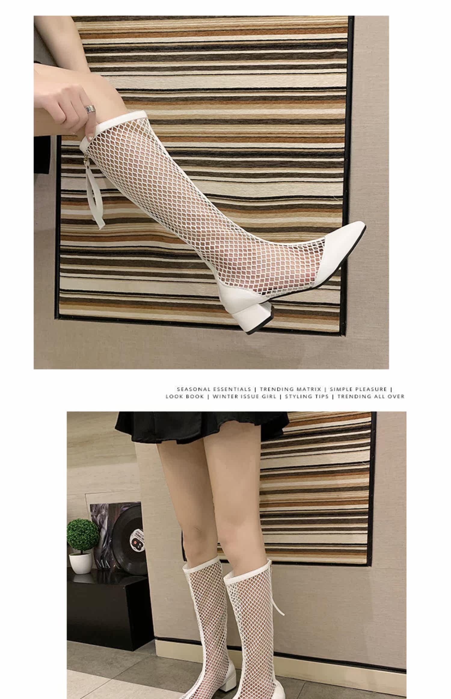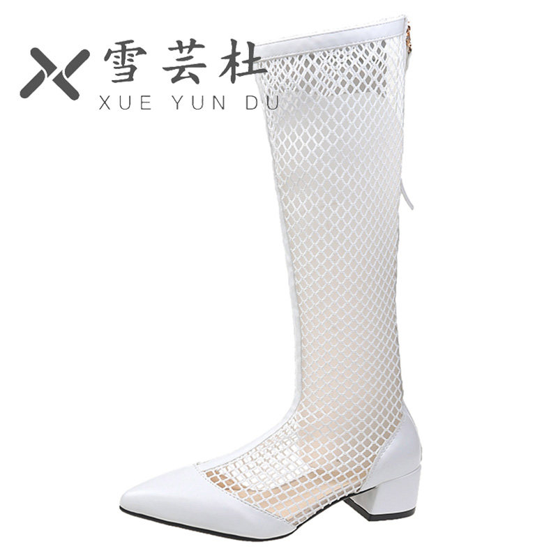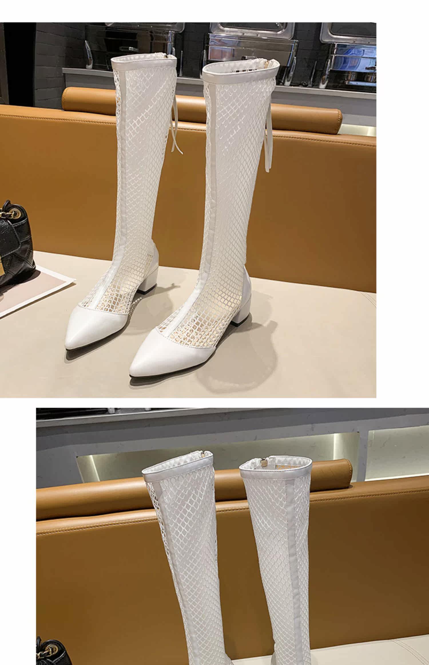 Летние дышащие высокие сапоги, белые ботинки с молнией с заостренным носом, коллекция 2021