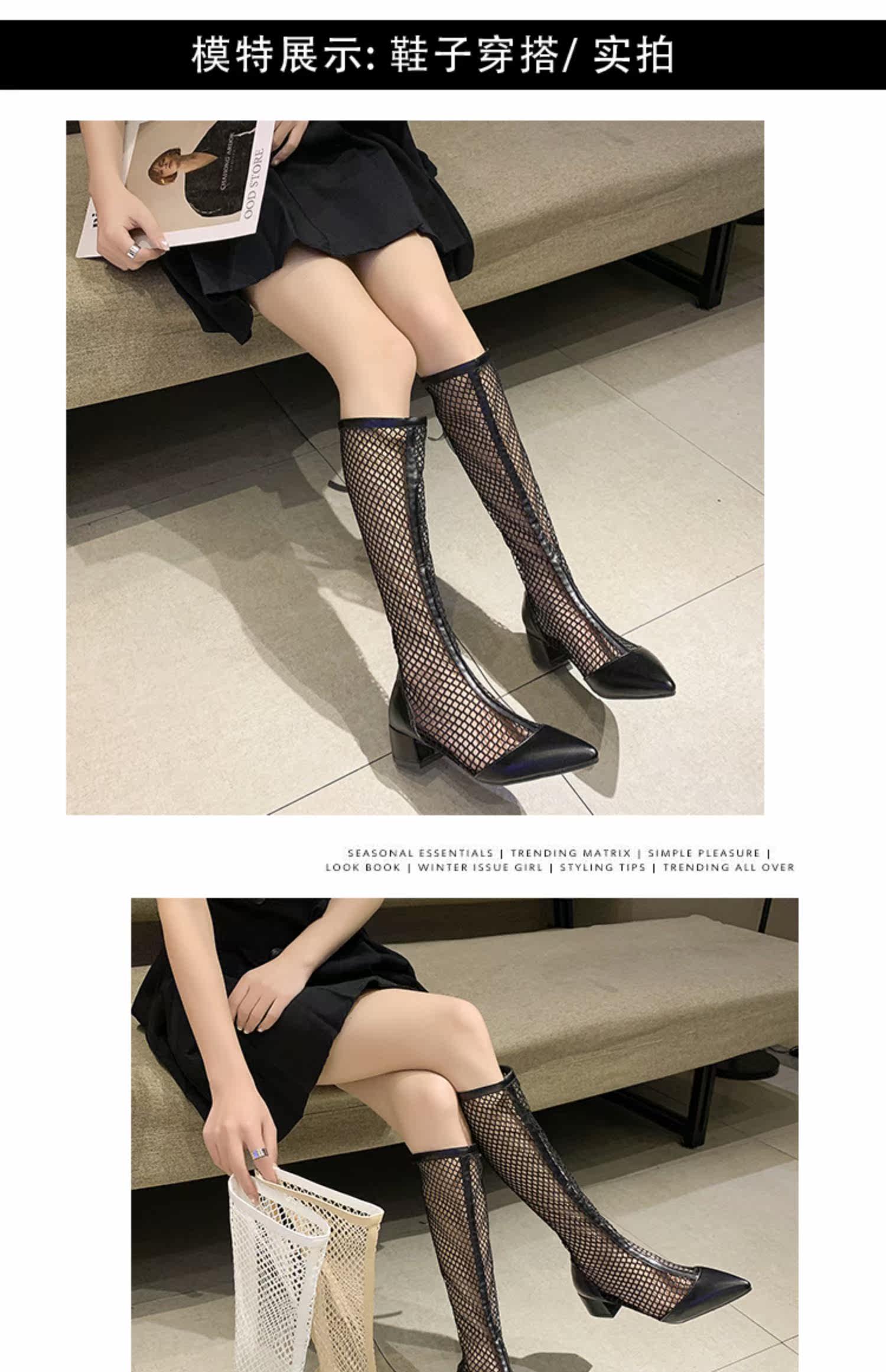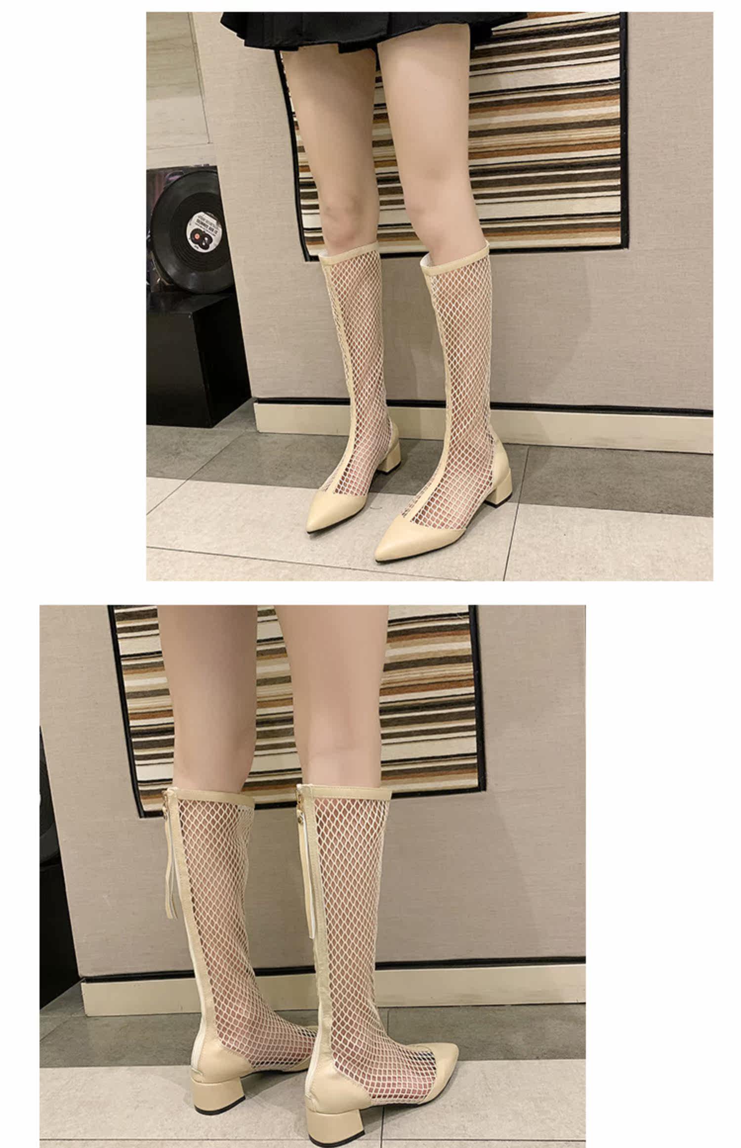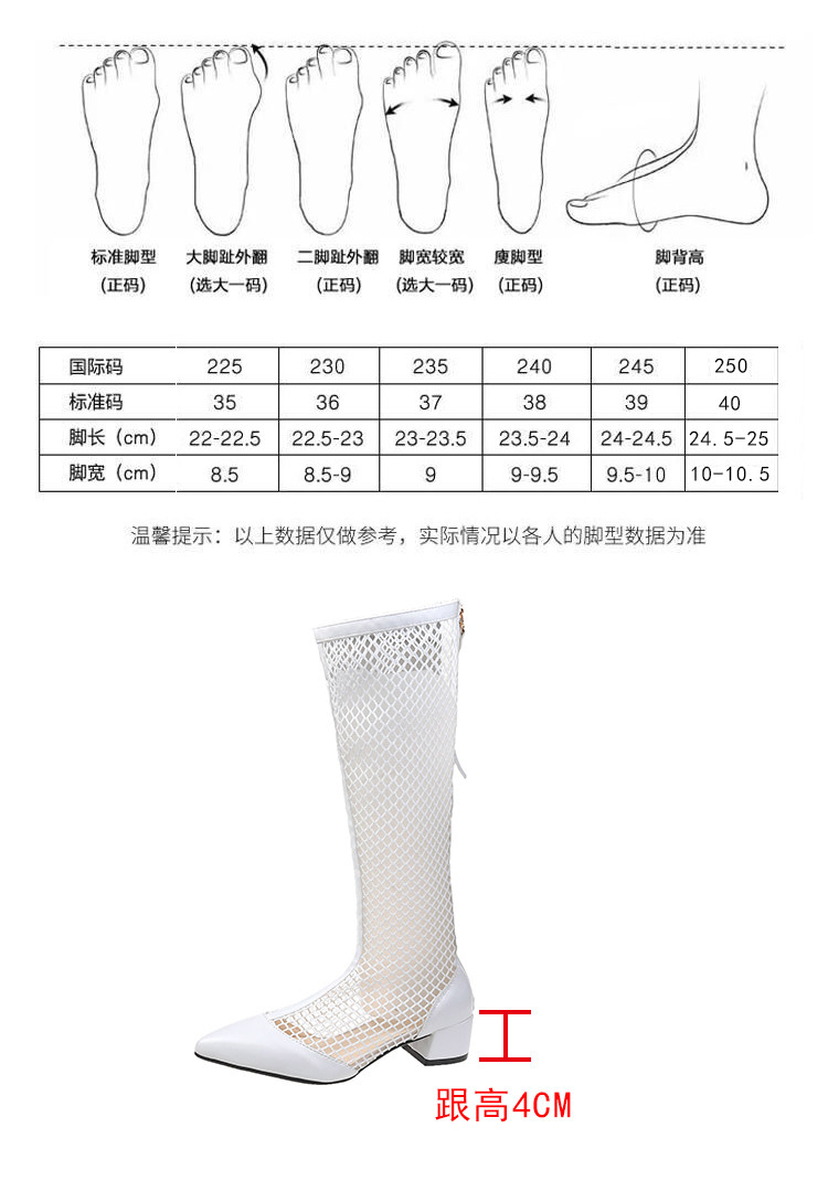 Летние дышащие высокие сапоги, белые ботинки с молнией с заостренным носом, коллекция 2021