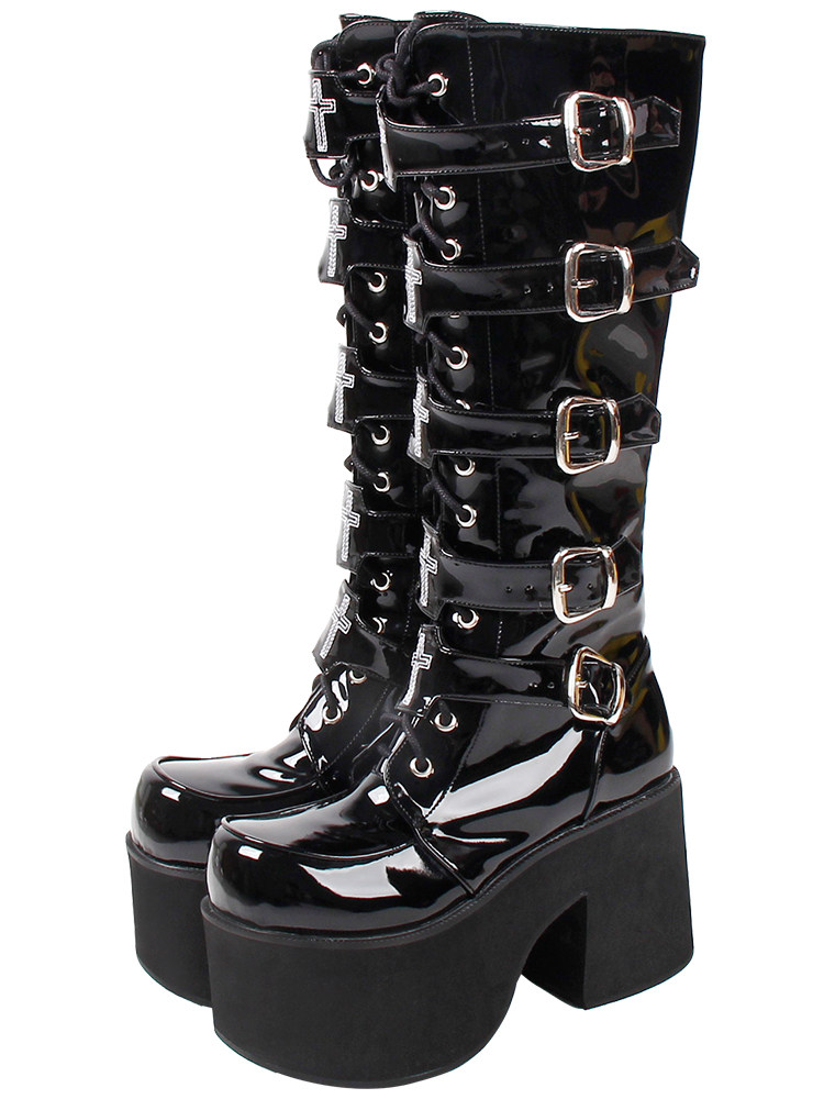 Классические сапоги на платформе, цепочка с молнией, коллекция 2021, стиль Лолита