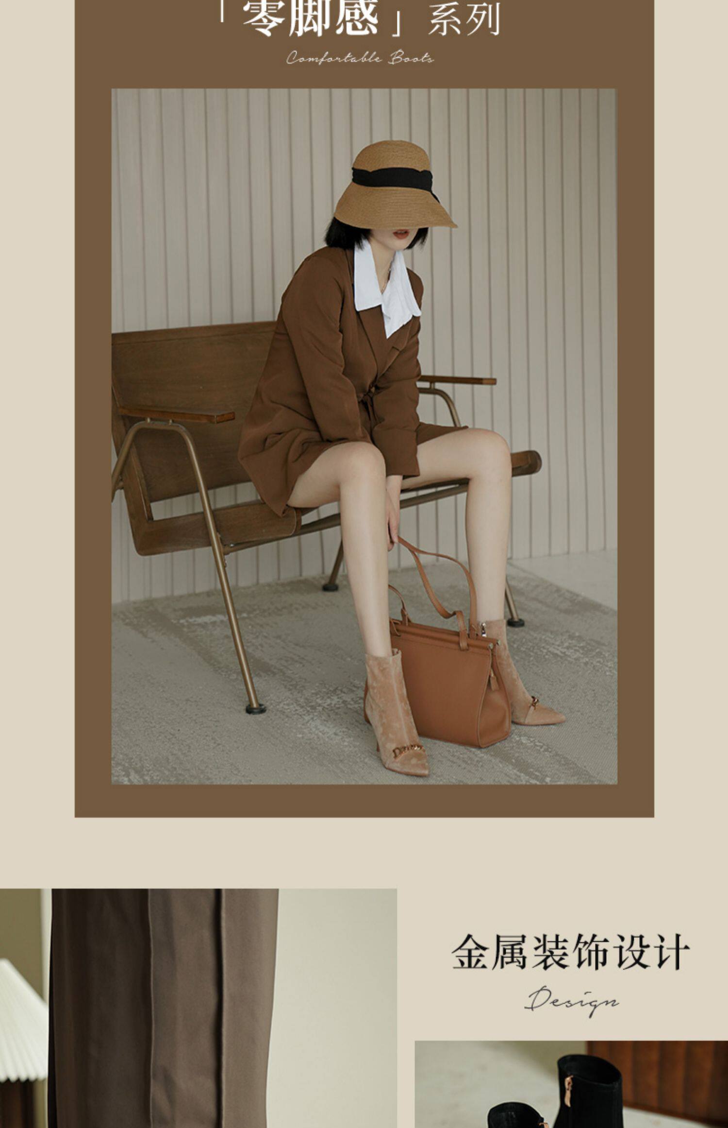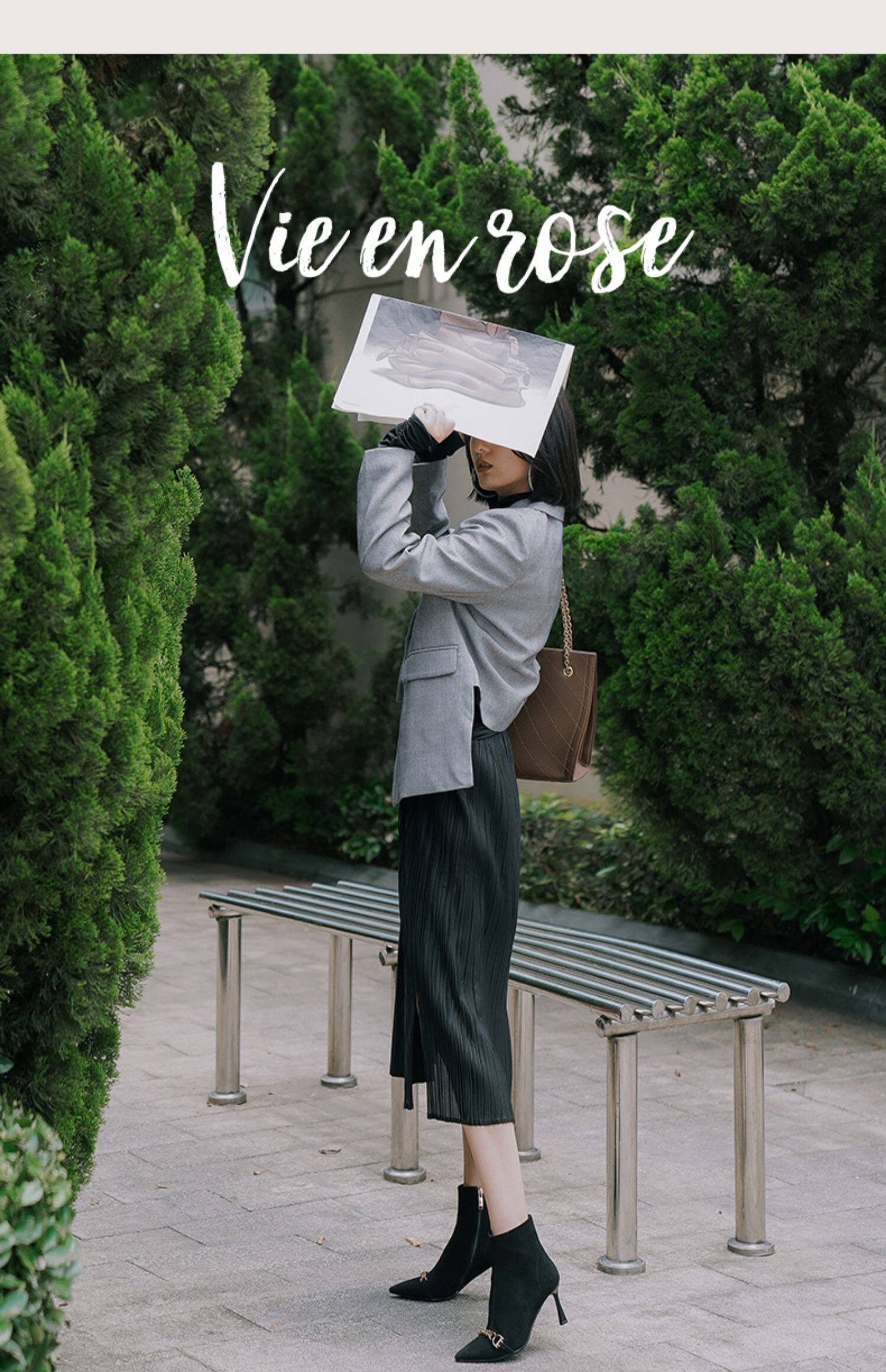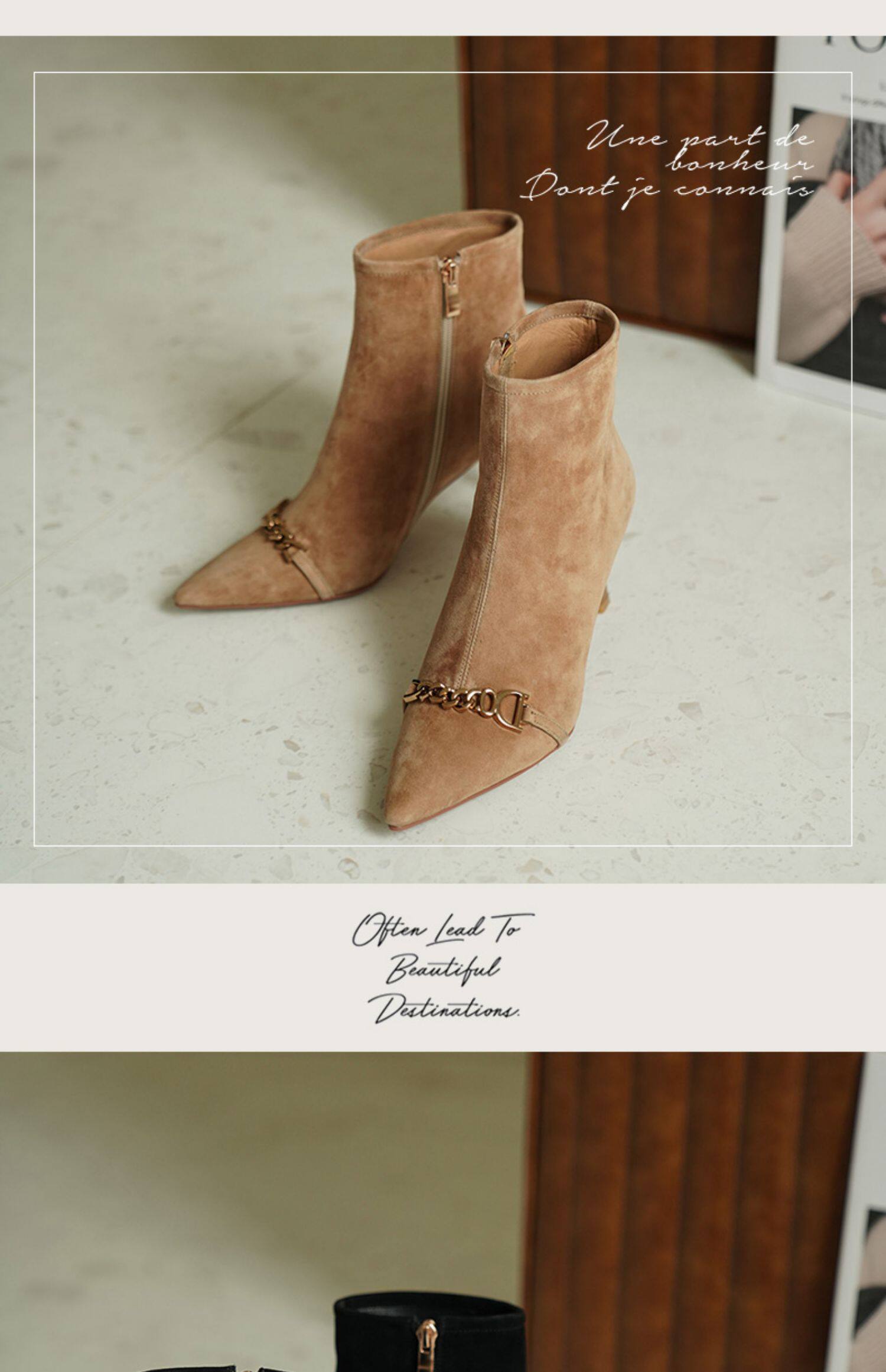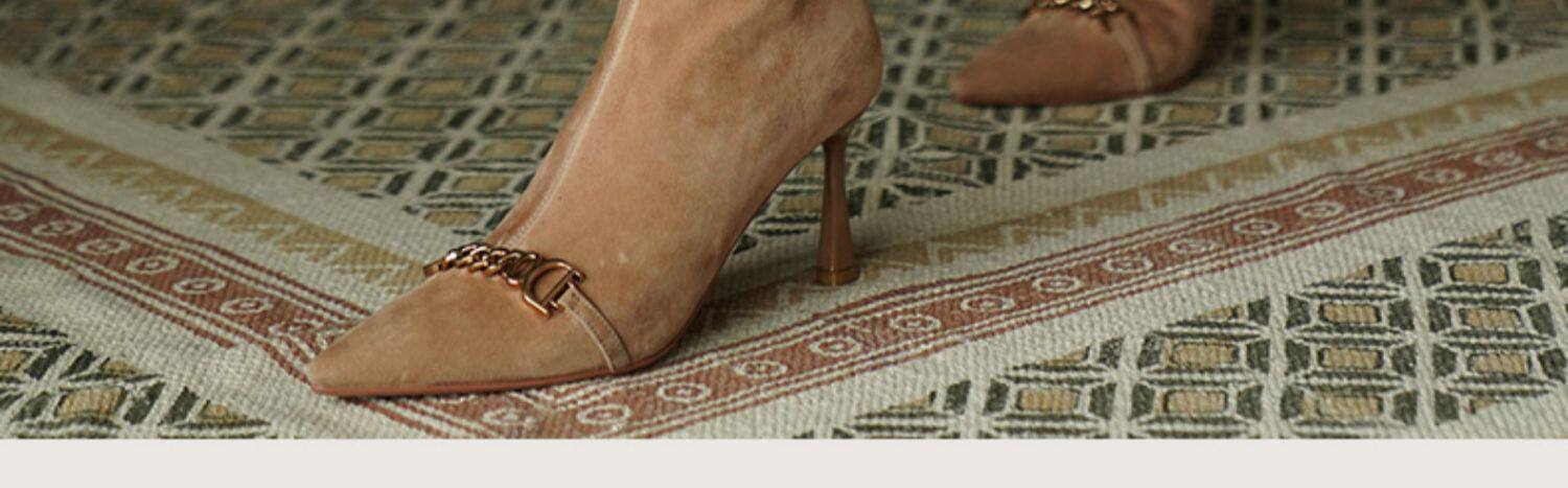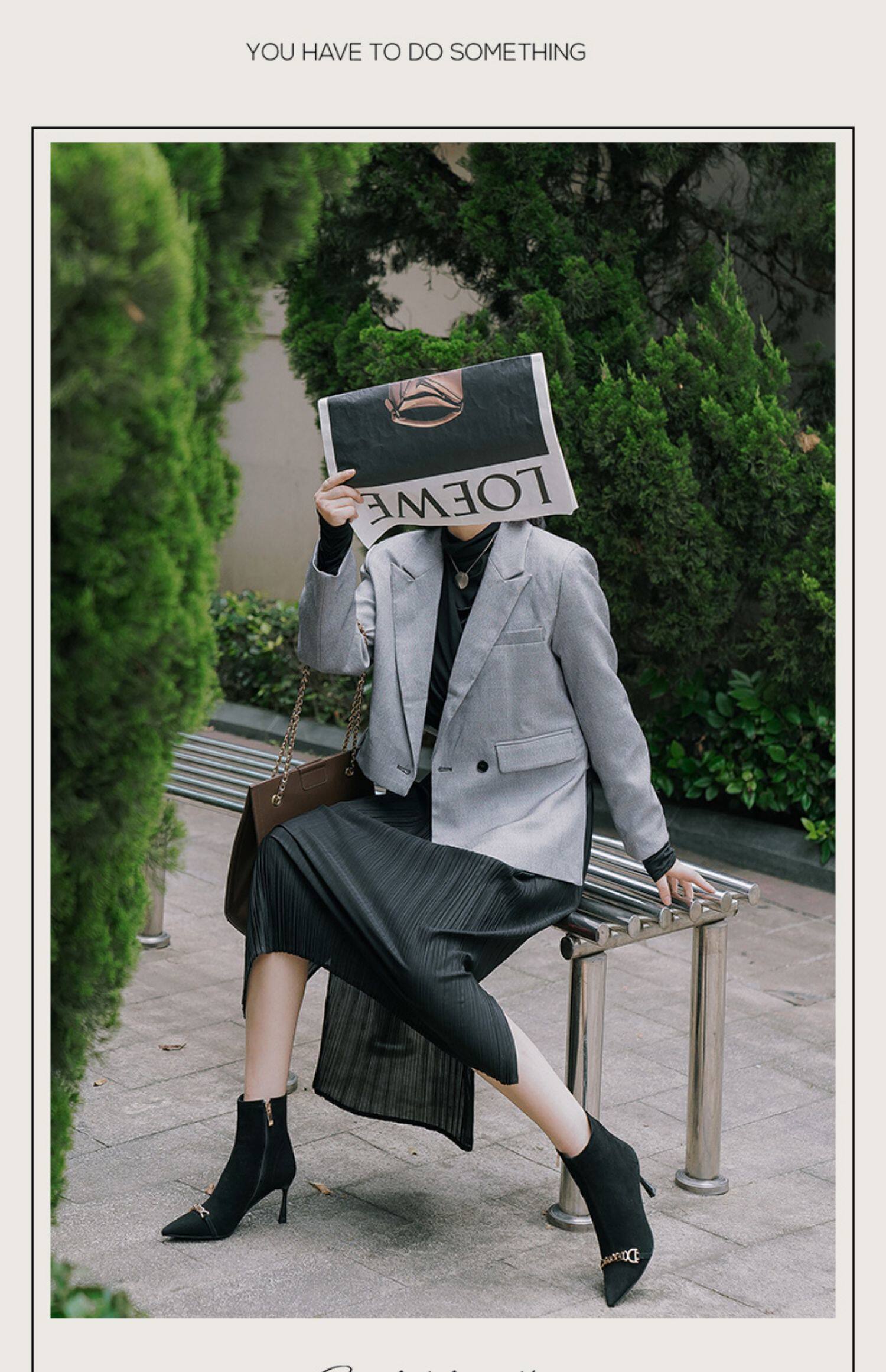 Короткие сапоги с заостренным носом на высоком каблуке, металлическая матовая цепь, нюдовые ботильоны, осенние, французский стиль