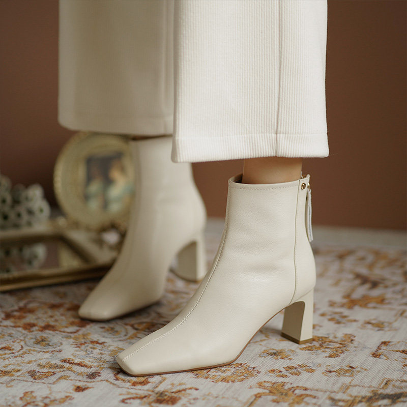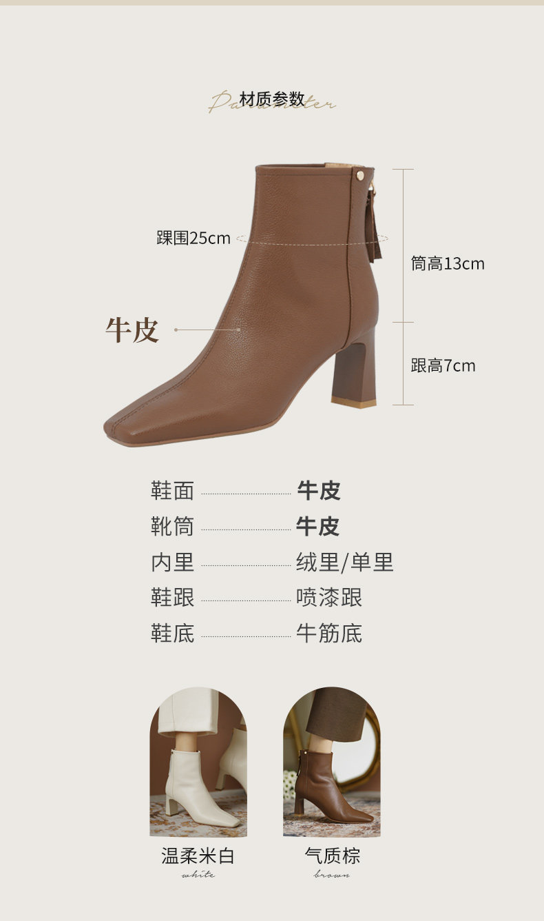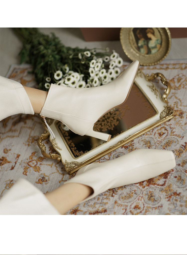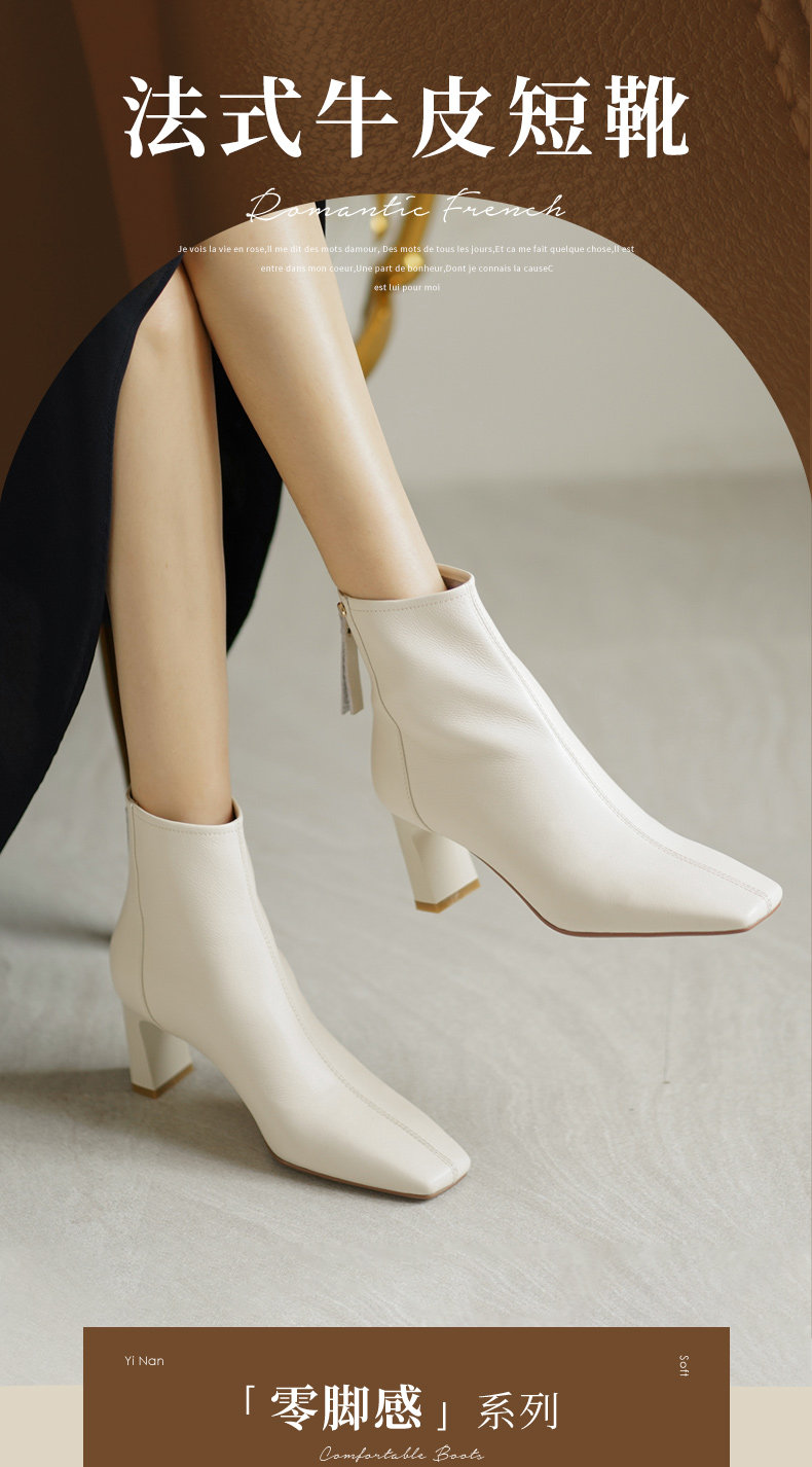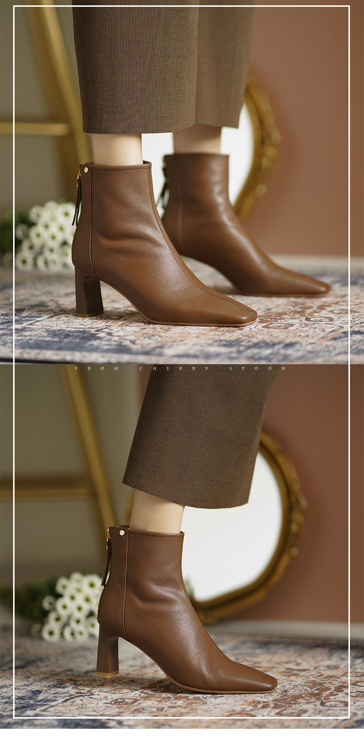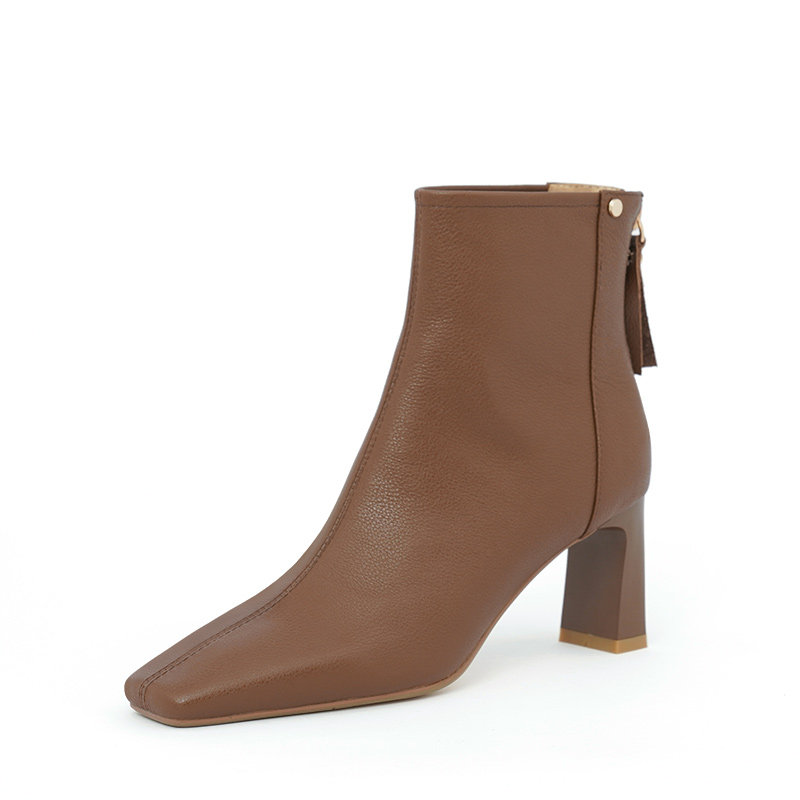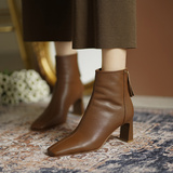 Коричневые весенние короткие сапоги на высоком каблуке, демисезонные ботинки, французский стиль