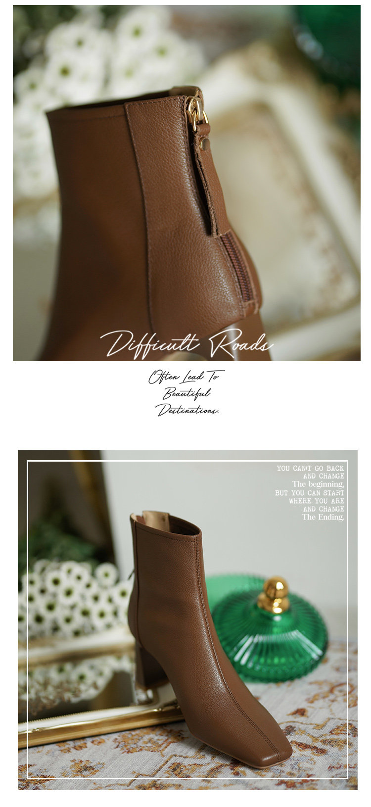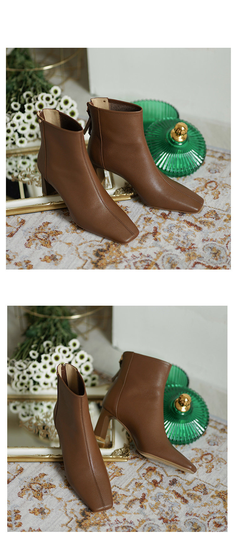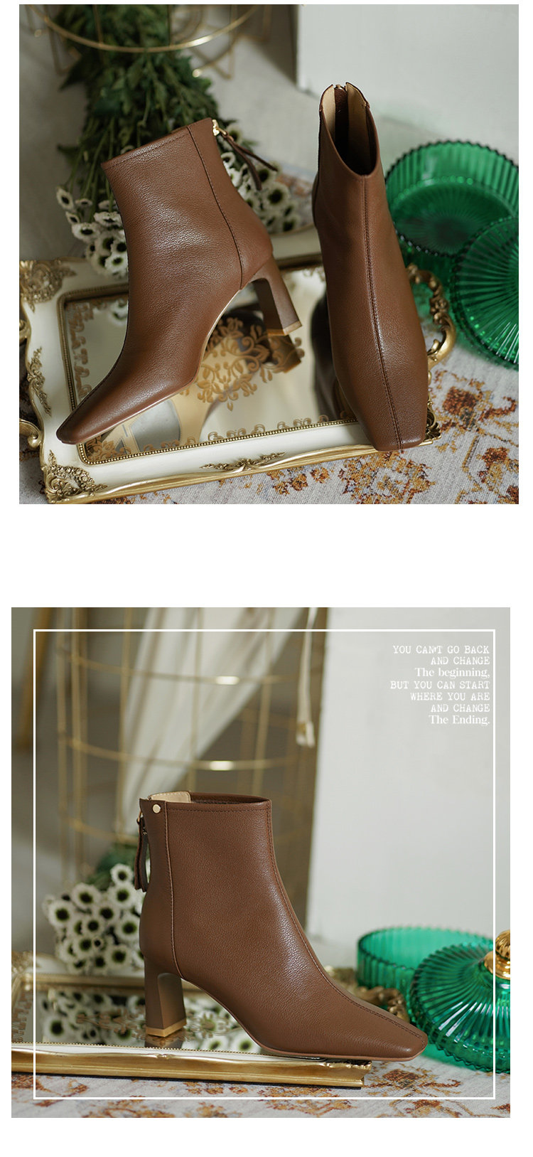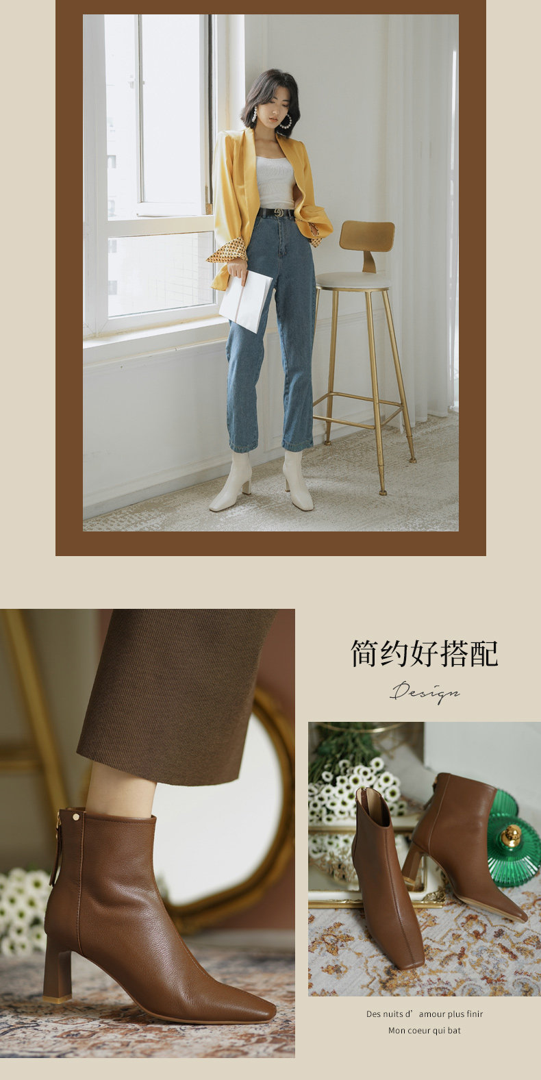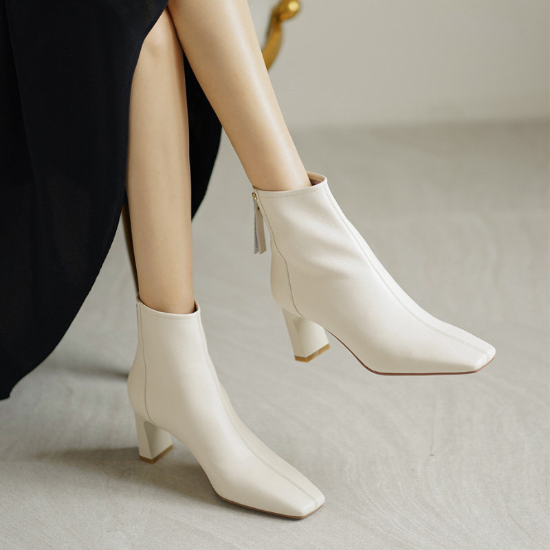 Коричневые весенние короткие сапоги на высоком каблуке, демисезонные ботинки, французский стиль
