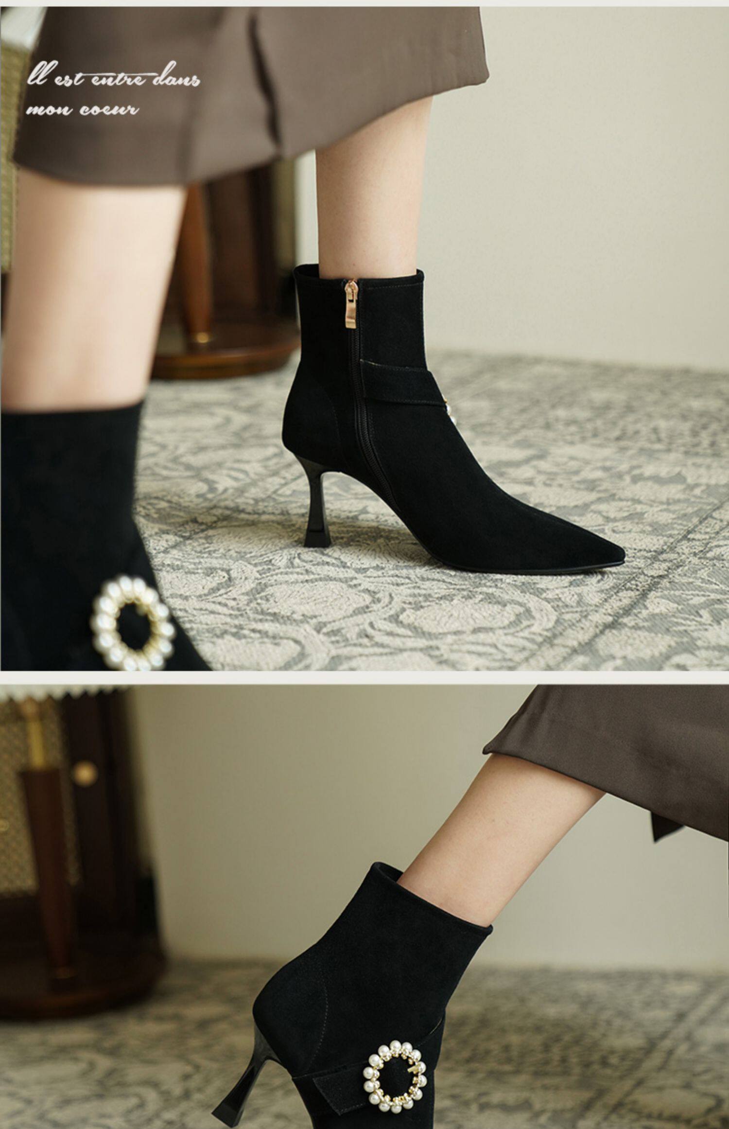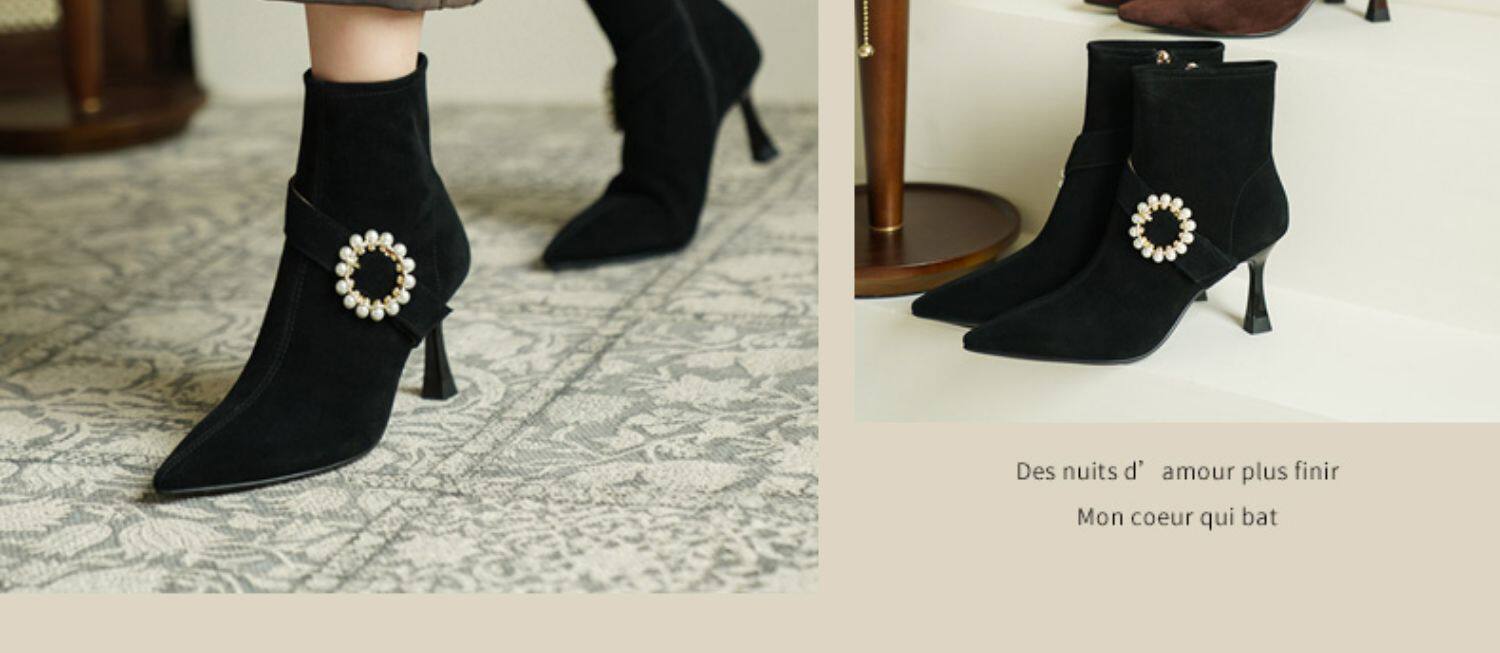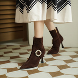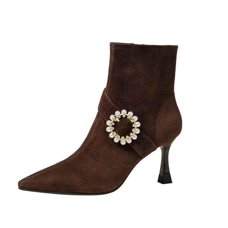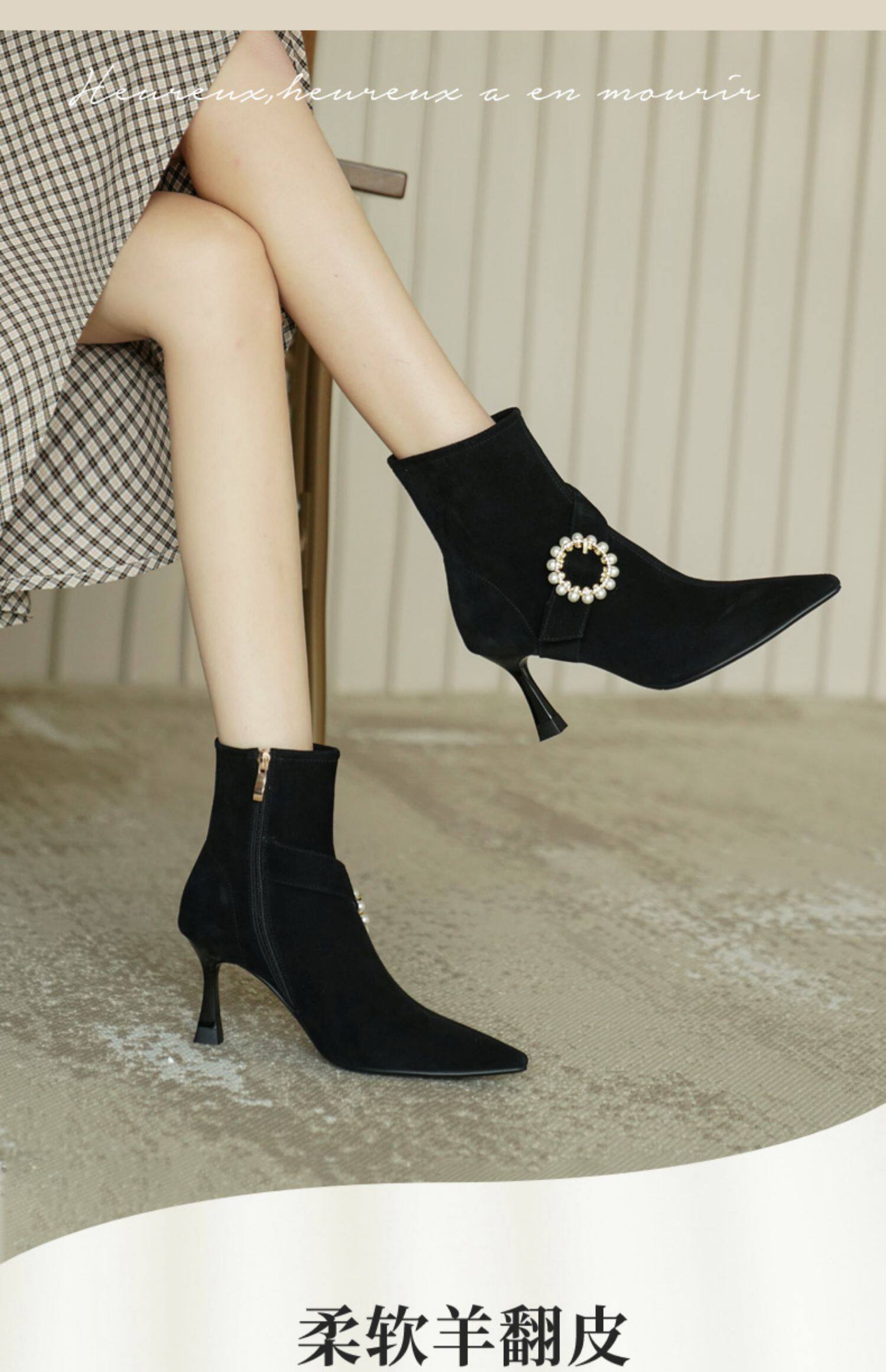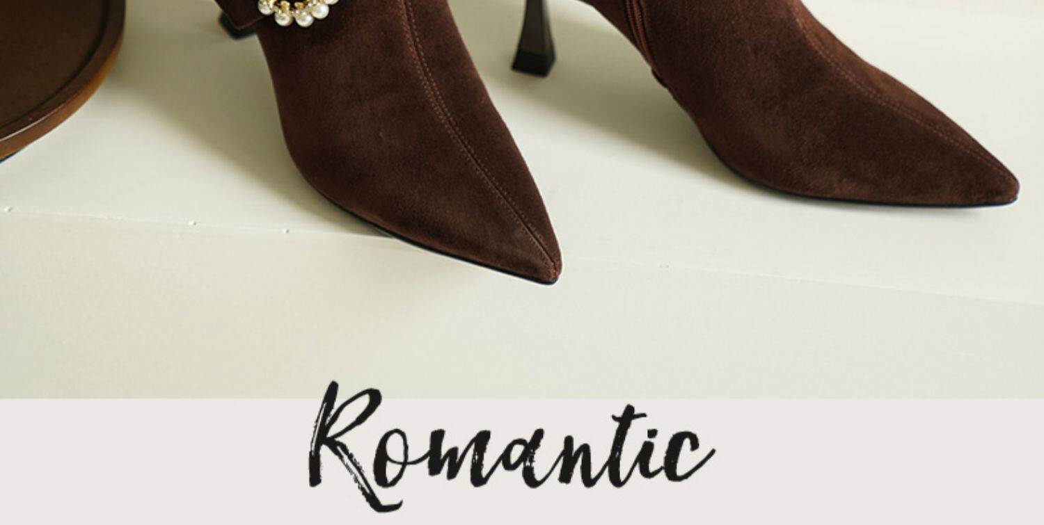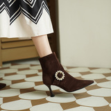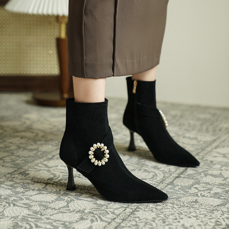 Демисезонные короткие сапоги с заостренным носом, сексуальная матовая обувь на высоком каблуке, 2023 года, французский стиль