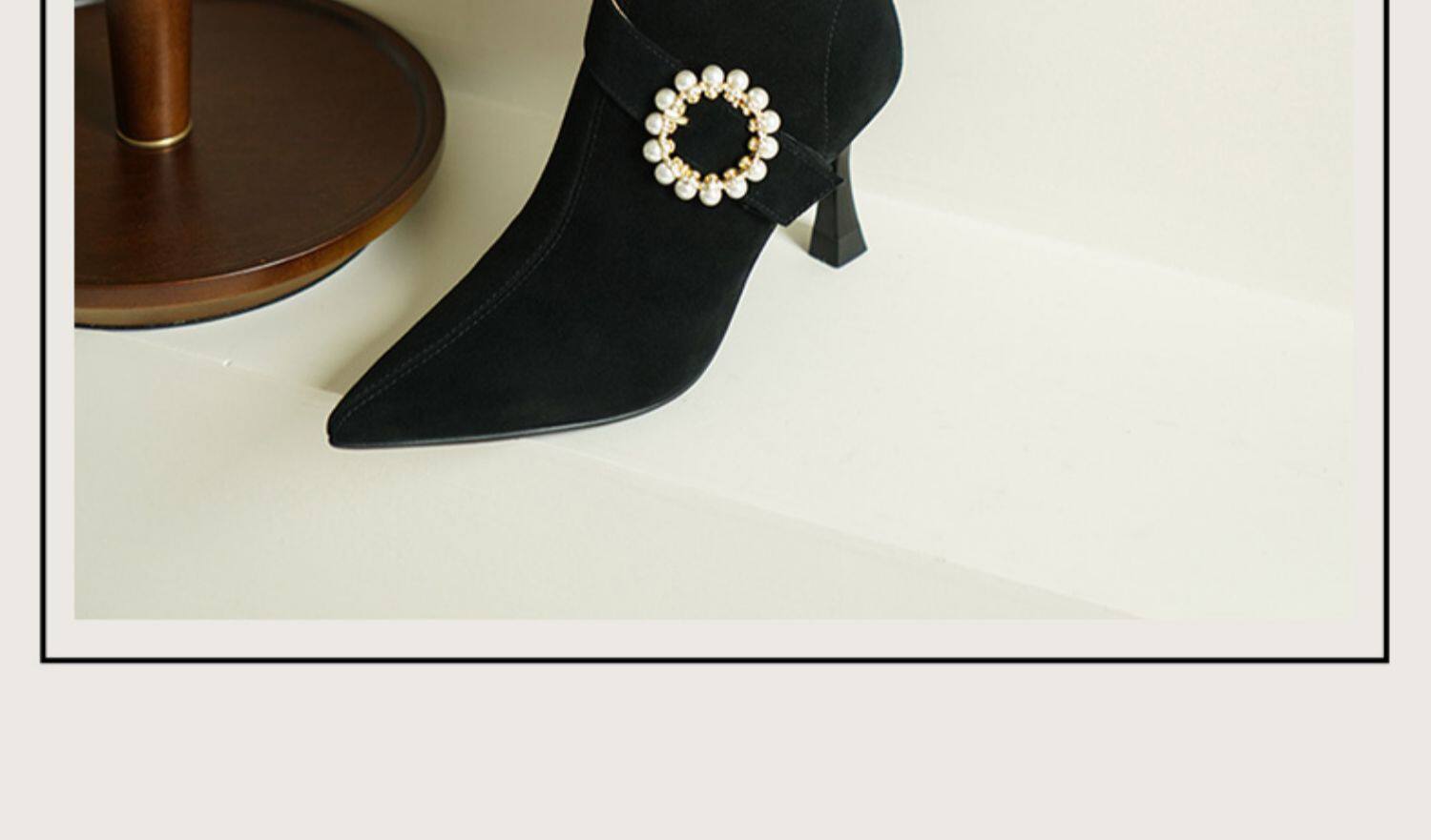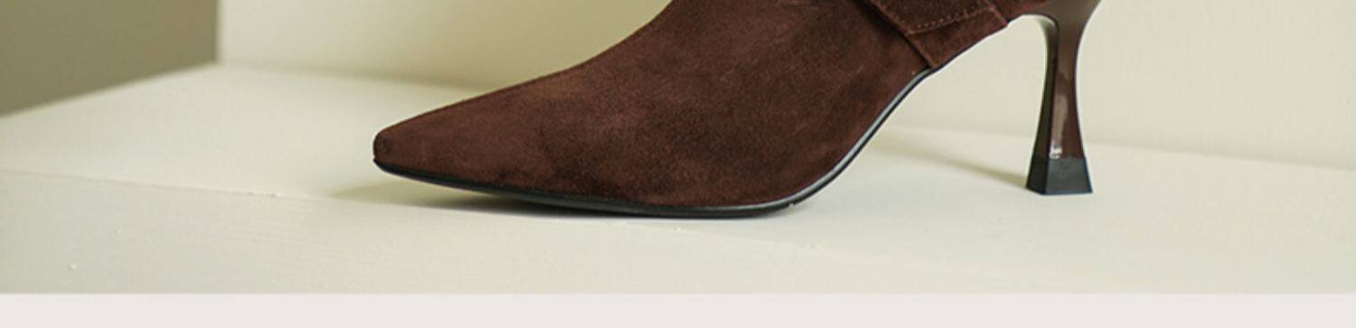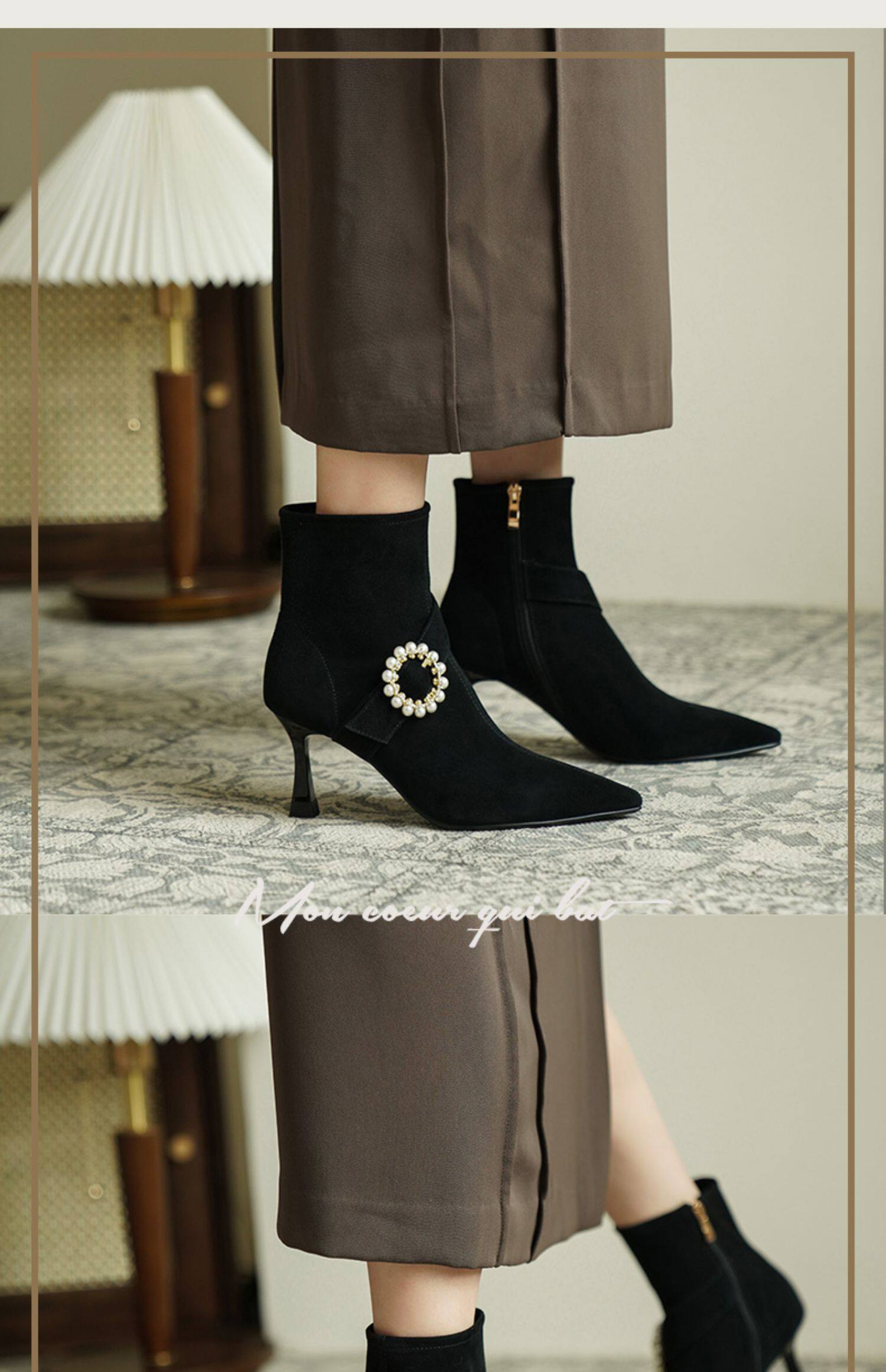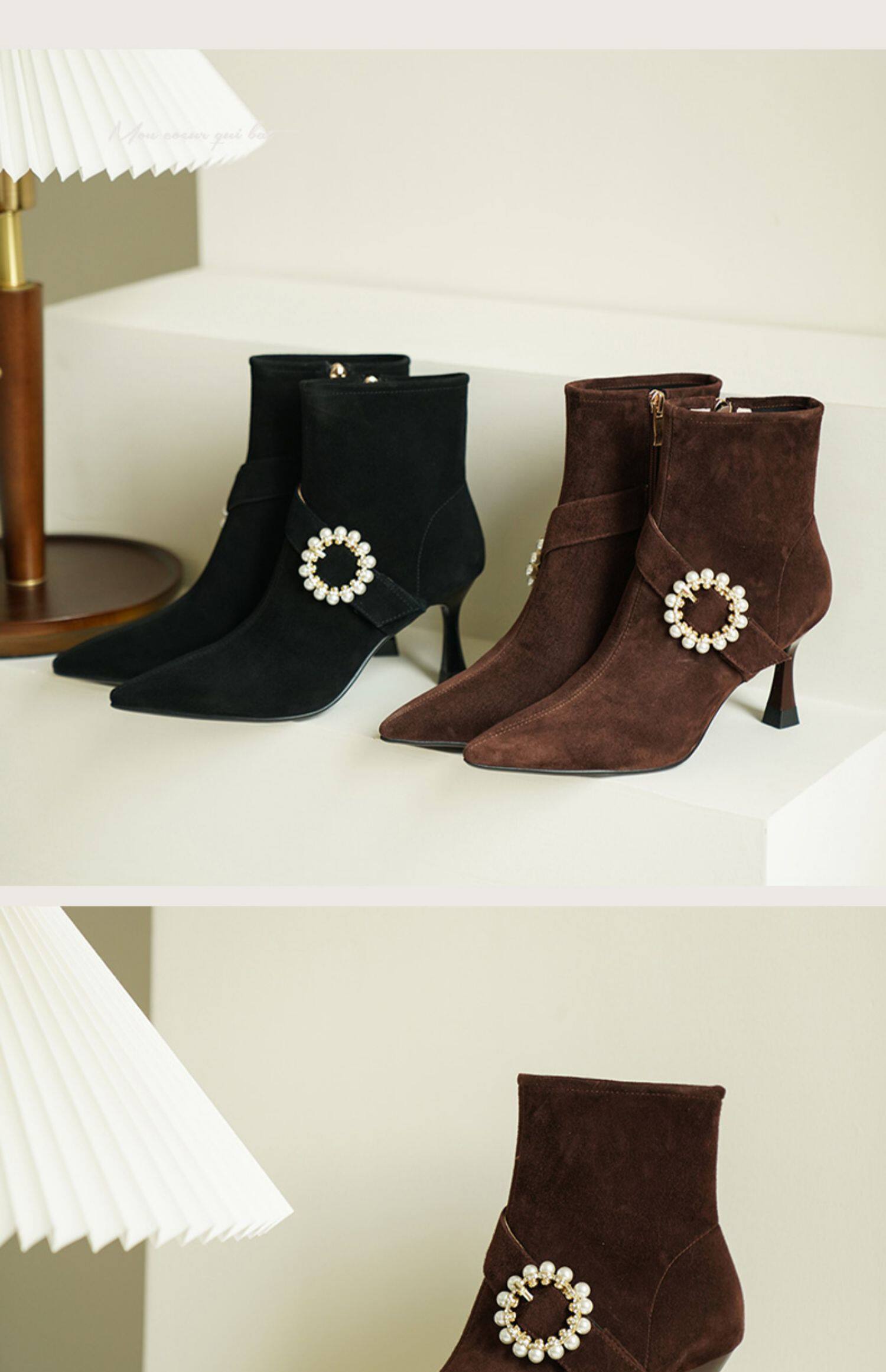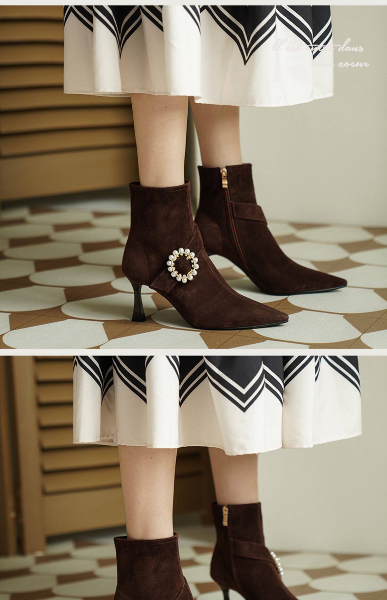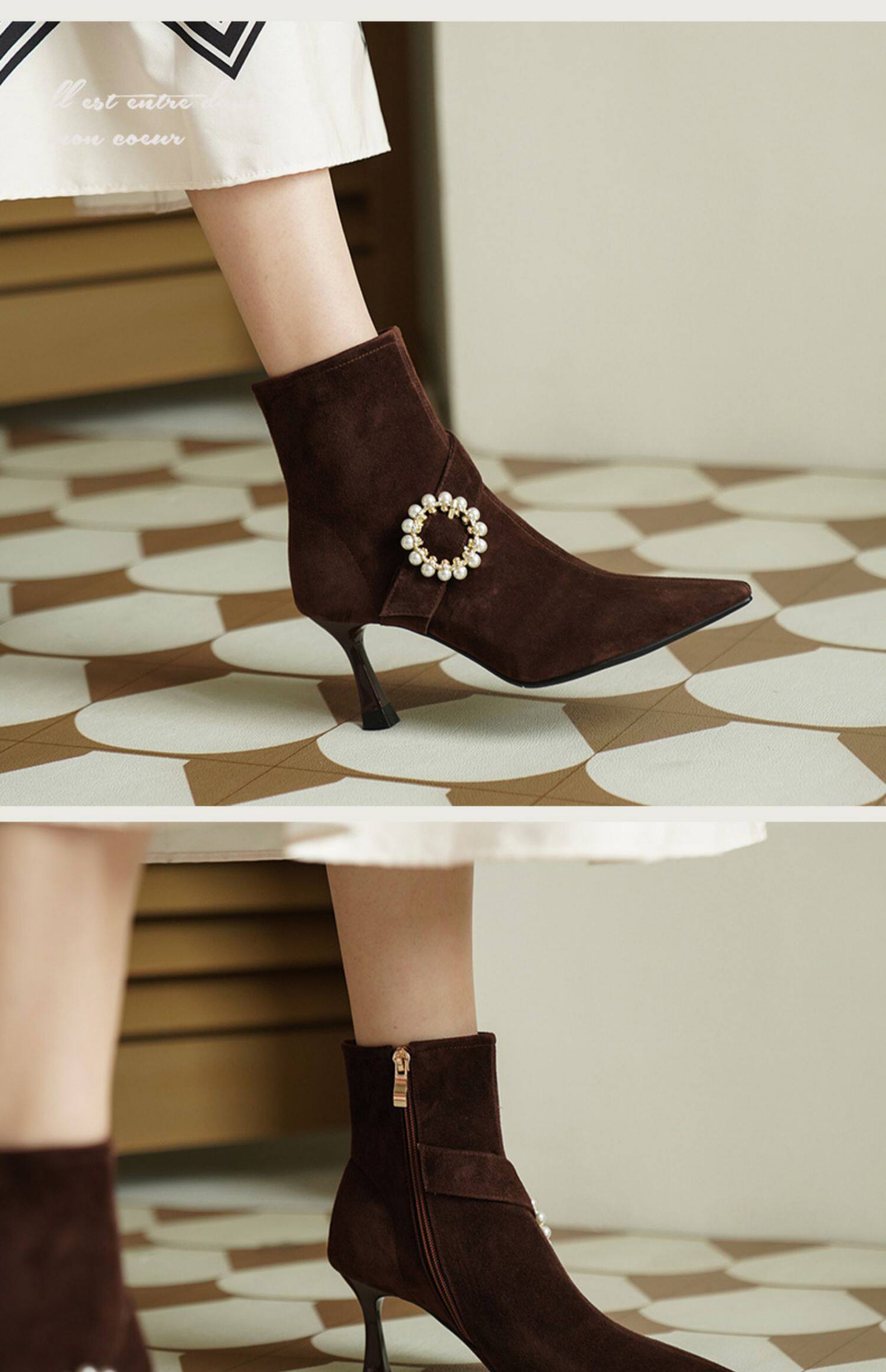 Демисезонные короткие сапоги с заостренным носом, сексуальная матовая обувь на высоком каблуке, 2023 года, французский стиль