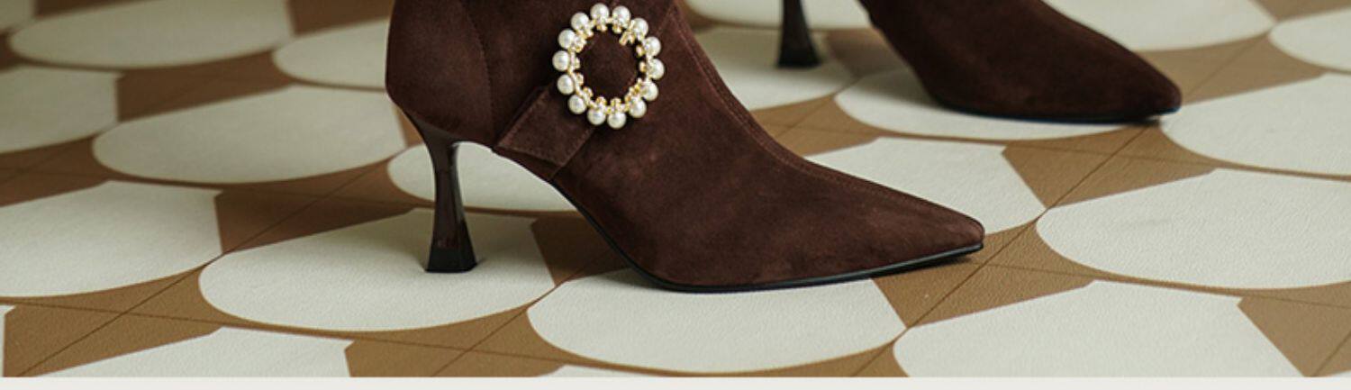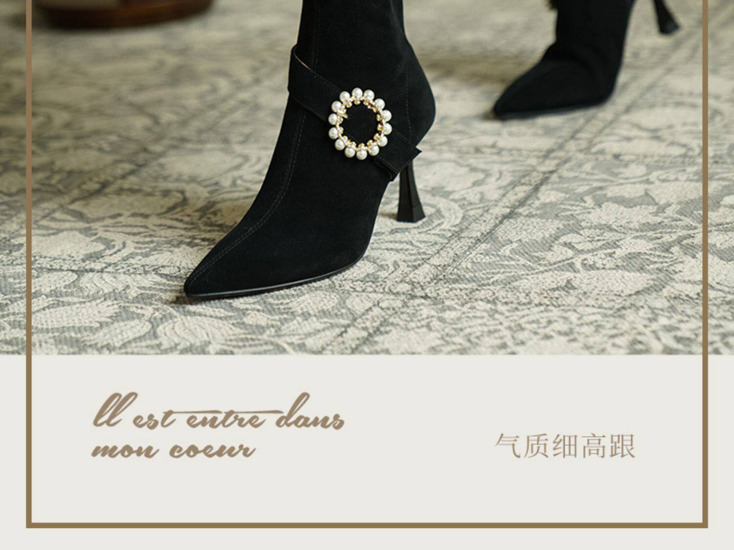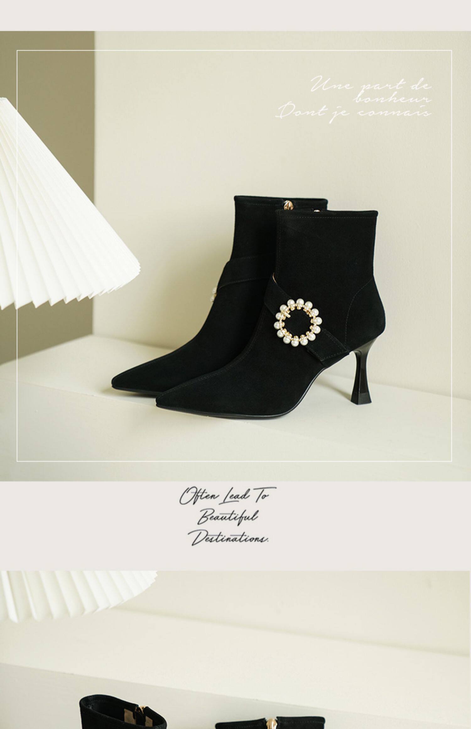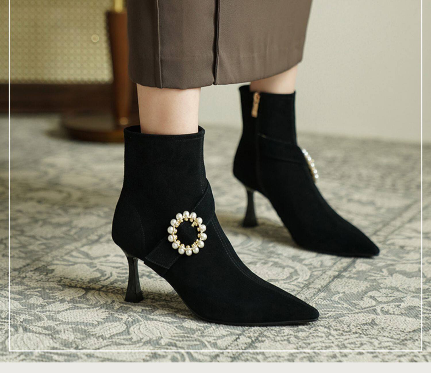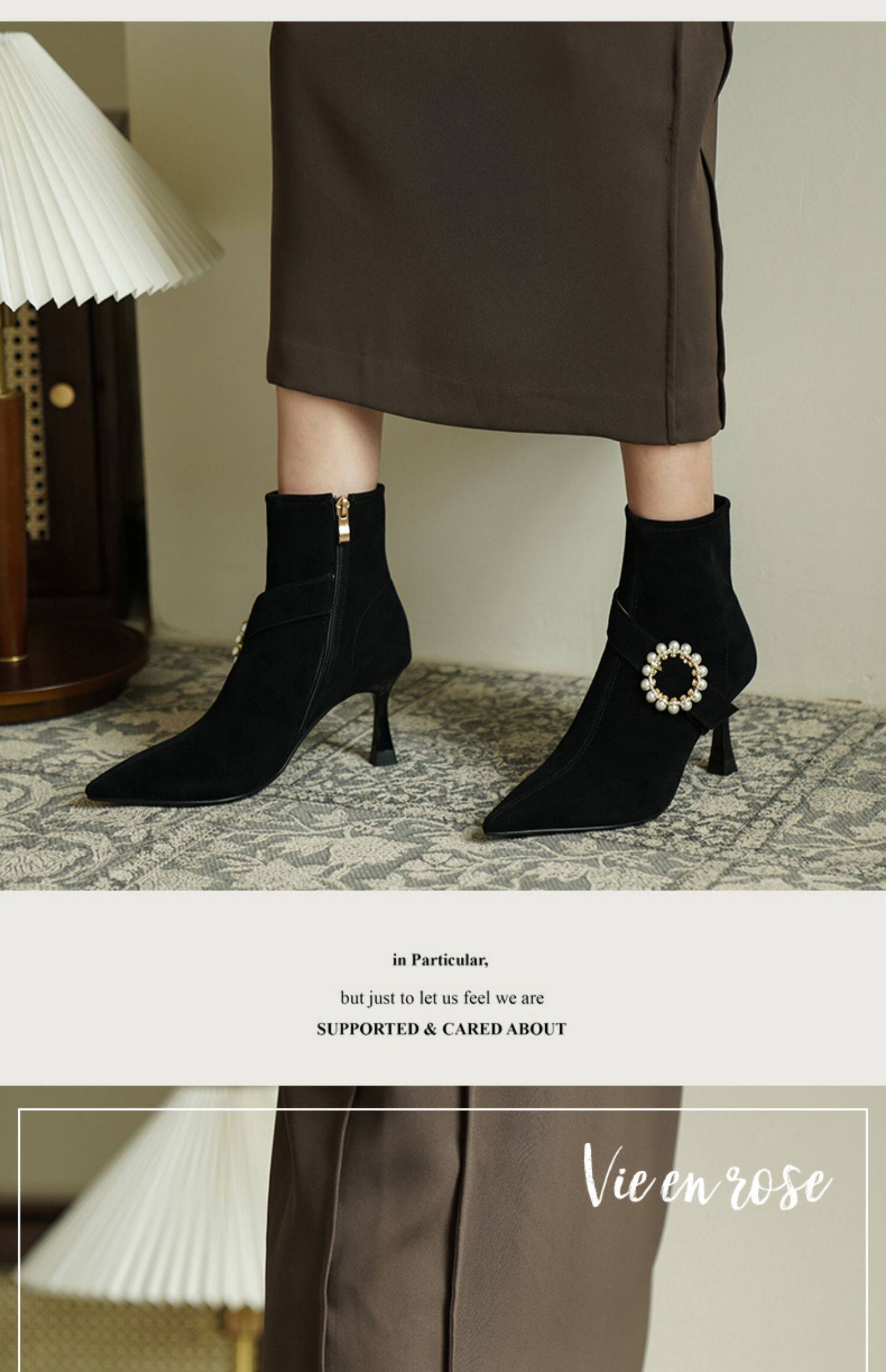 Демисезонные короткие сапоги с заостренным носом, сексуальная матовая обувь на высоком каблуке, 2023 года, французский стиль