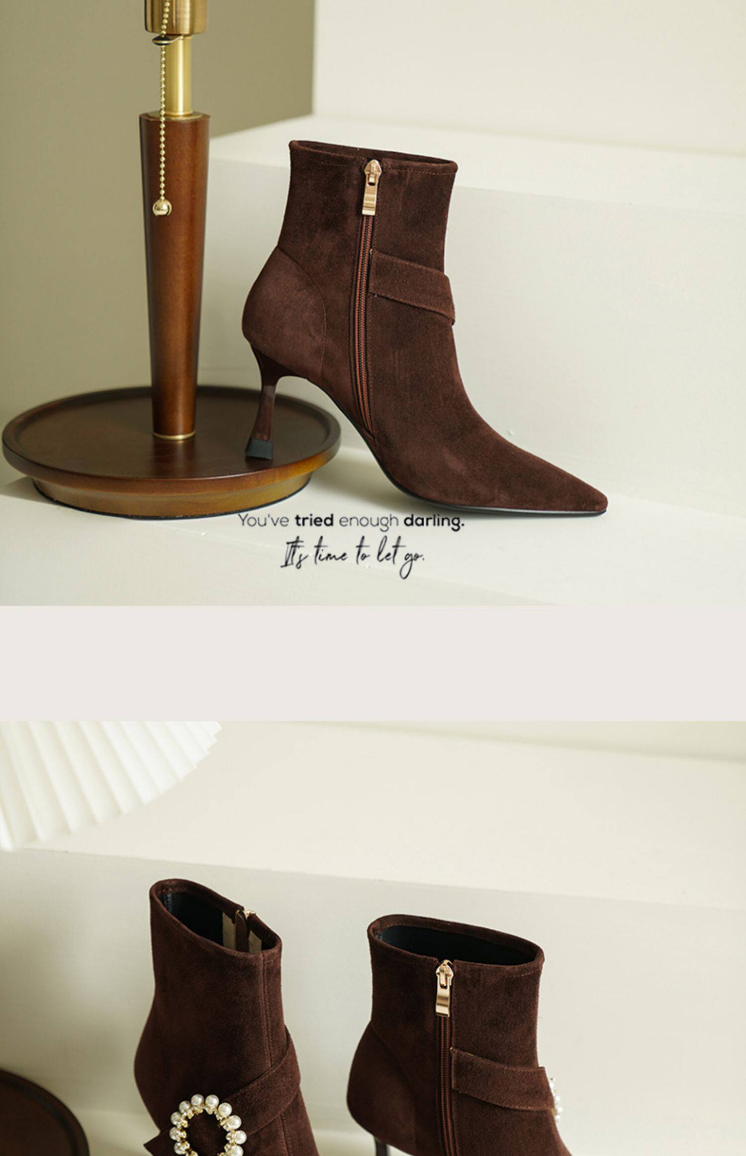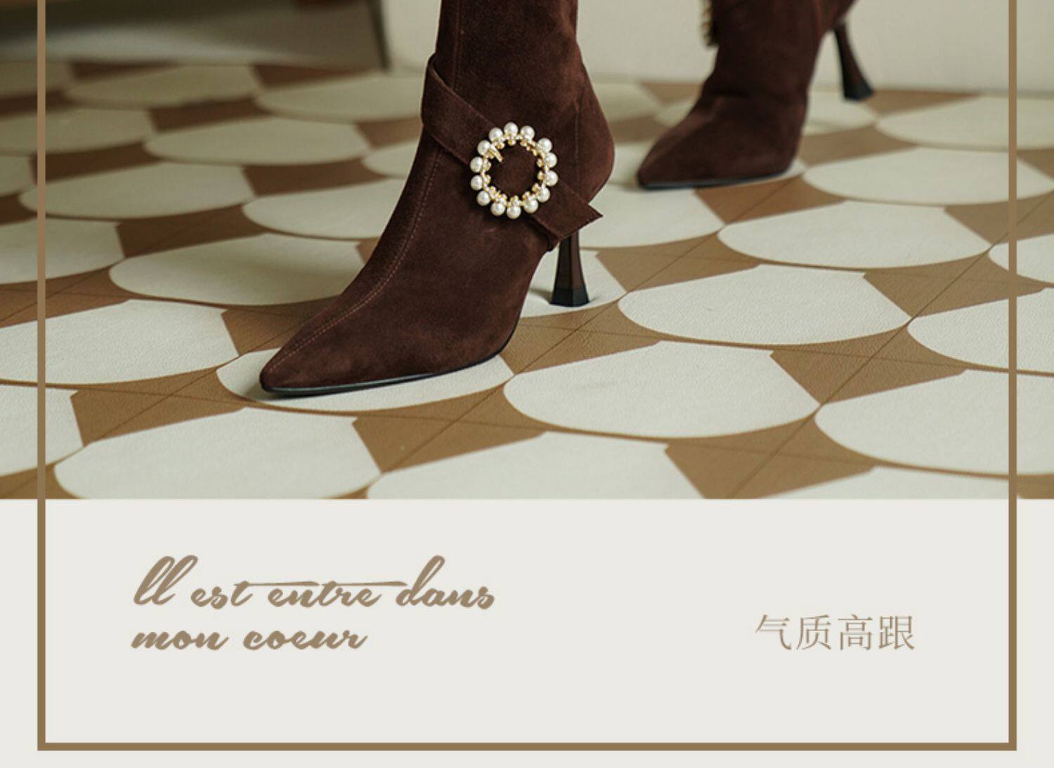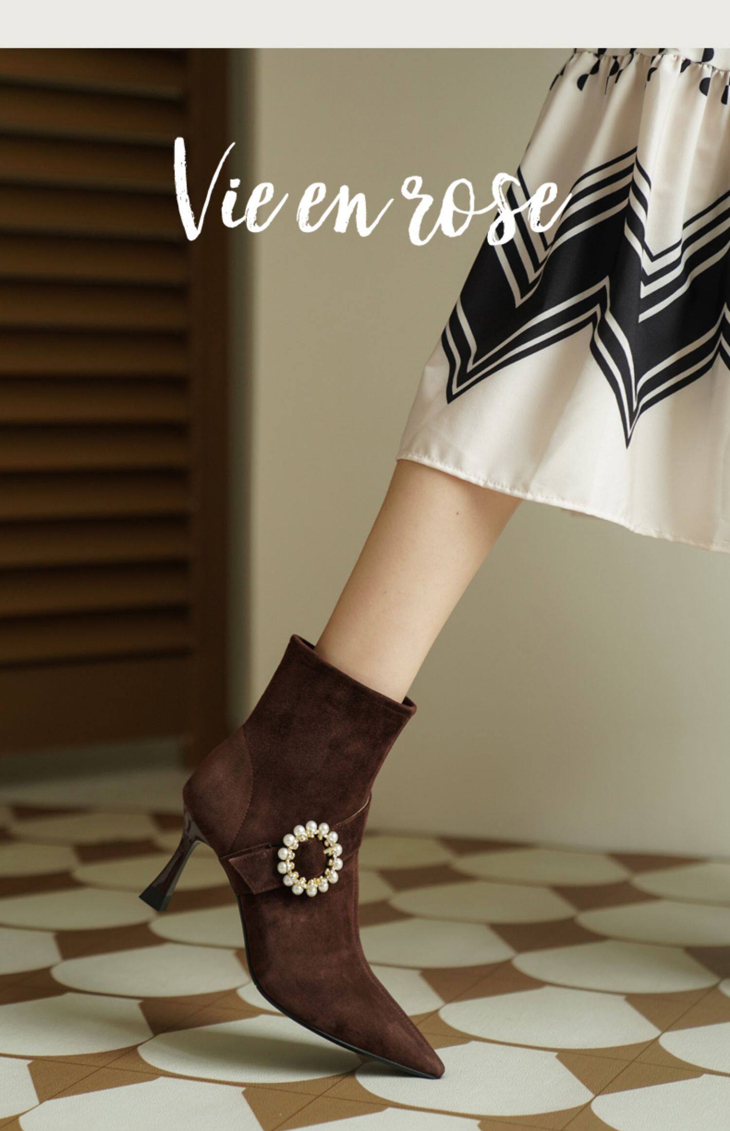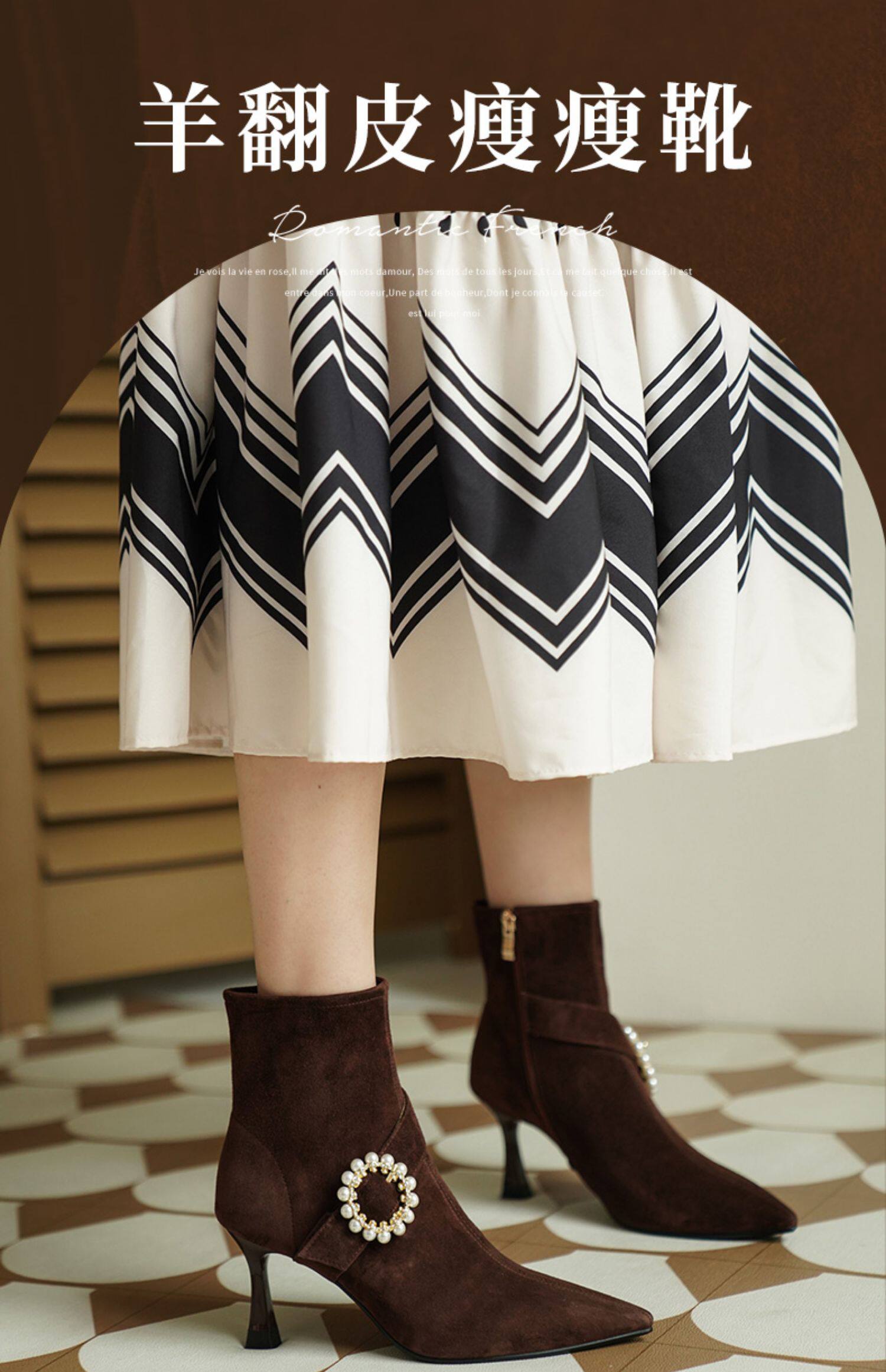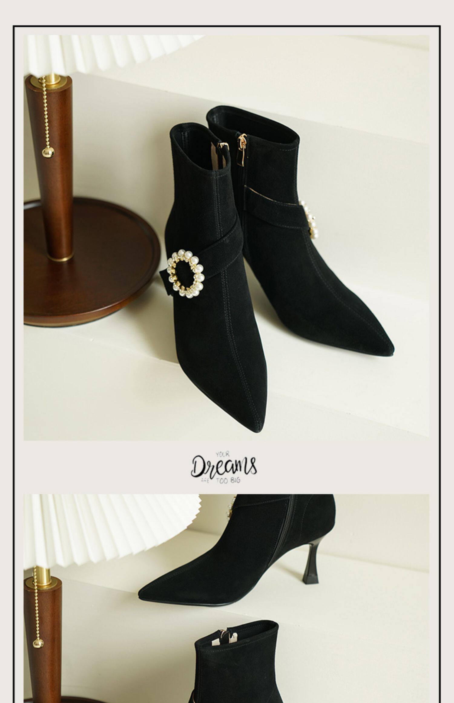 Демисезонные короткие сапоги с заостренным носом, сексуальная матовая обувь на высоком каблуке, 2023 года, французский стиль