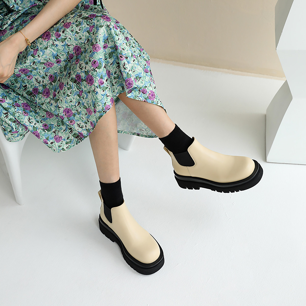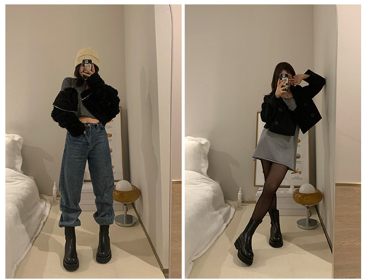 Martens, короткие сапоги на платформе в английском стиле, ботинки, челси, в британском стиле, из натуральной кожи