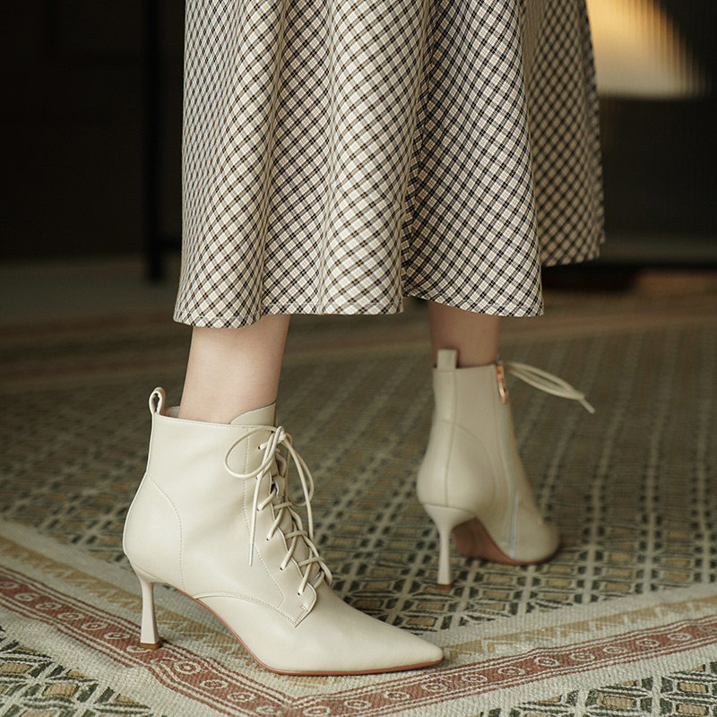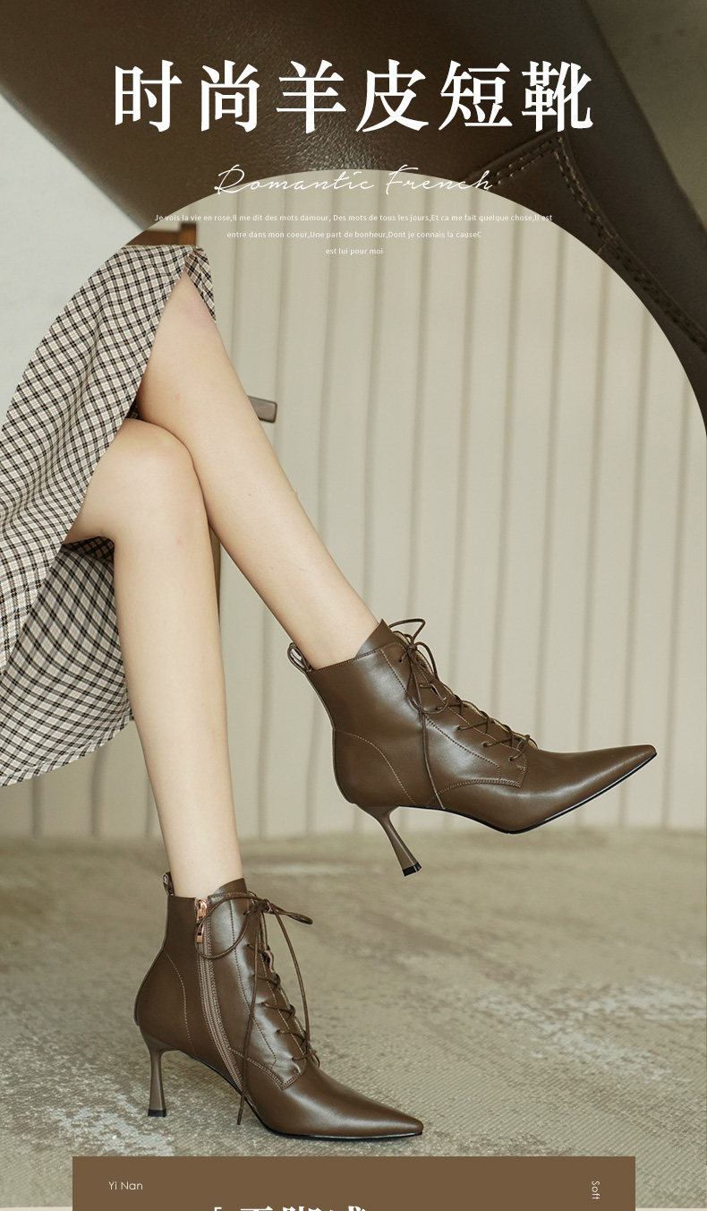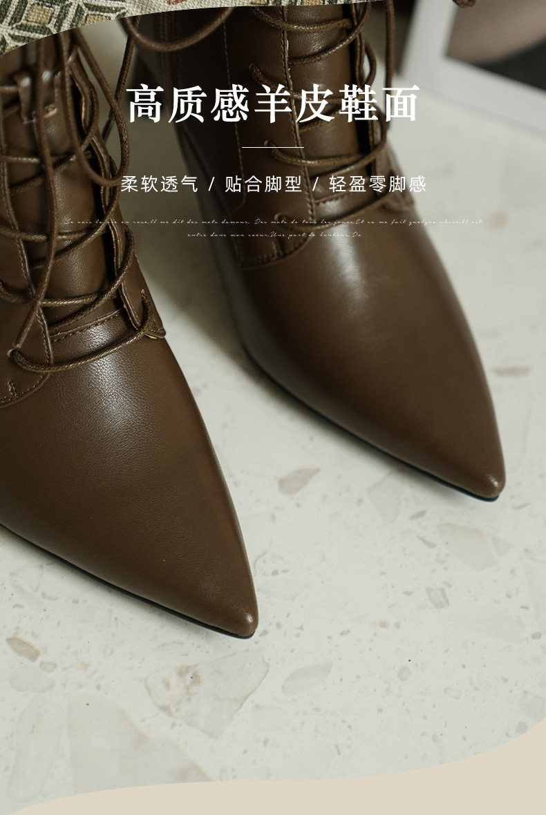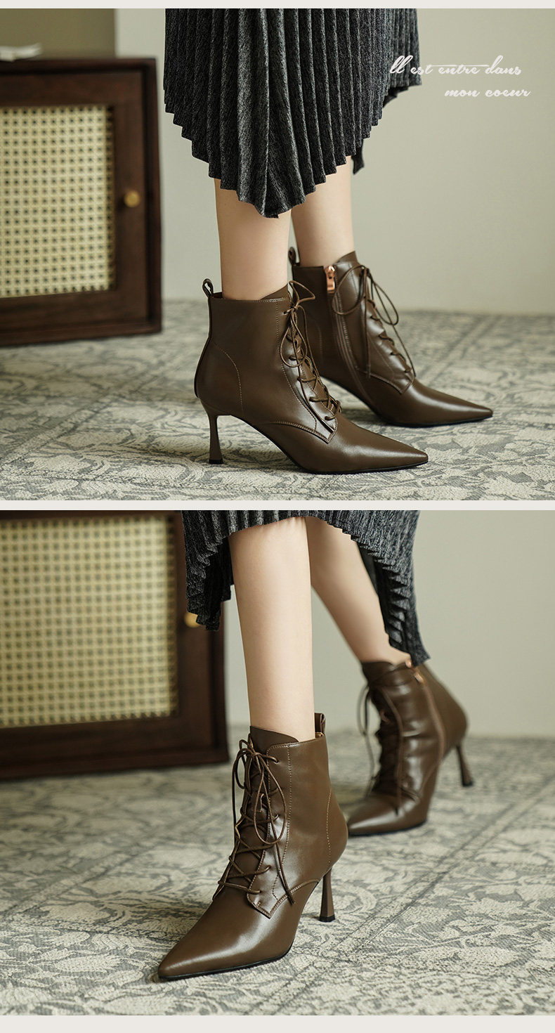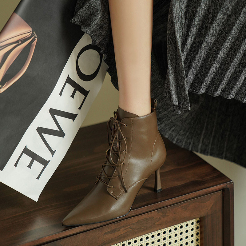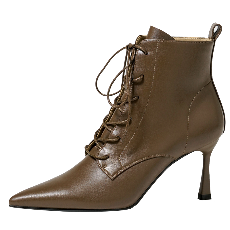 Martens, демисезонные коричневые короткие сапоги с заостренным носом, ботинки на высоком каблуке, ботильоны, французский стиль