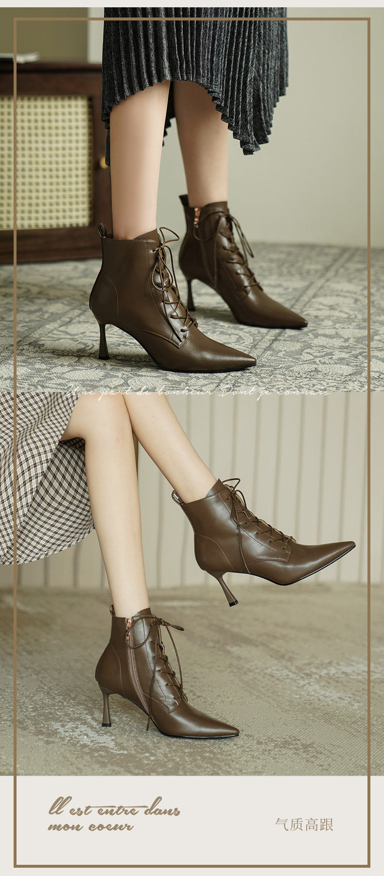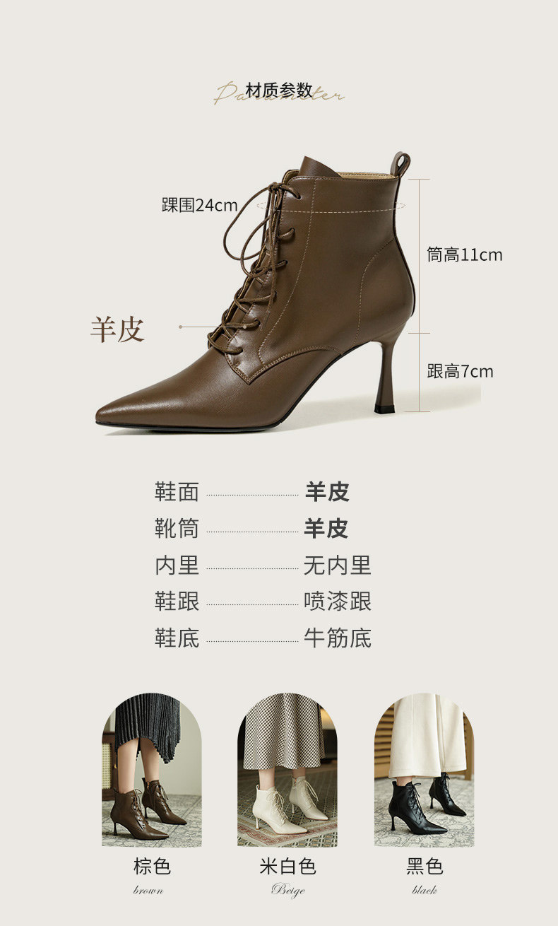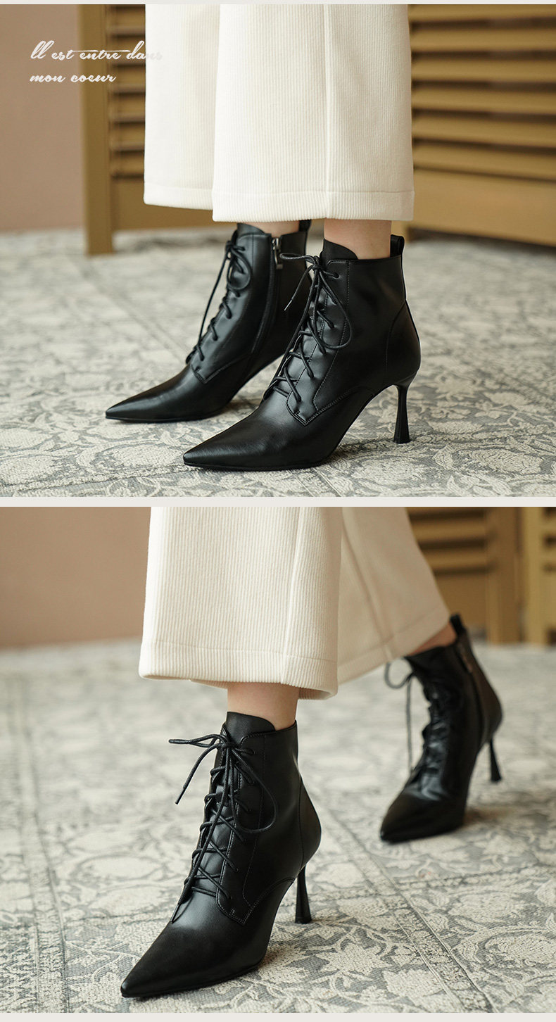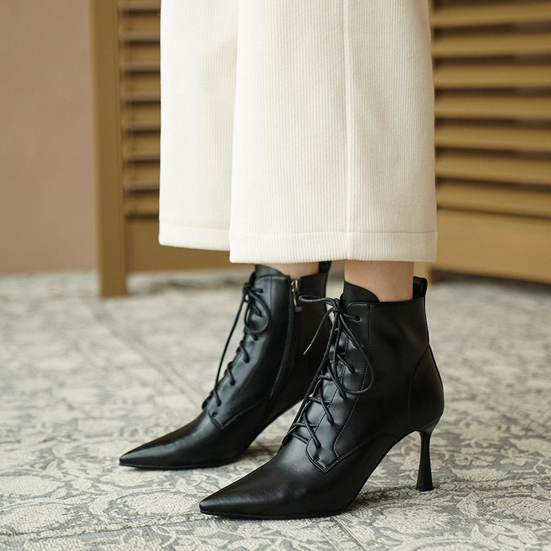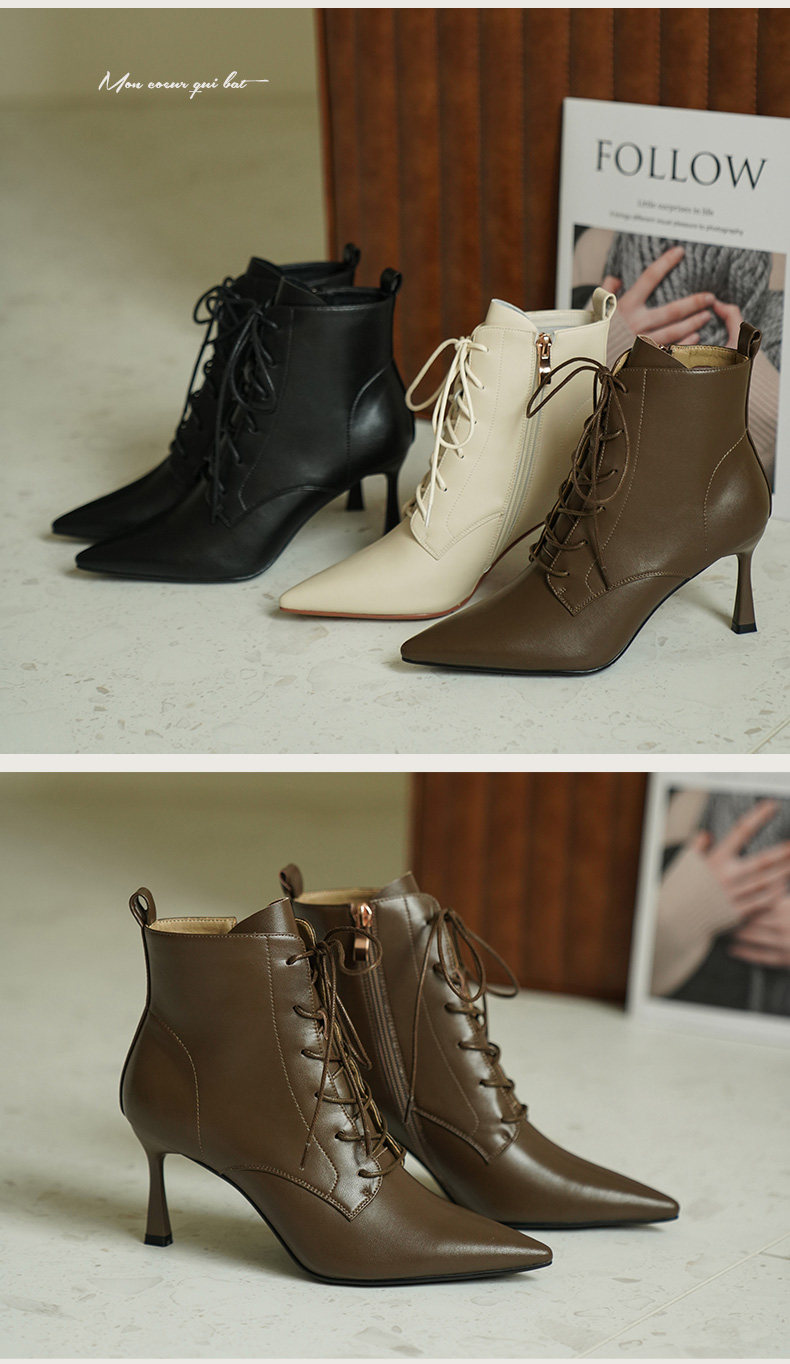 Martens, демисезонные коричневые короткие сапоги с заостренным носом, ботинки на высоком каблуке, ботильоны, французский стиль
