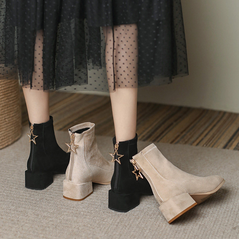 Martens, демисезонные универсальные короткие сапоги с молнией на высоком каблуке, популярно в интернете