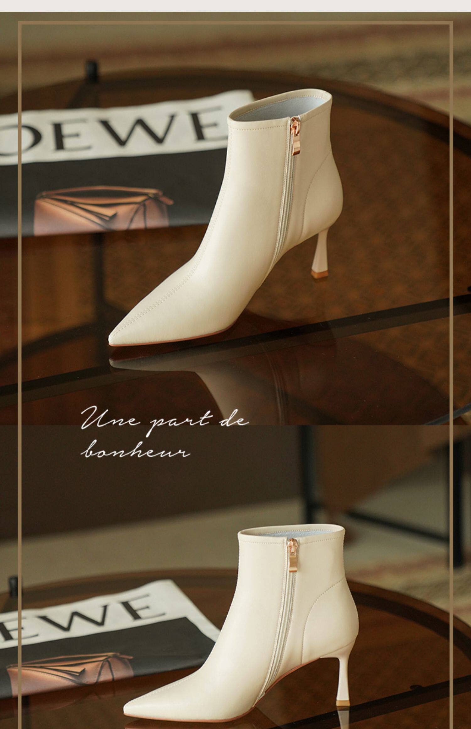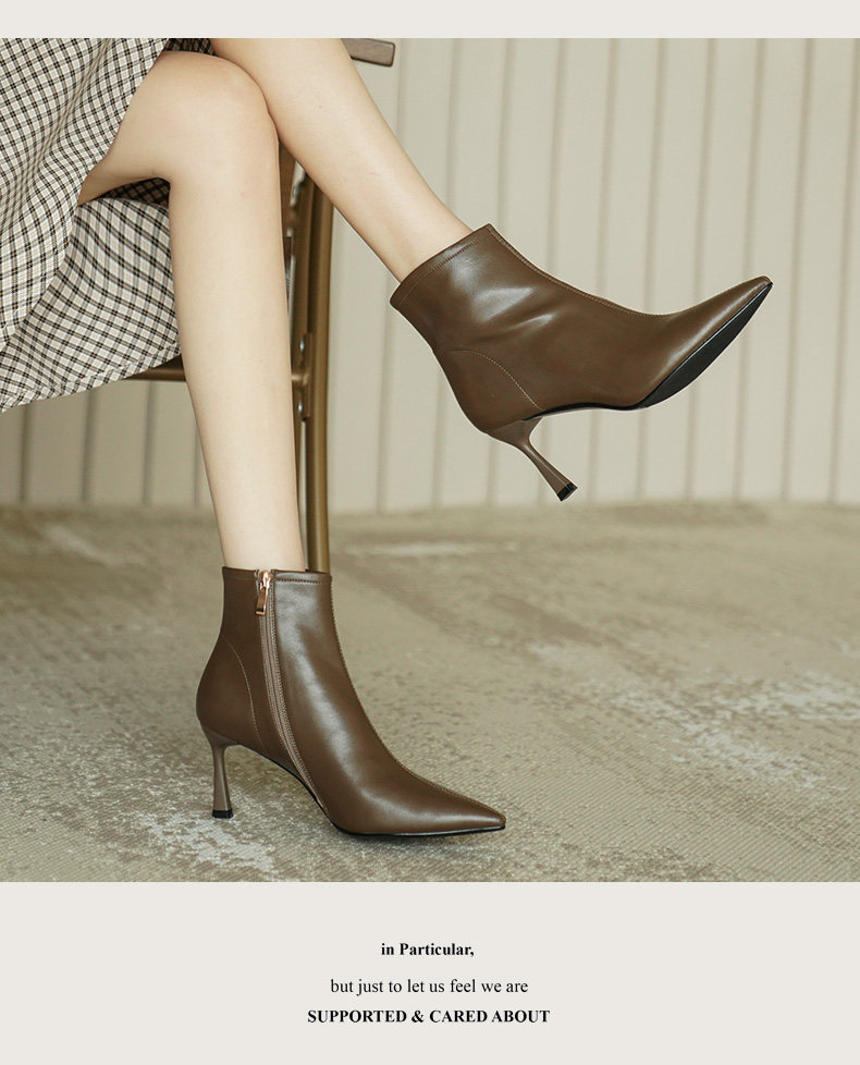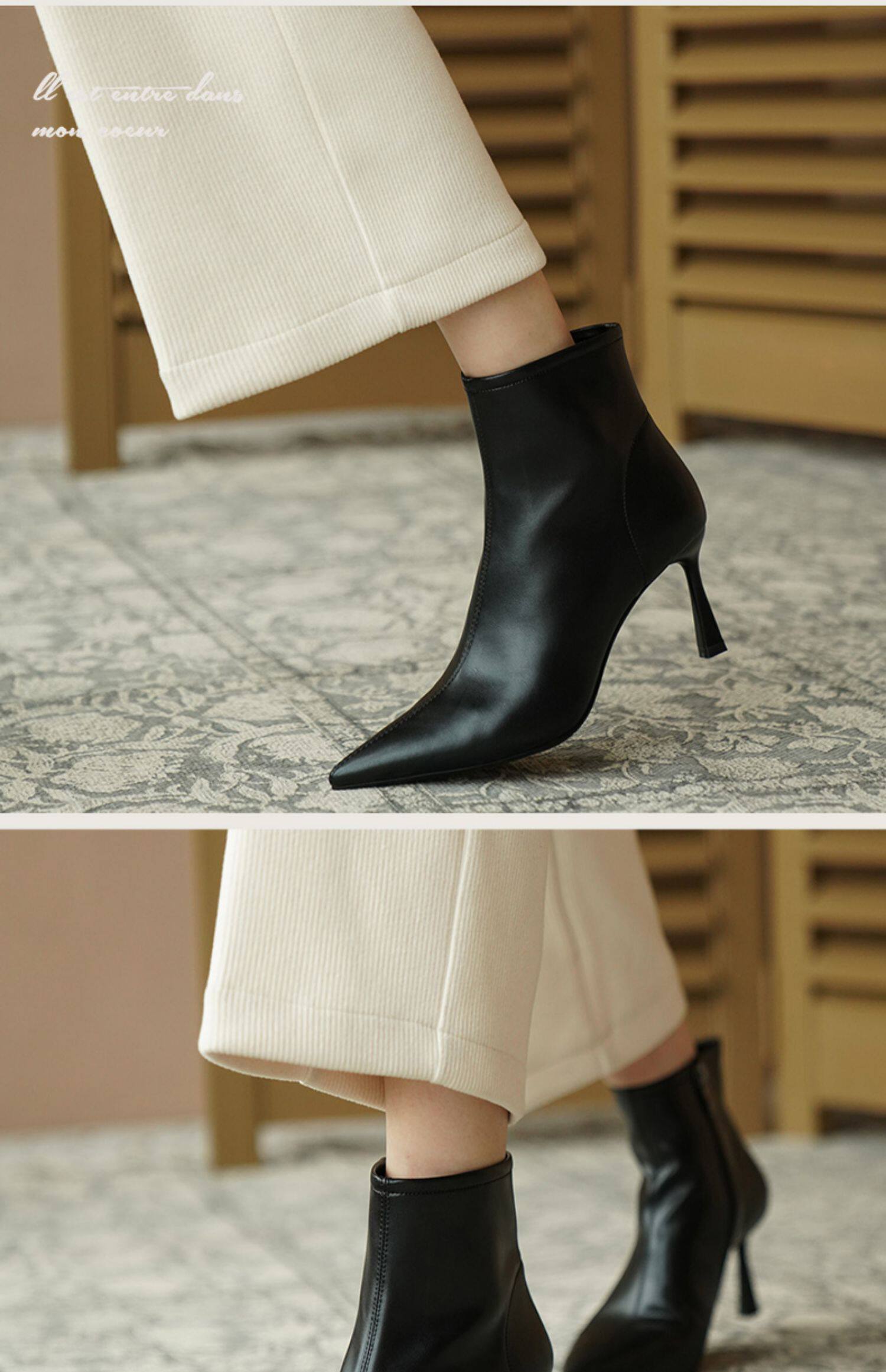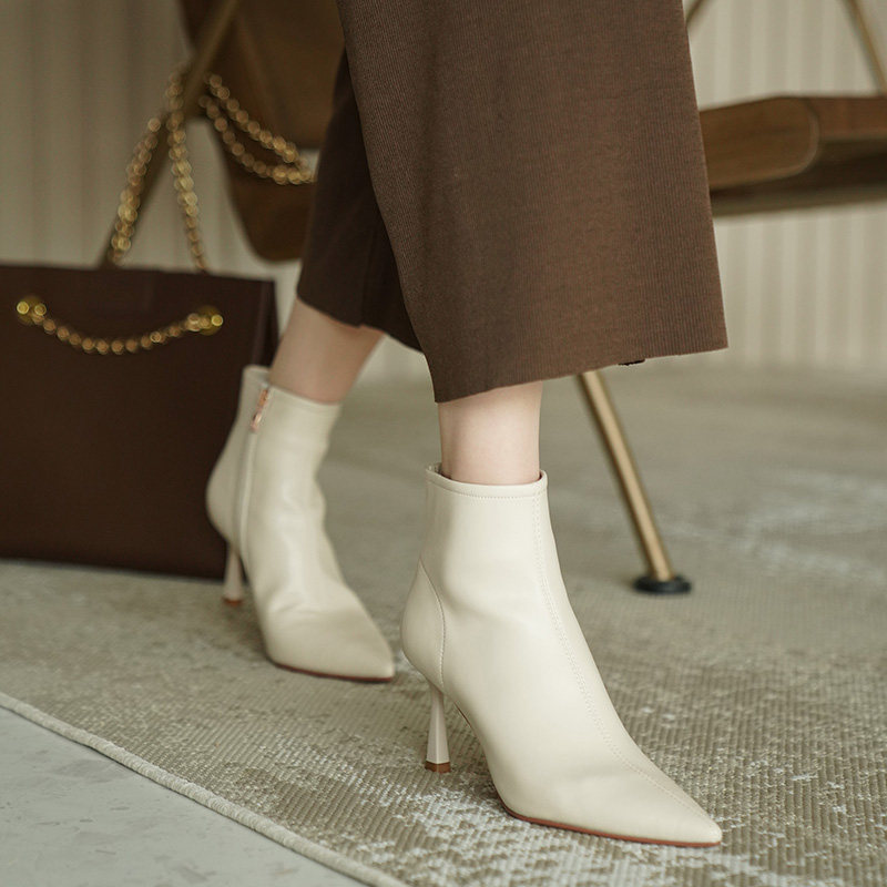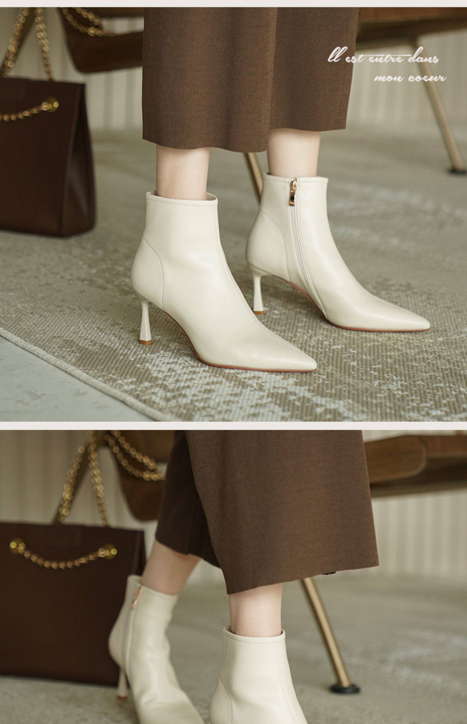 Коричневые короткие сапоги с заостренным носом, белая обувь на высоком каблуке, ботинки, 2023 года, осенние, французский стиль