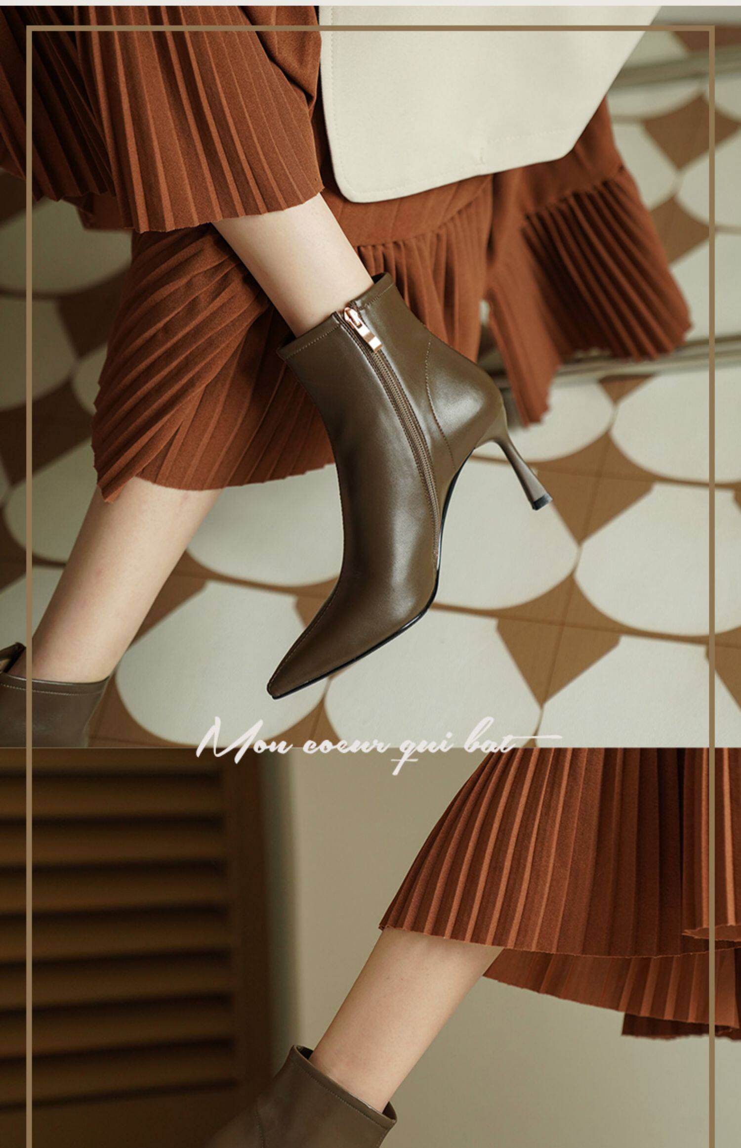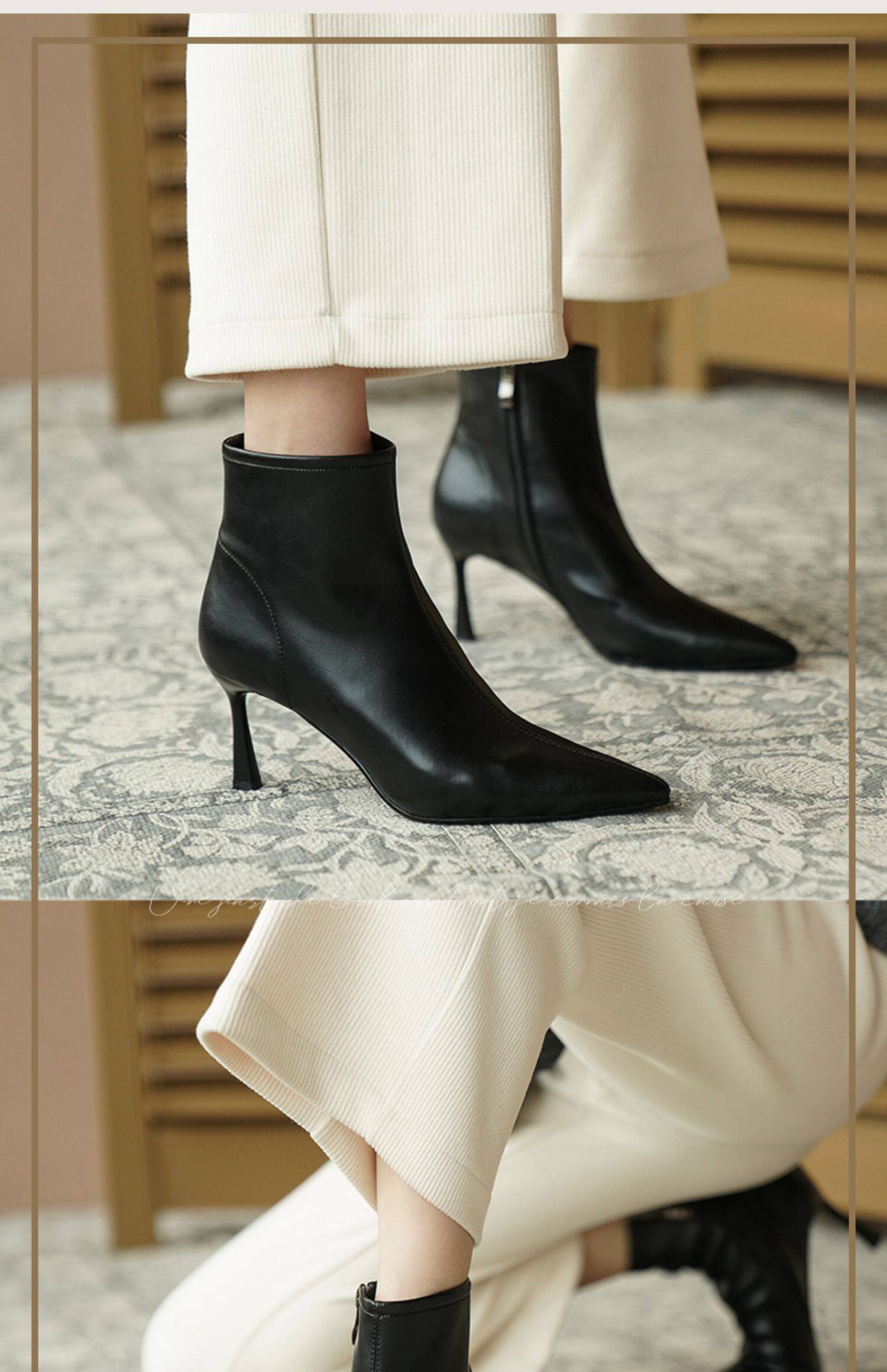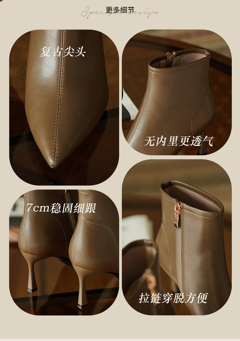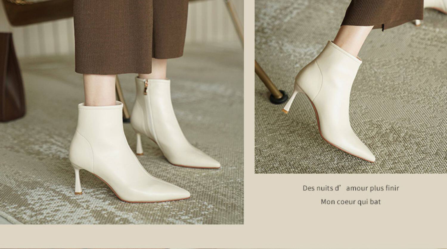 Коричневые короткие сапоги с заостренным носом, белая обувь на высоком каблуке, ботинки, 2023 года, осенние, французский стиль