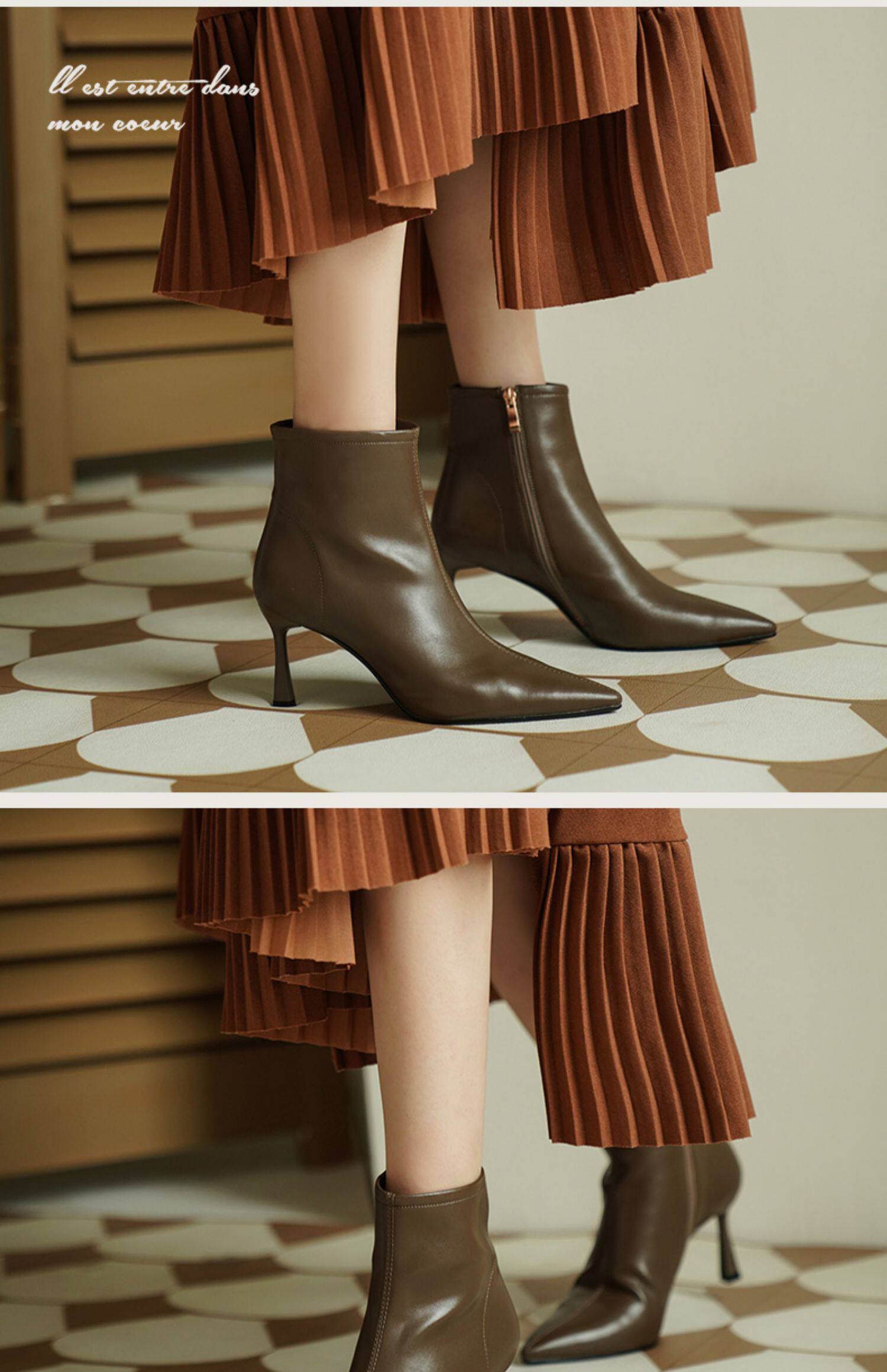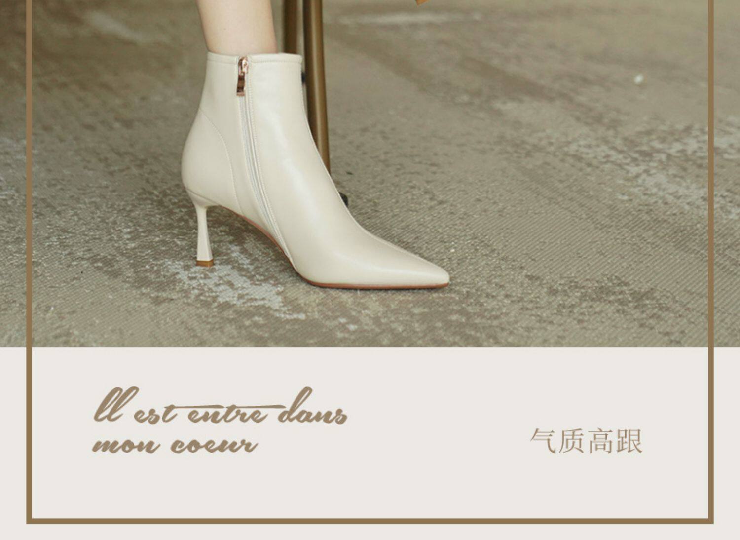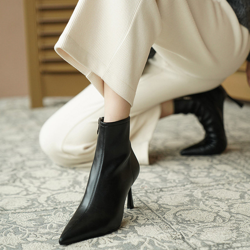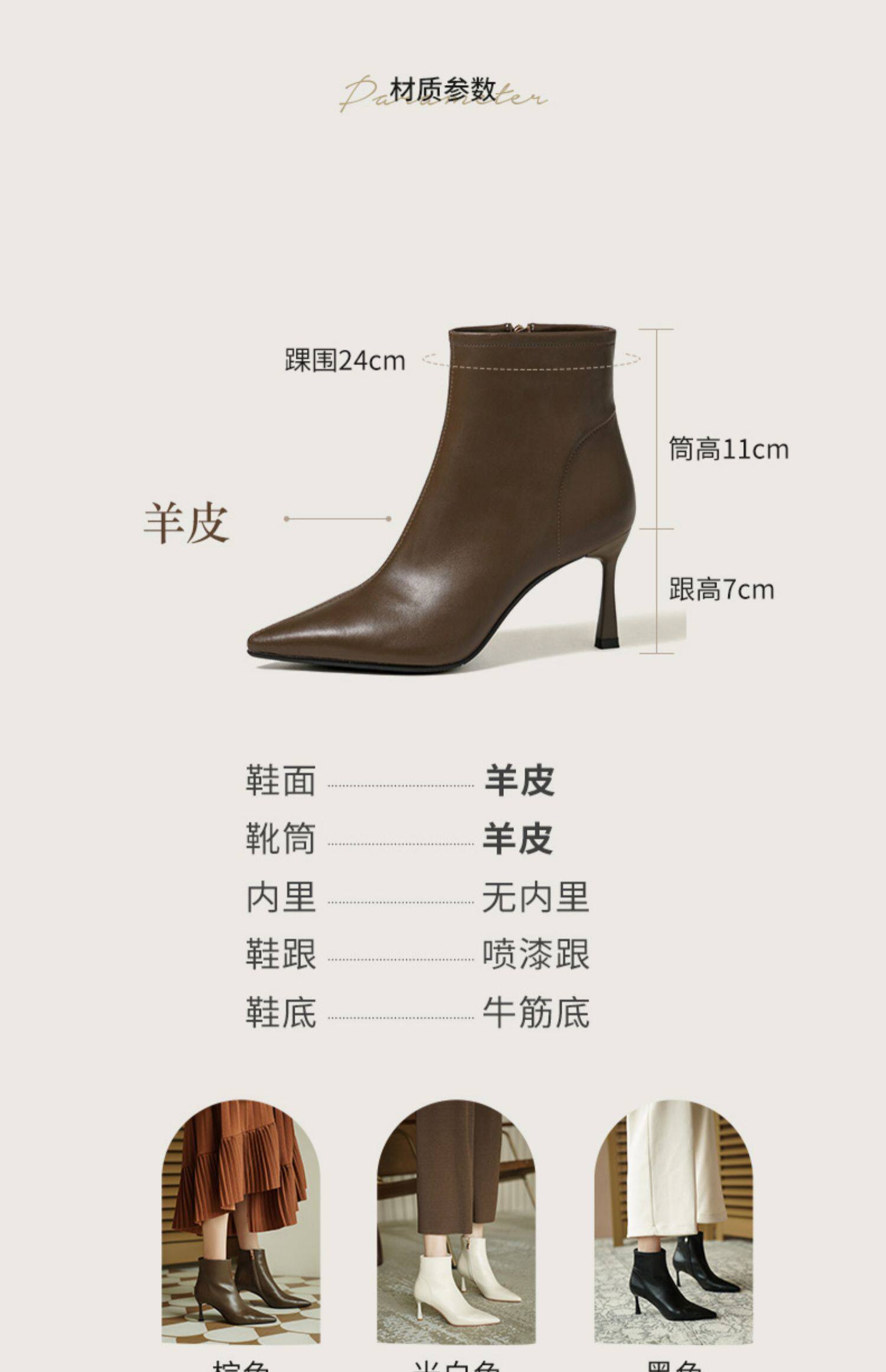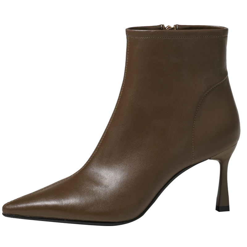 Коричневые короткие сапоги с заостренным носом, белая обувь на высоком каблуке, ботинки, 2023 года, осенние, французский стиль