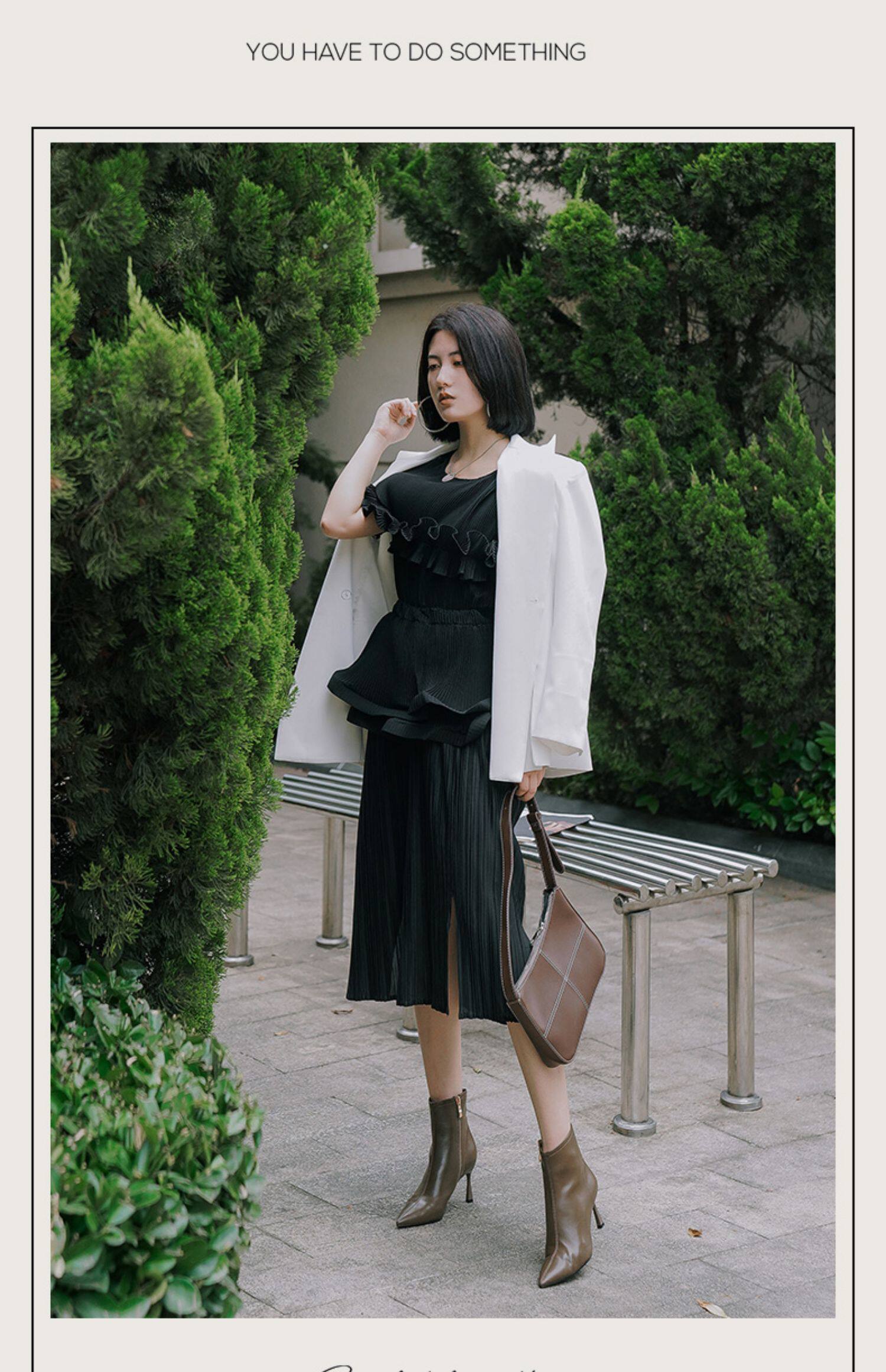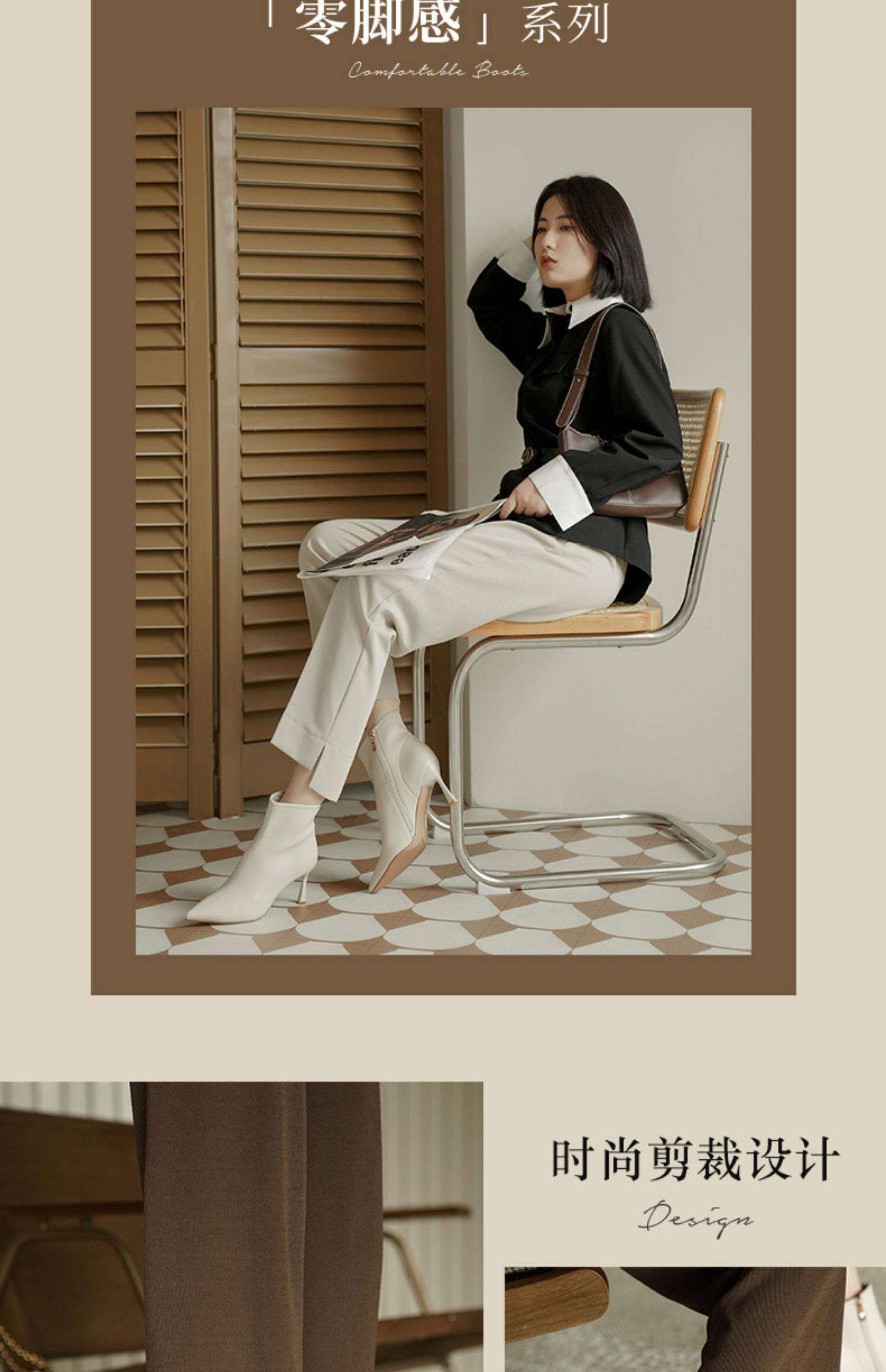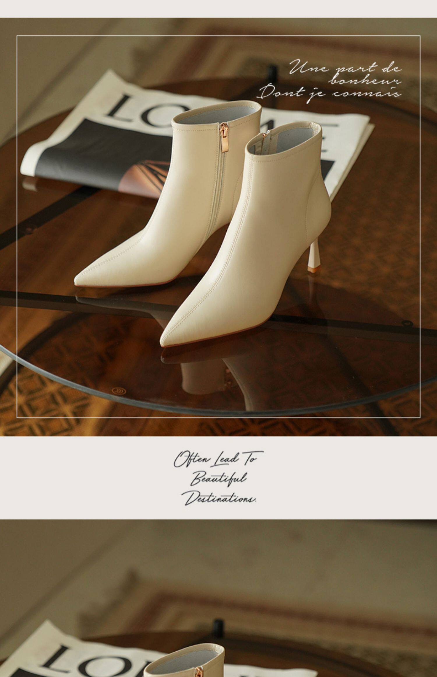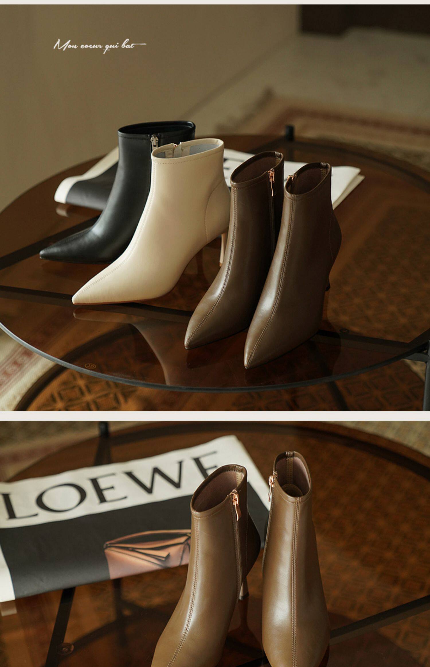 Коричневые короткие сапоги с заостренным носом, белая обувь на высоком каблуке, ботинки, 2023 года, осенние, французский стиль