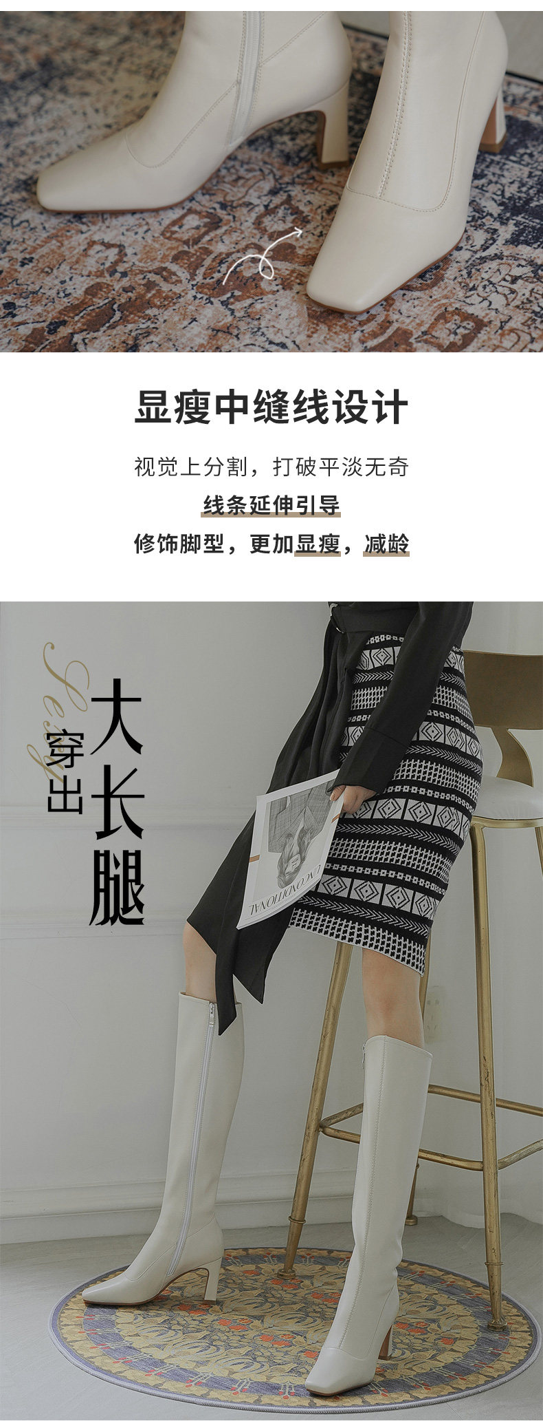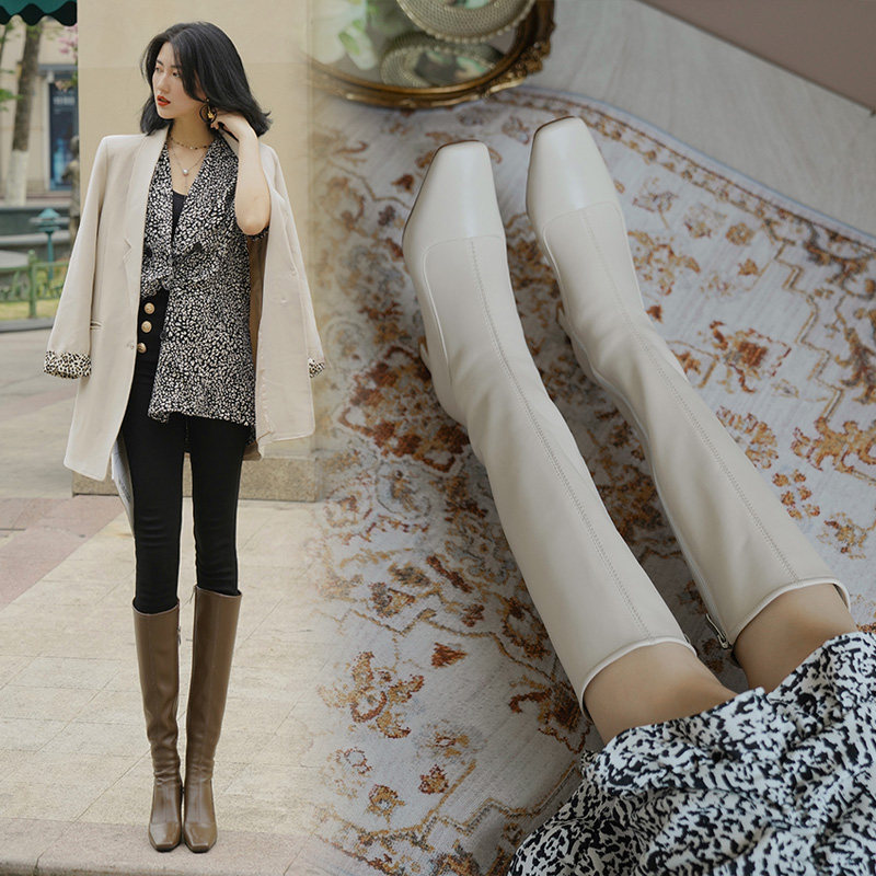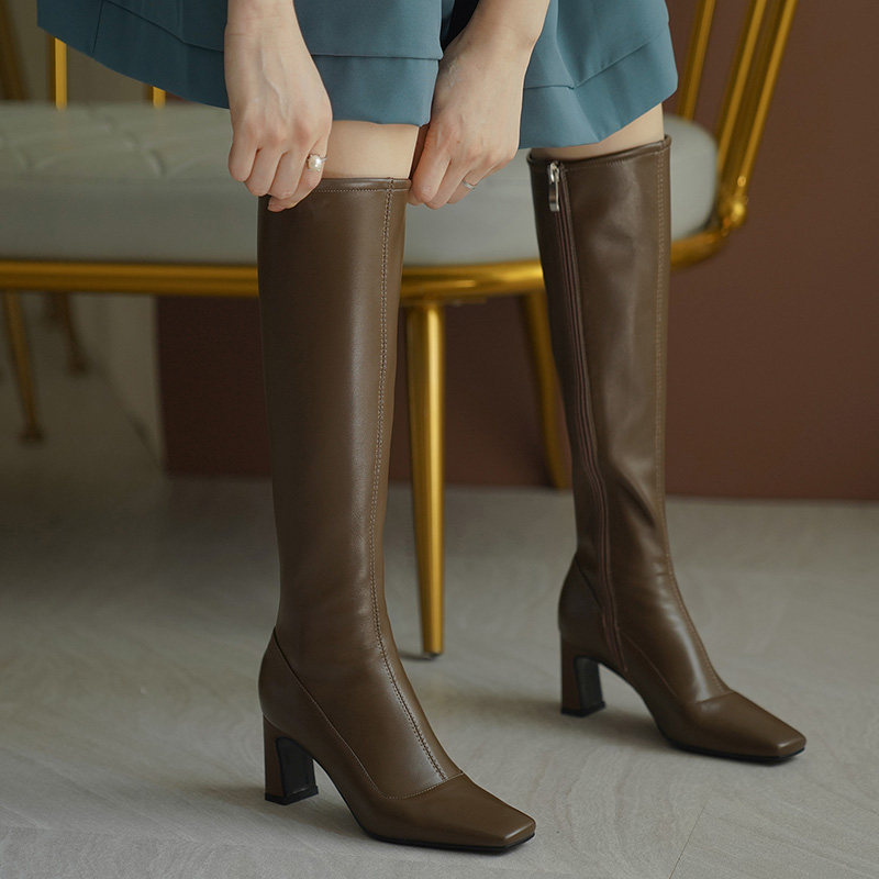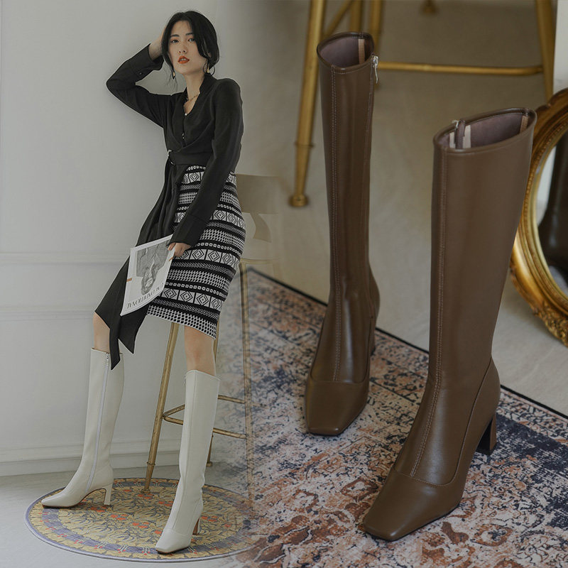 Белые весенние высокие коричневые бежевые высокие сапоги, коллекция 2023, из натуральной кожи, длина миди
