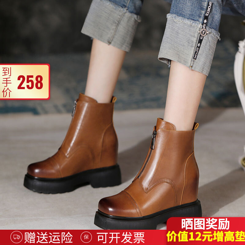 Трендовые высокие универсальные сапоги в английском стиле на платформе, 2022, 10см, из натуральной кожи, в британском стиле