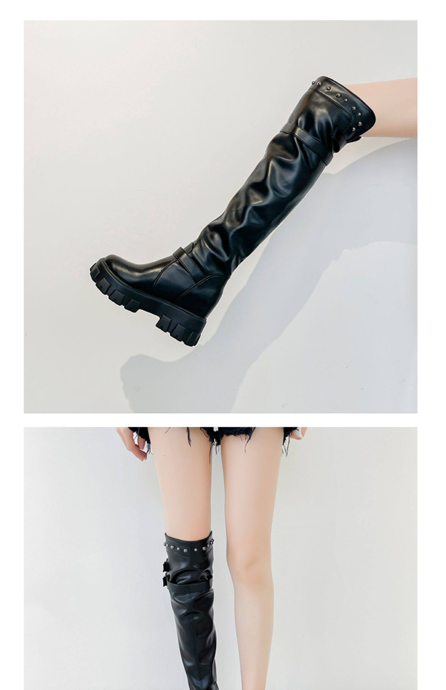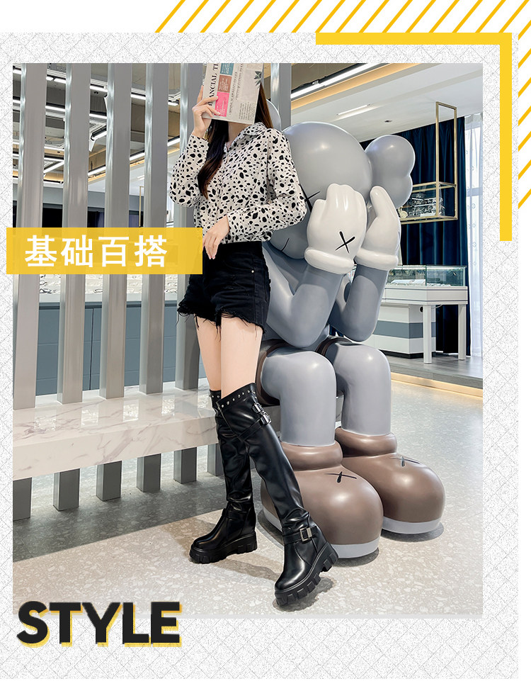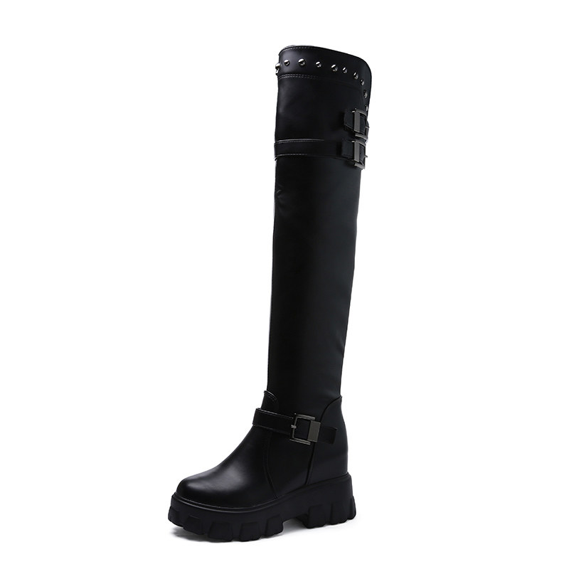 Высокие сапоги, универсальные эластичные черные ботинки на платформе, коллекция 2021, осенние, тренд сезона, подходит для подростков, по фигуре