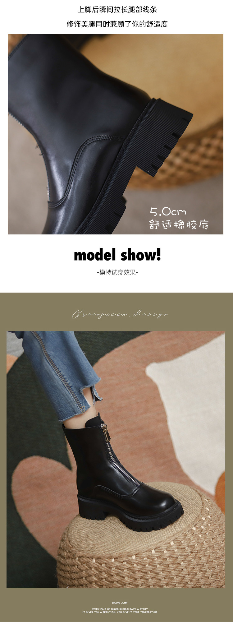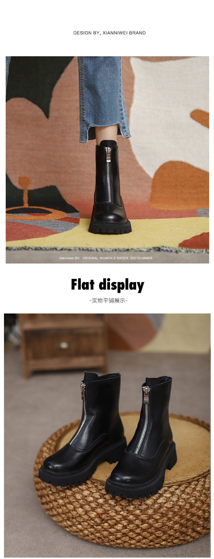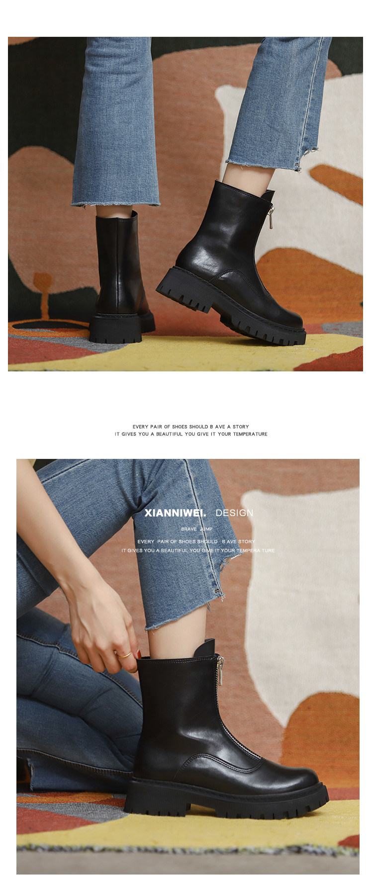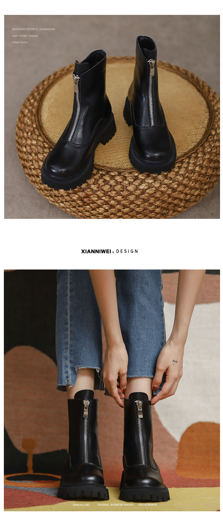 Martens, весенние короткие сапоги с молнией, ботинки, коллекция 2023, средней длины