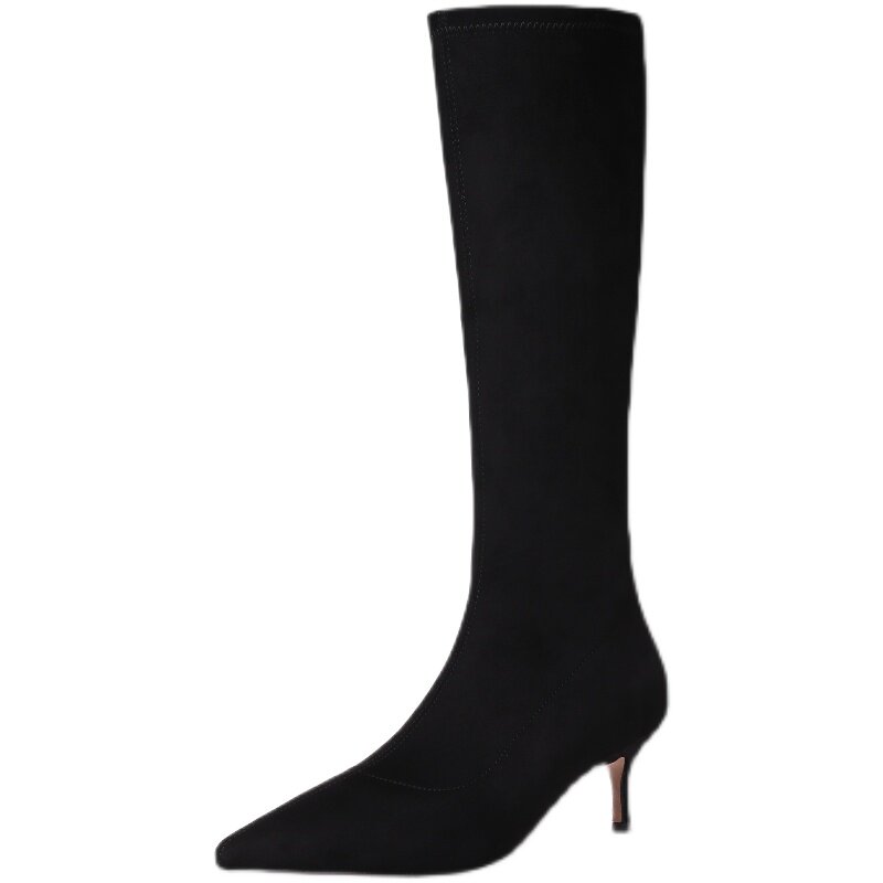Высокие сапоги с заостренным носом на высоком каблуке, эластичные ботинки, премиум класс, стройный силуэт