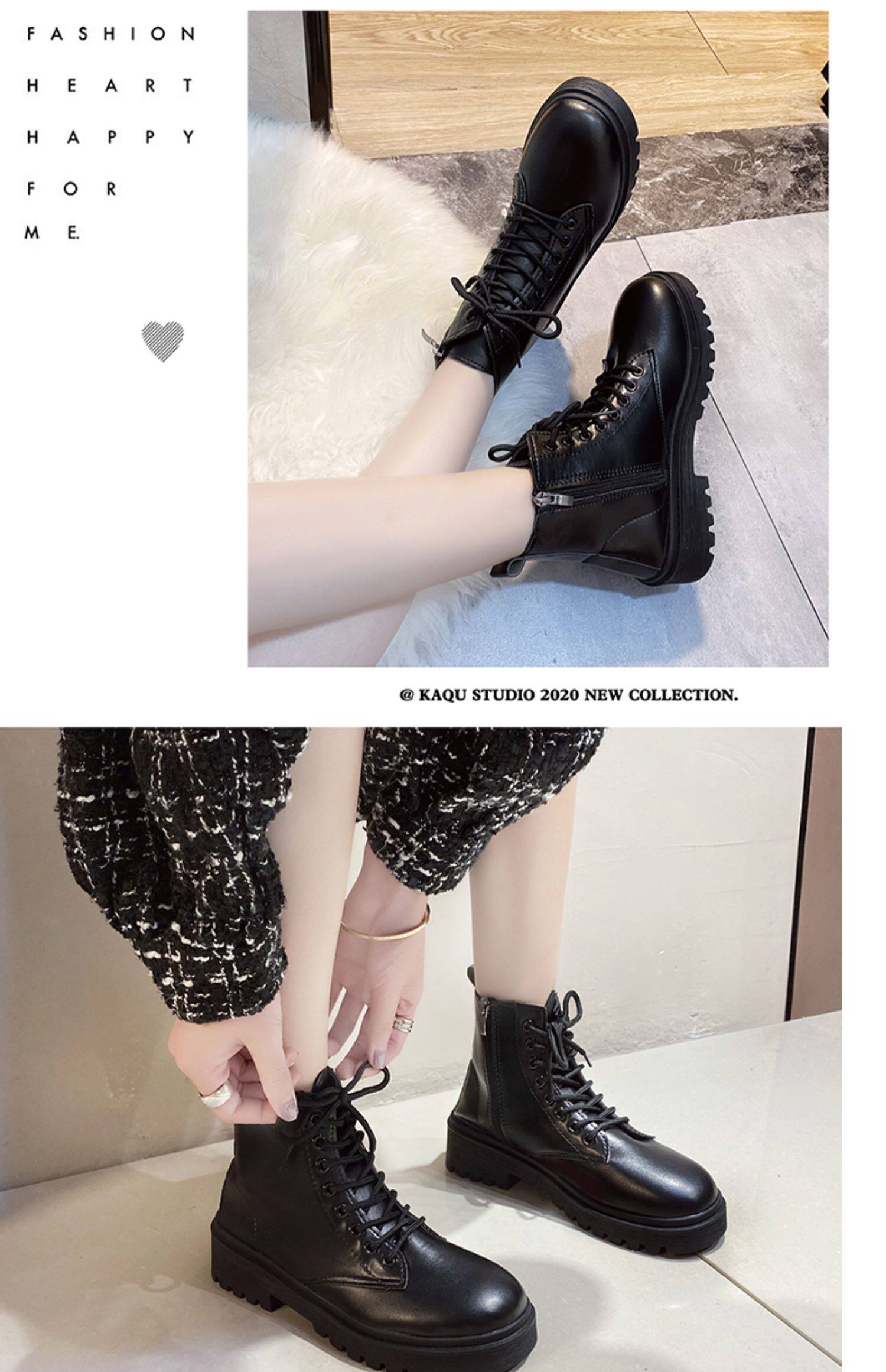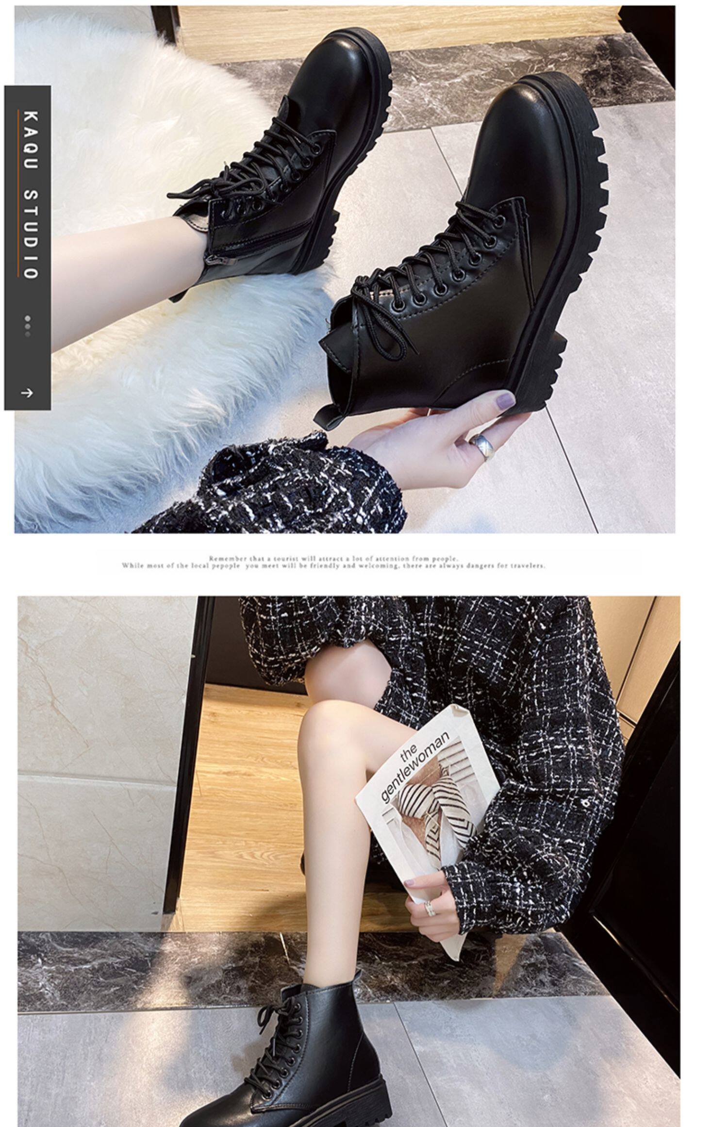Martens, флисовые зимние ботинки в английском стиле на платформе, универсальные короткие сапоги, в британском стиле, 2020