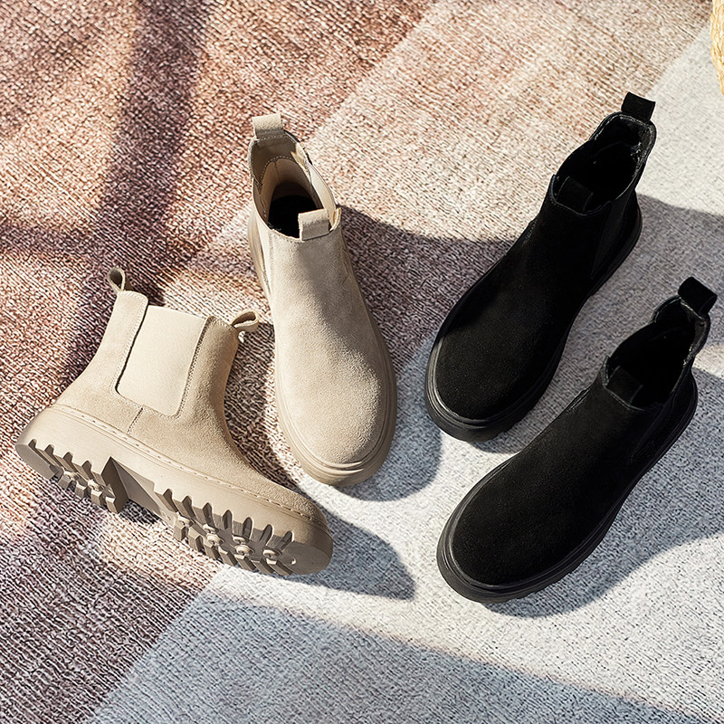 Martens, демисезонные матовые челси, короткие сапоги, из натуральной кожи, на резинке