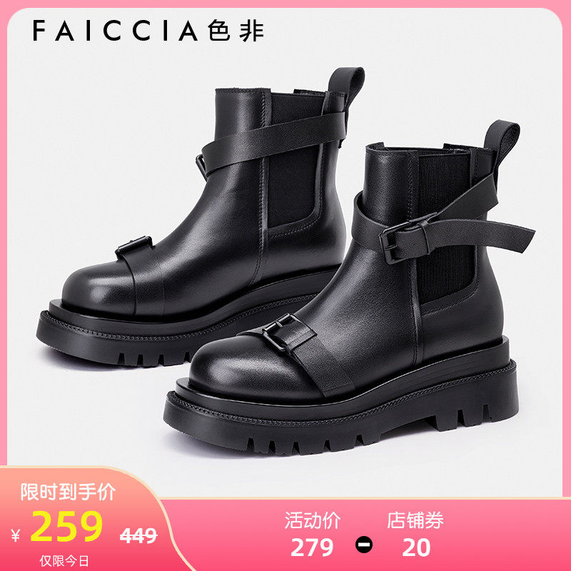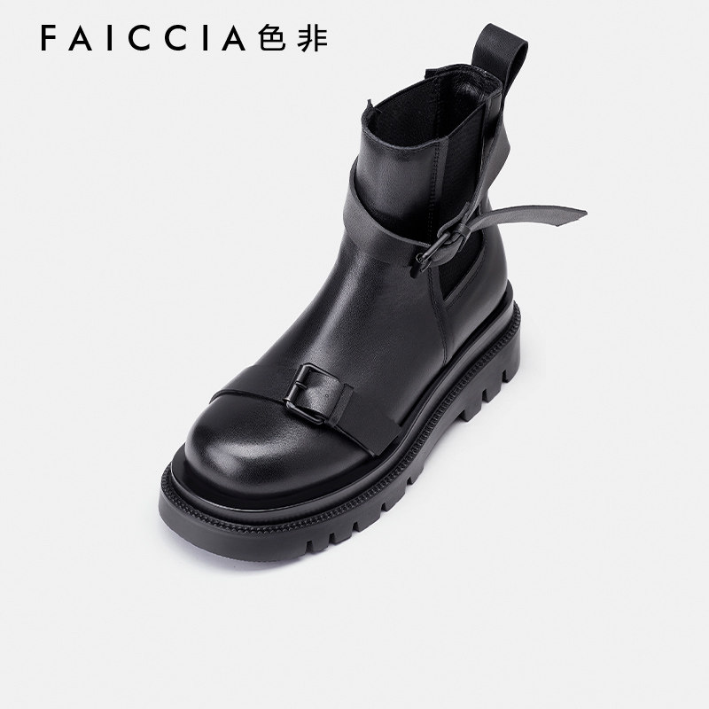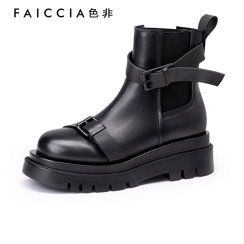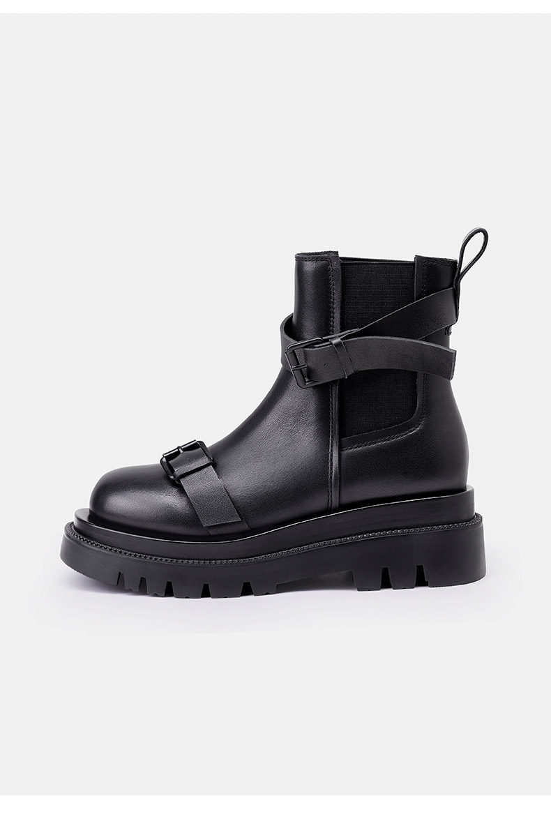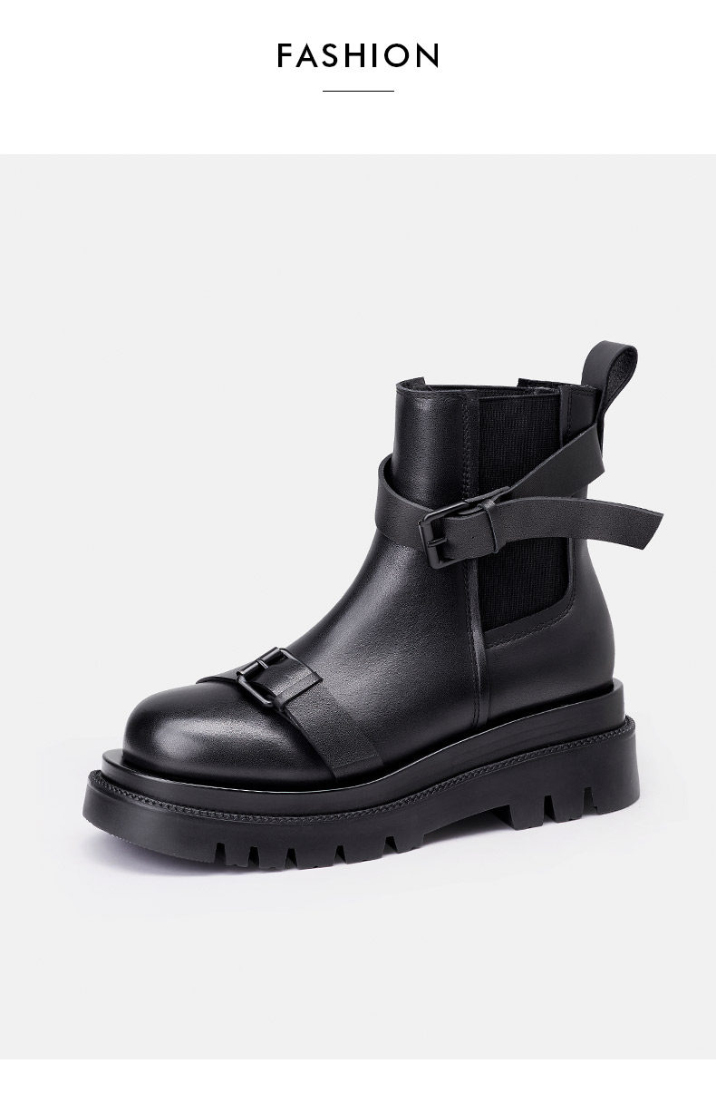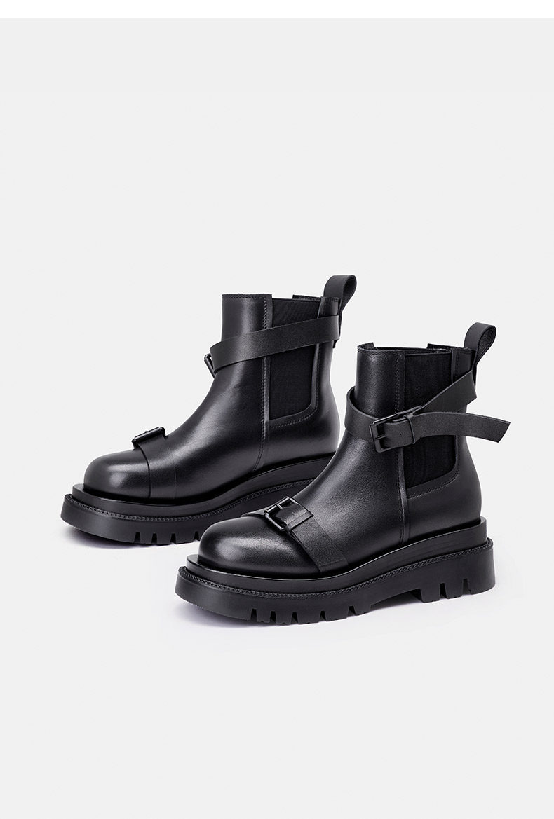 Короткие сапоги, демисезонные ботинки, ремень, пряжка, черные челси, из натуральной кожи