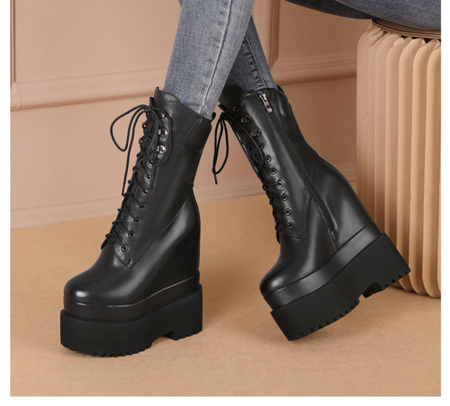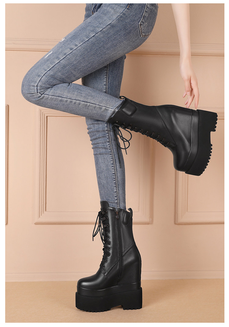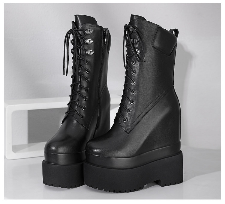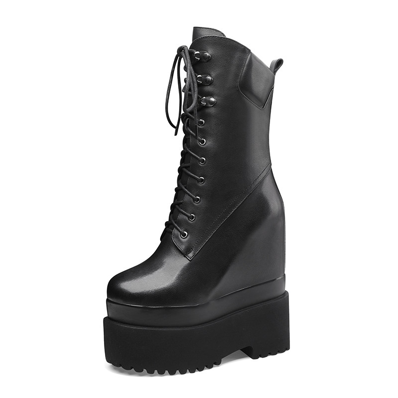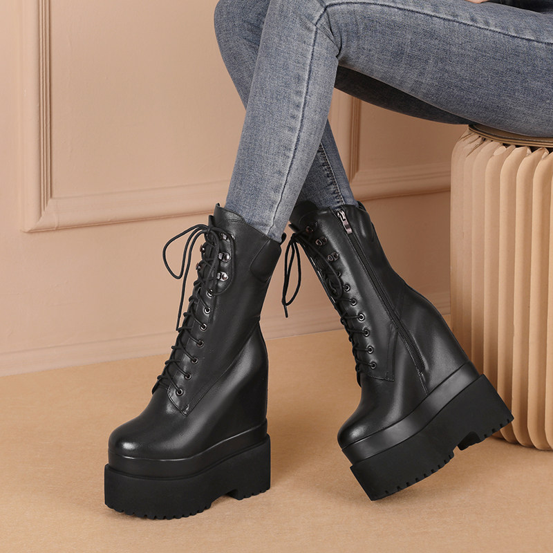 Высокие сапоги на платформе, 16см, подходит для подростков, средней длины, из натуральной кожи