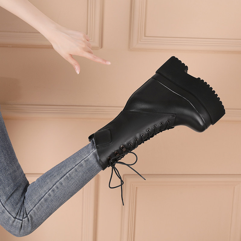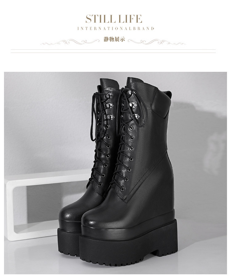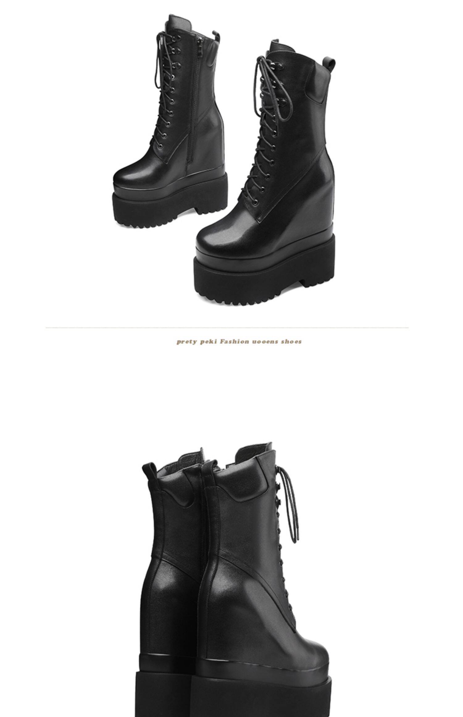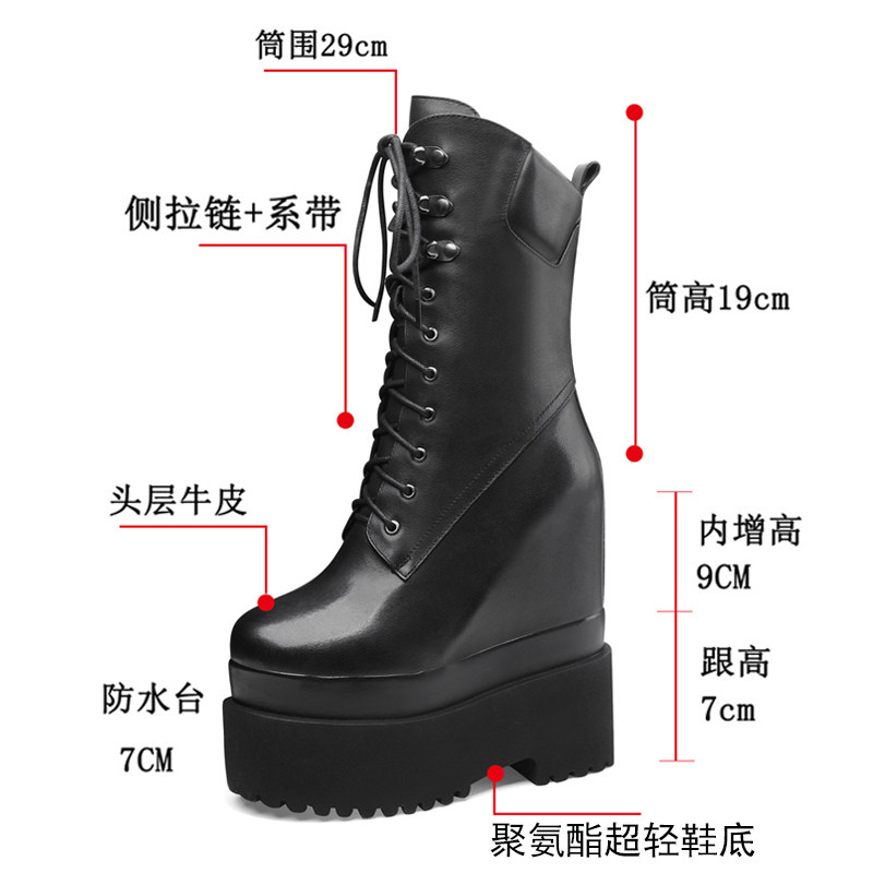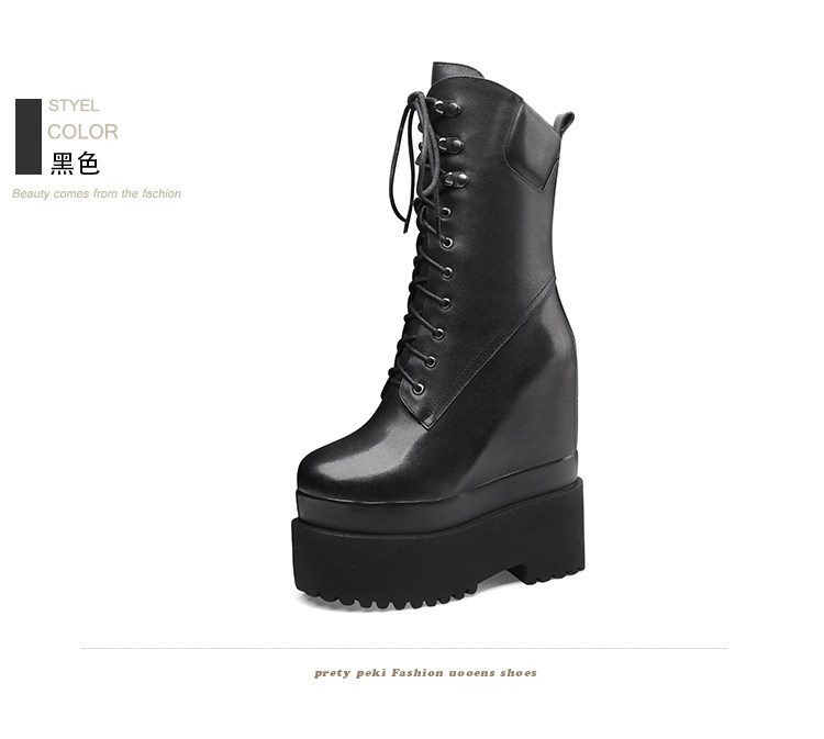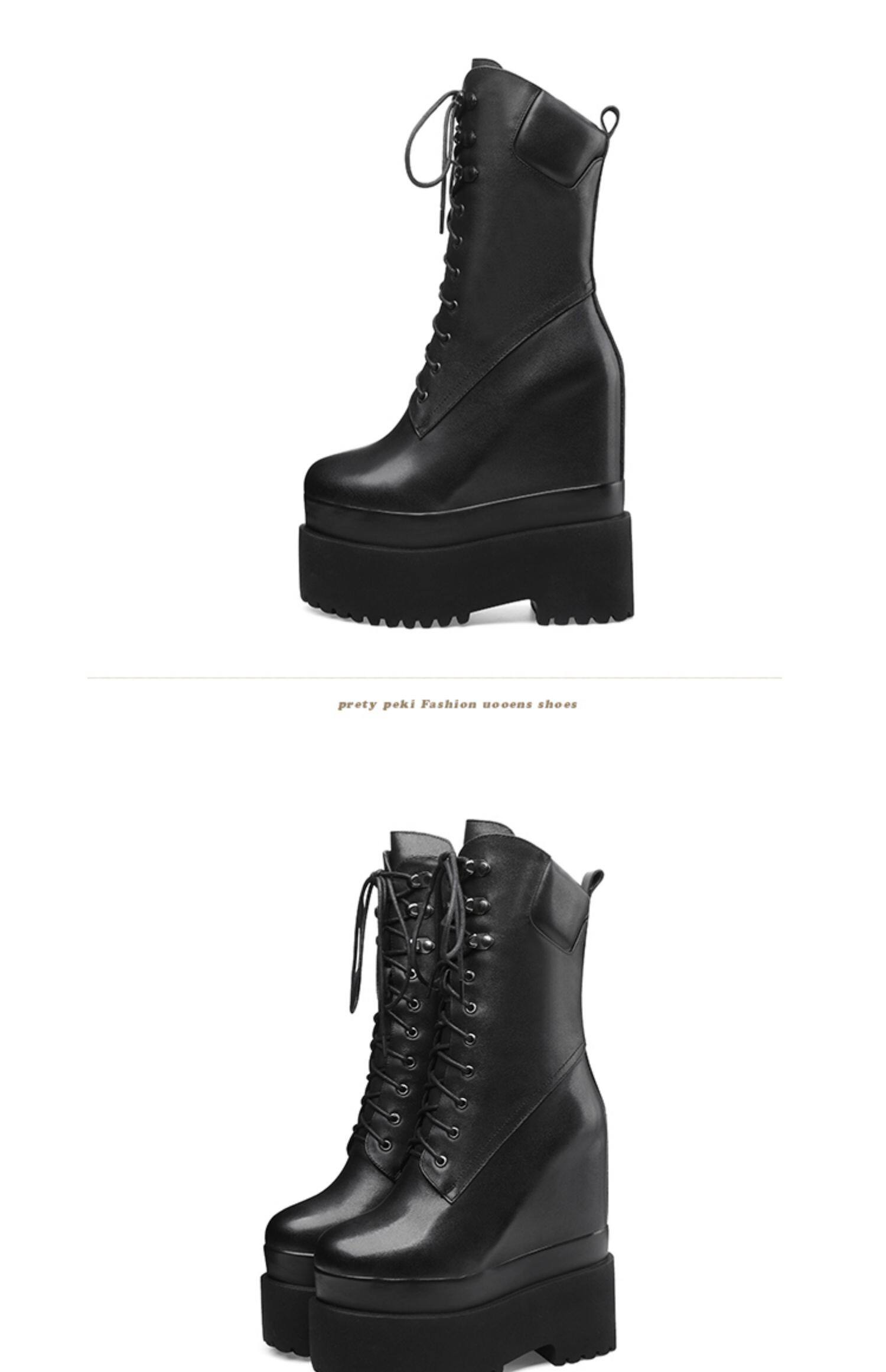 Высокие сапоги на платформе, 16см, подходит для подростков, средней длины, из натуральной кожи