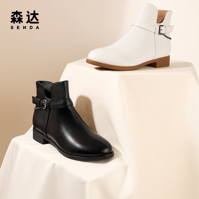 Senda Chelsea Boots Shopping Mall То же самое обнаженное сапоги из кожи толстые каблуки короткие ботинки 4r643dd1