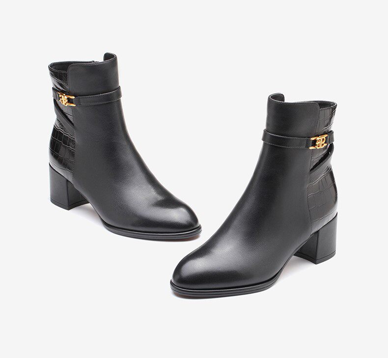 Высокие черные демисезонные короткие сапоги с заостренным носом, французский ретро стиль