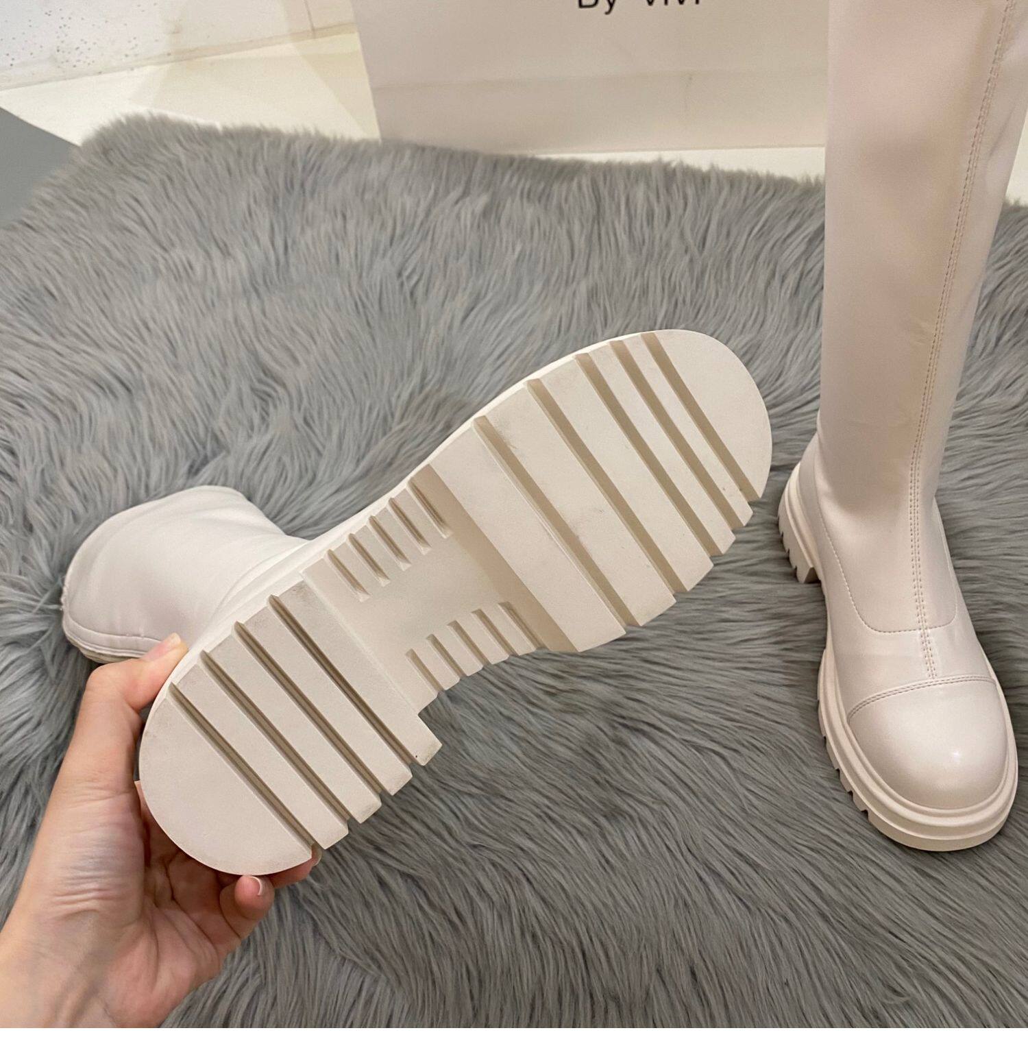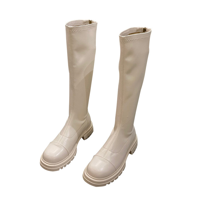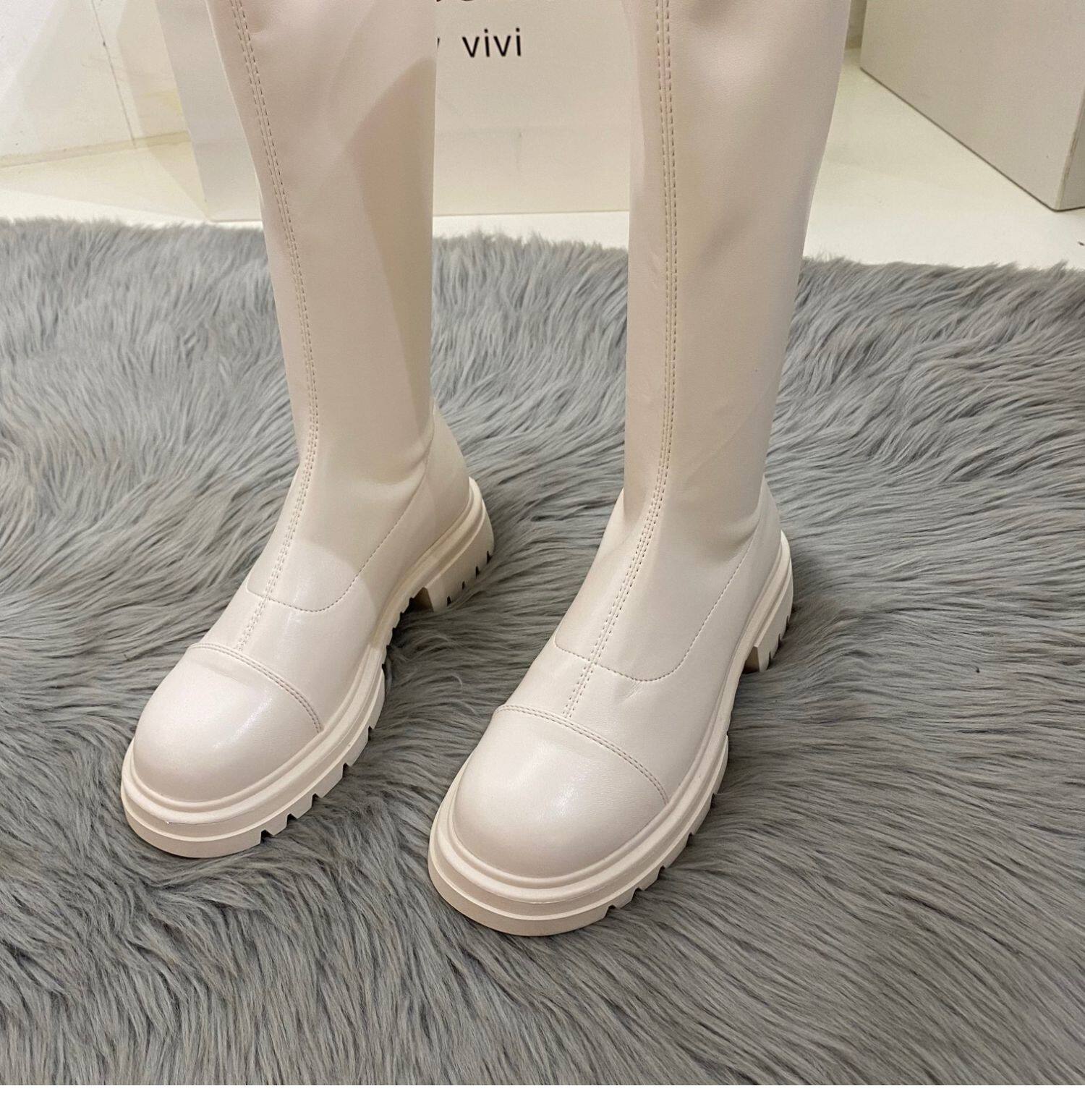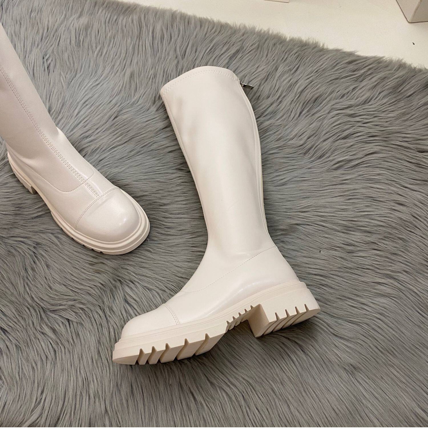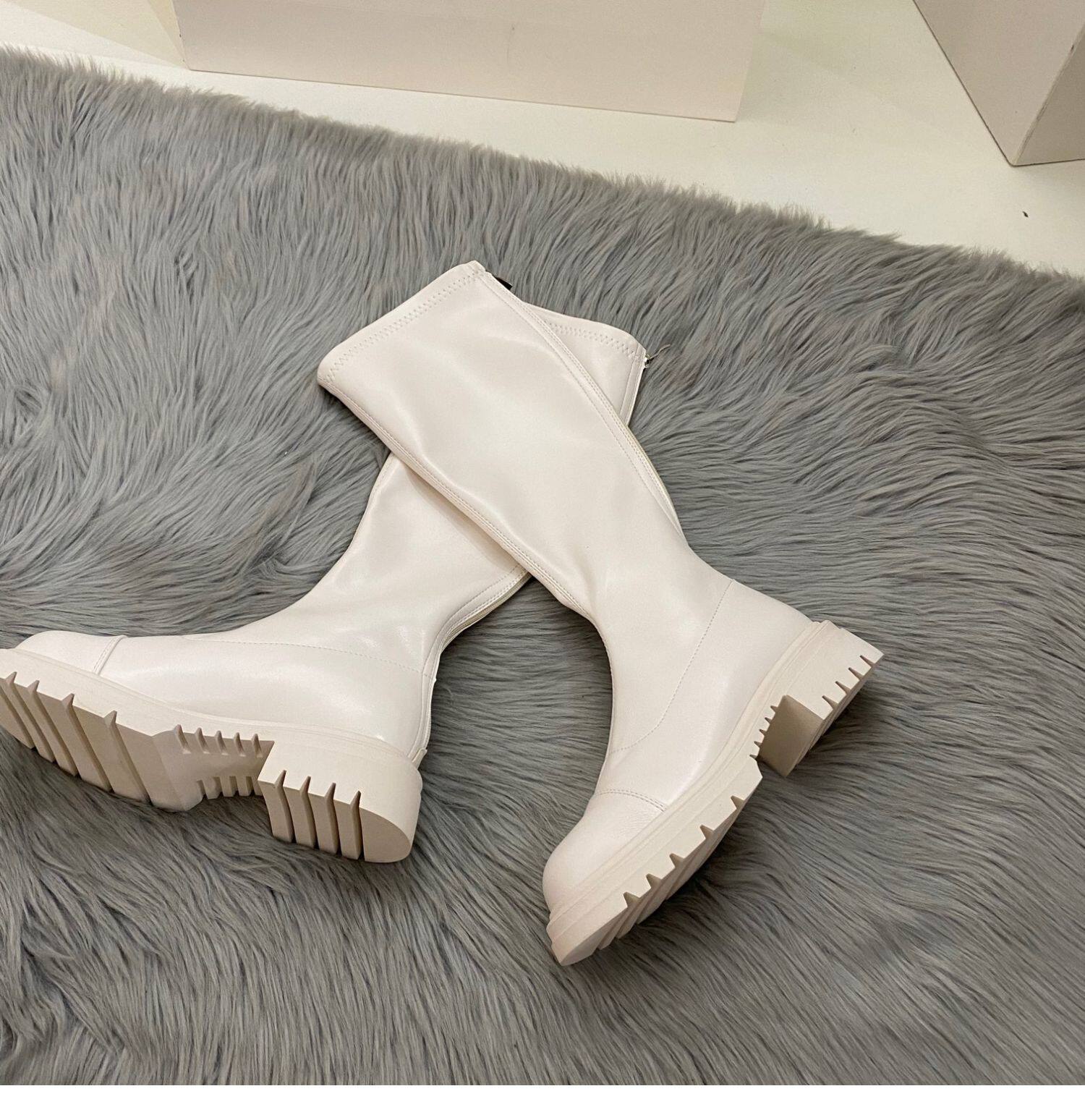 Бежевые высокие сапоги на платформе, демисезонные ботинки, коллекция 2022
