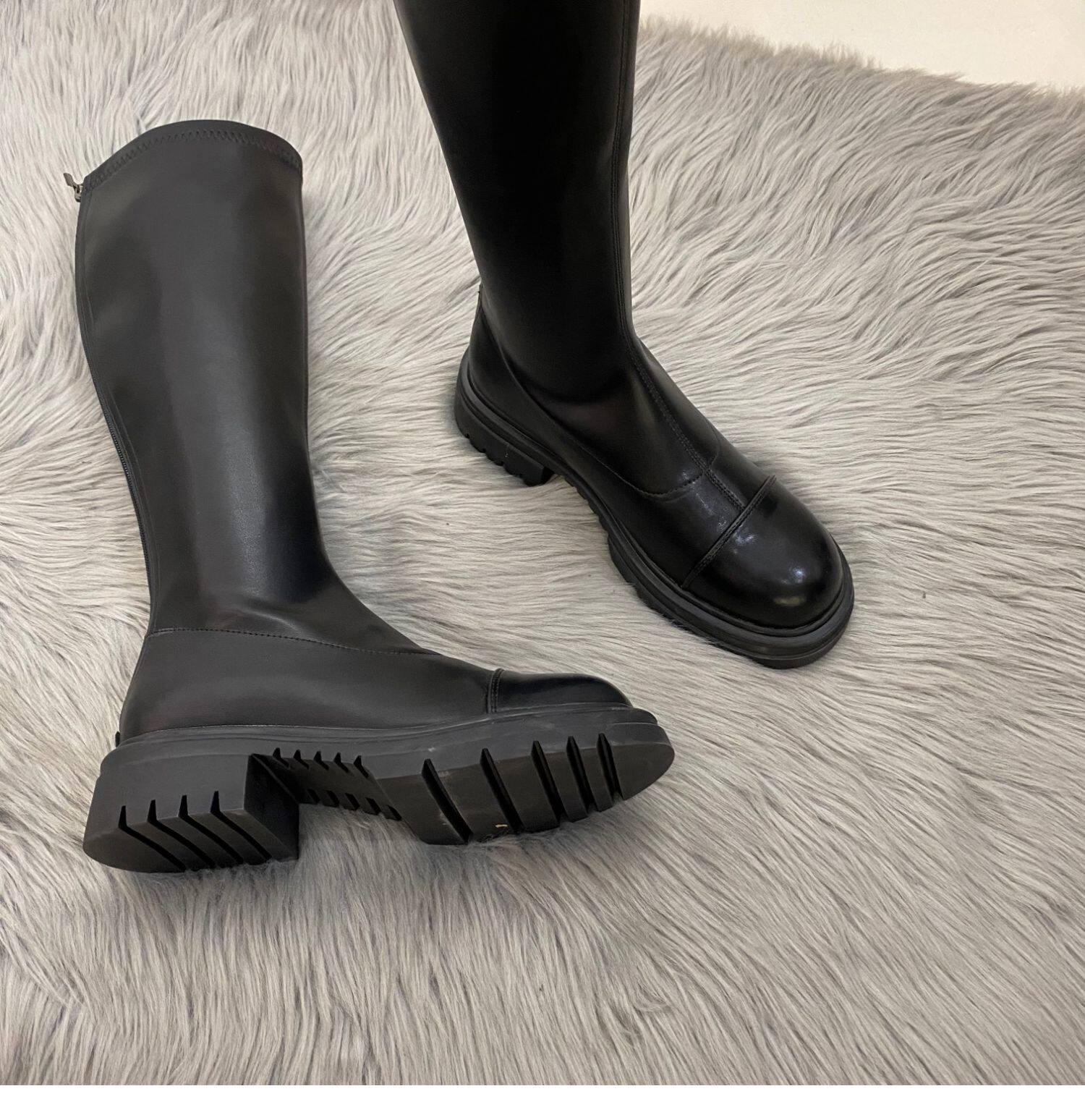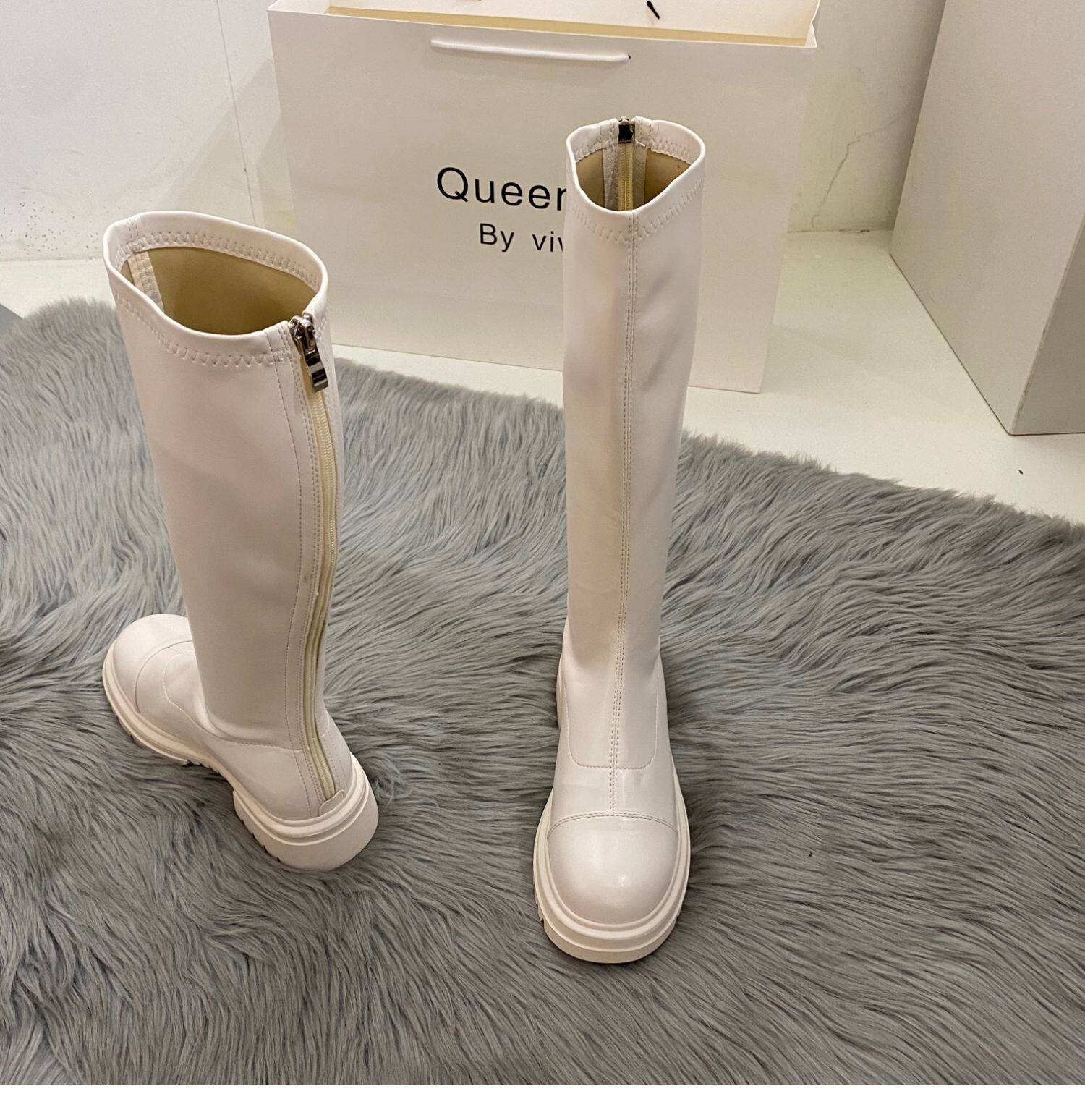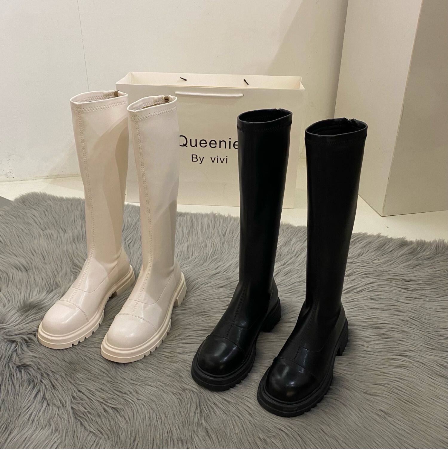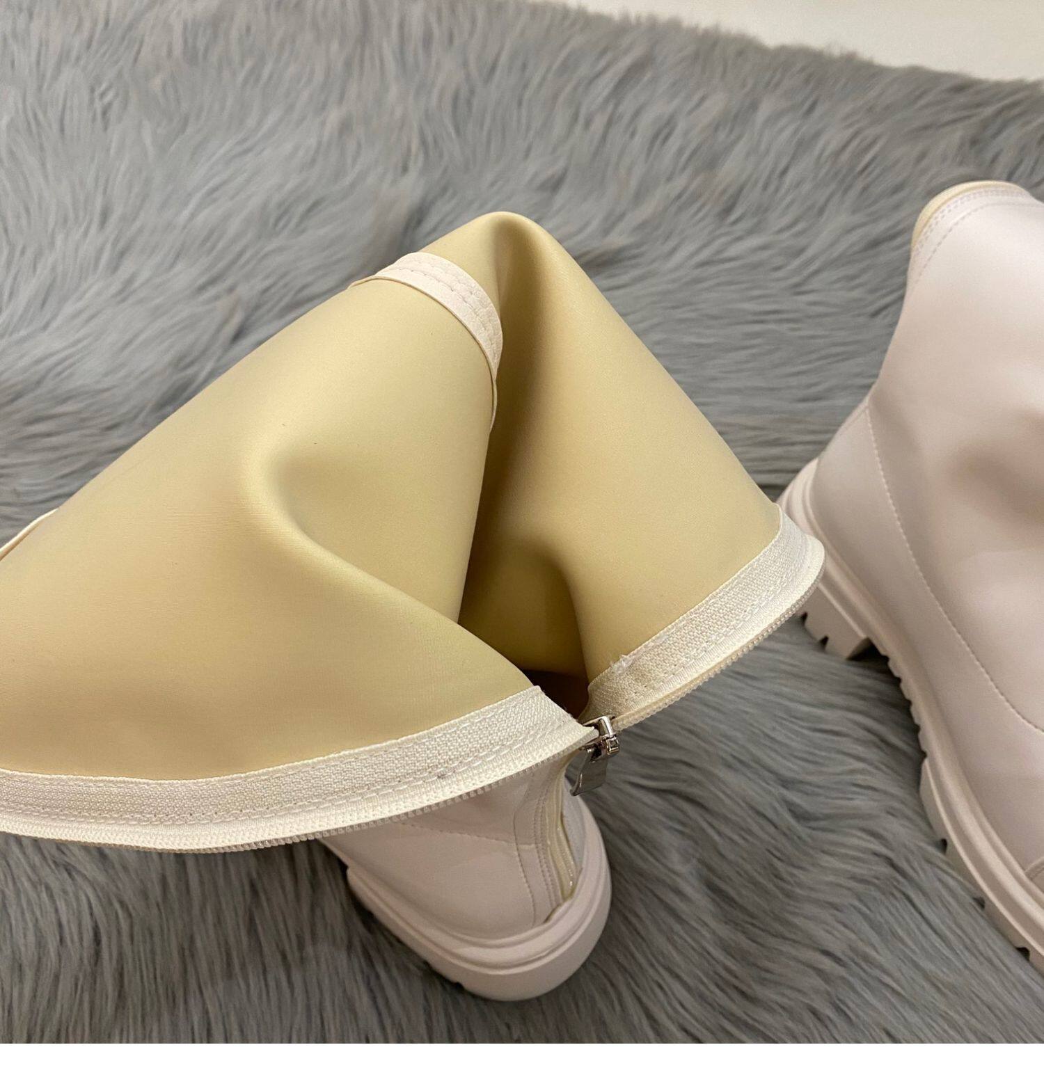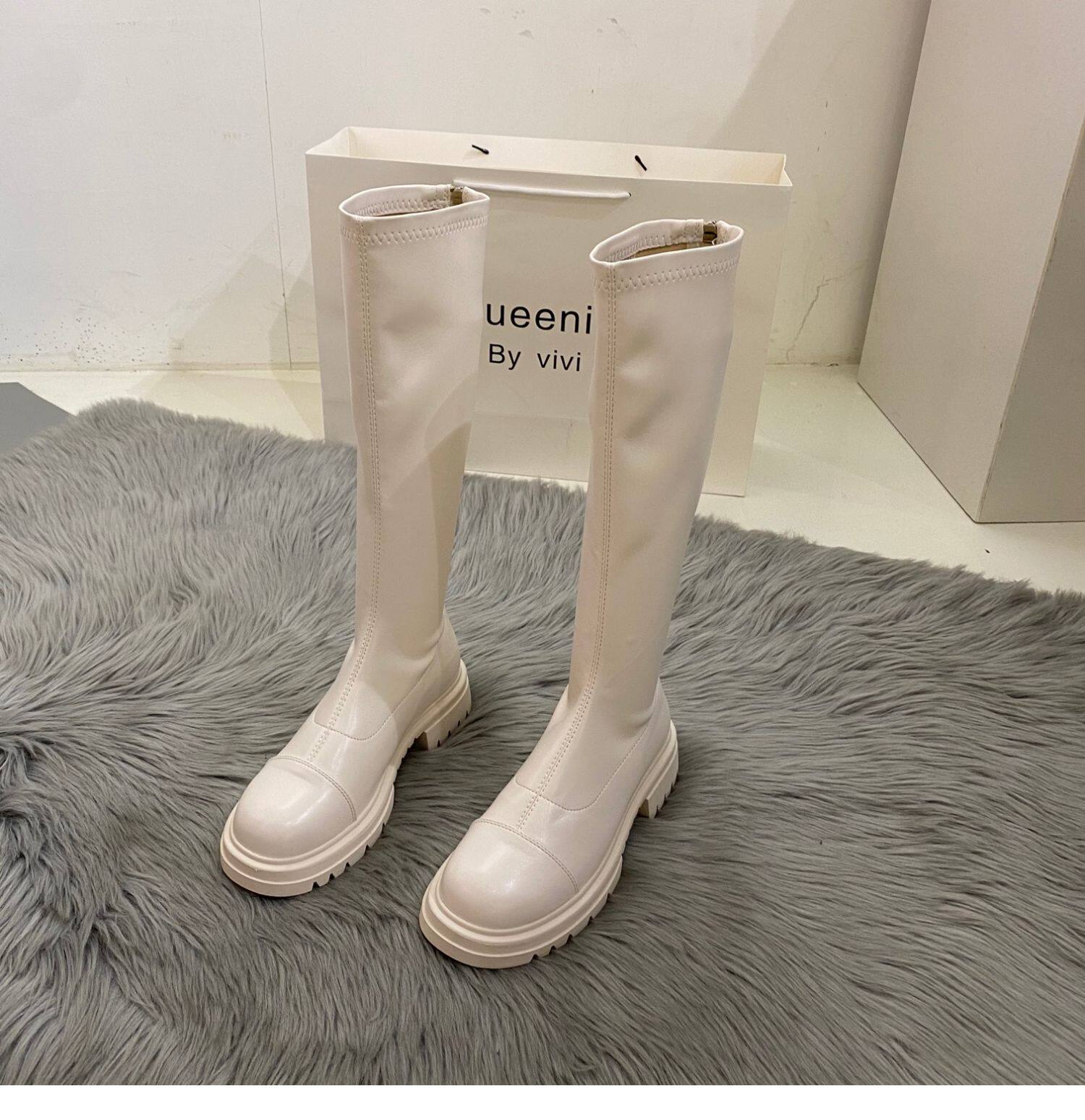 Бежевые высокие сапоги на платформе, демисезонные ботинки, коллекция 2022