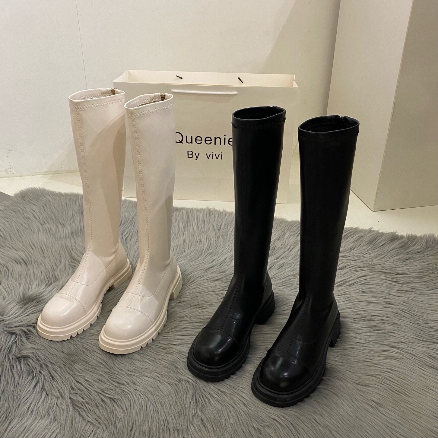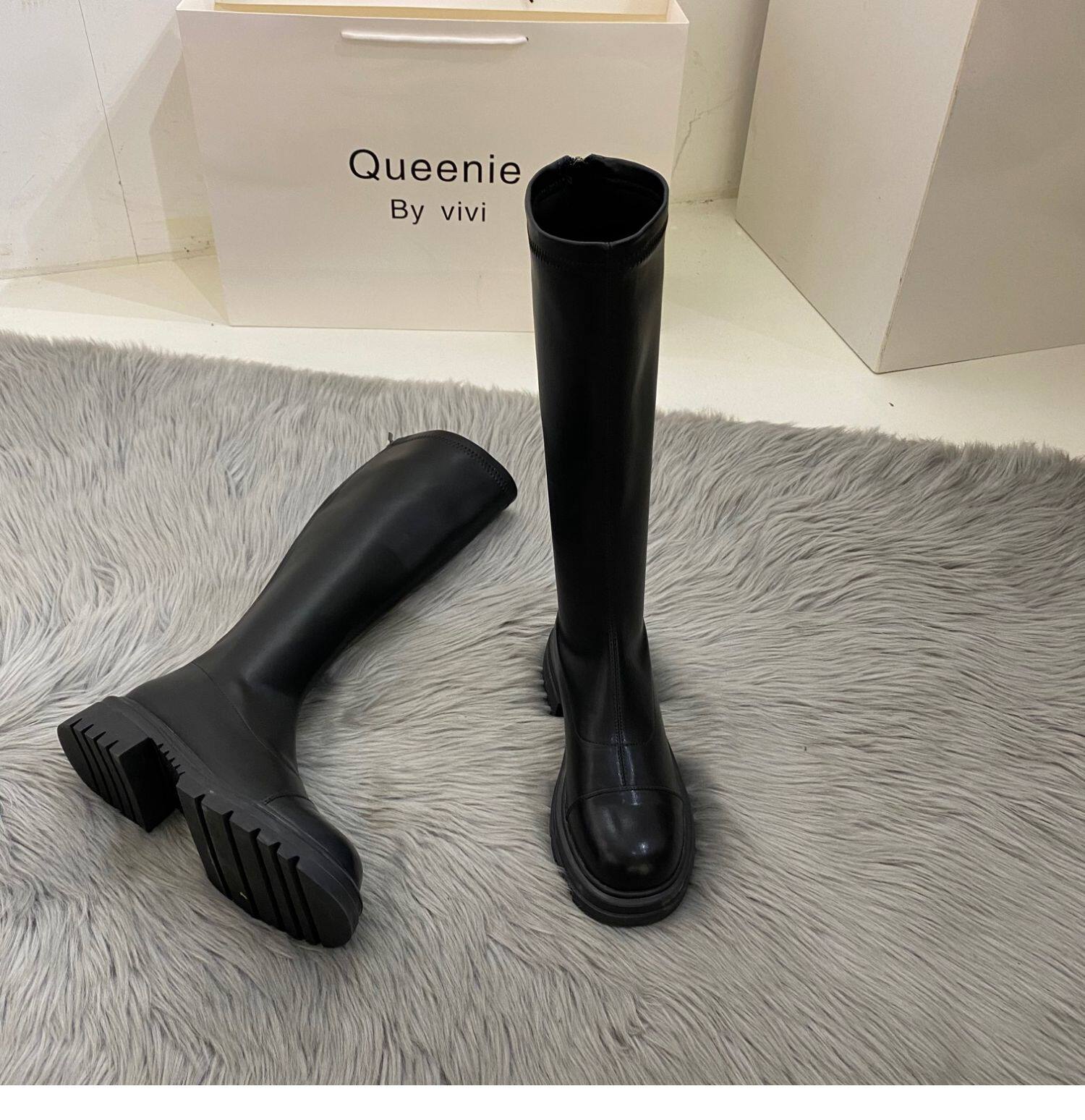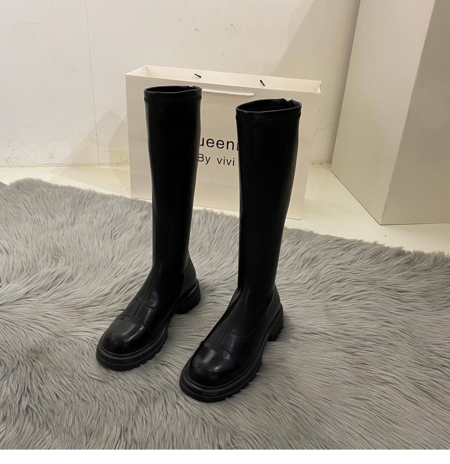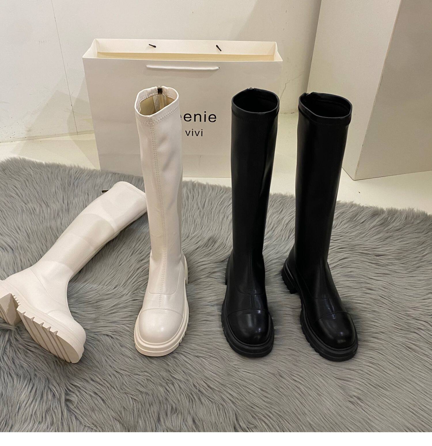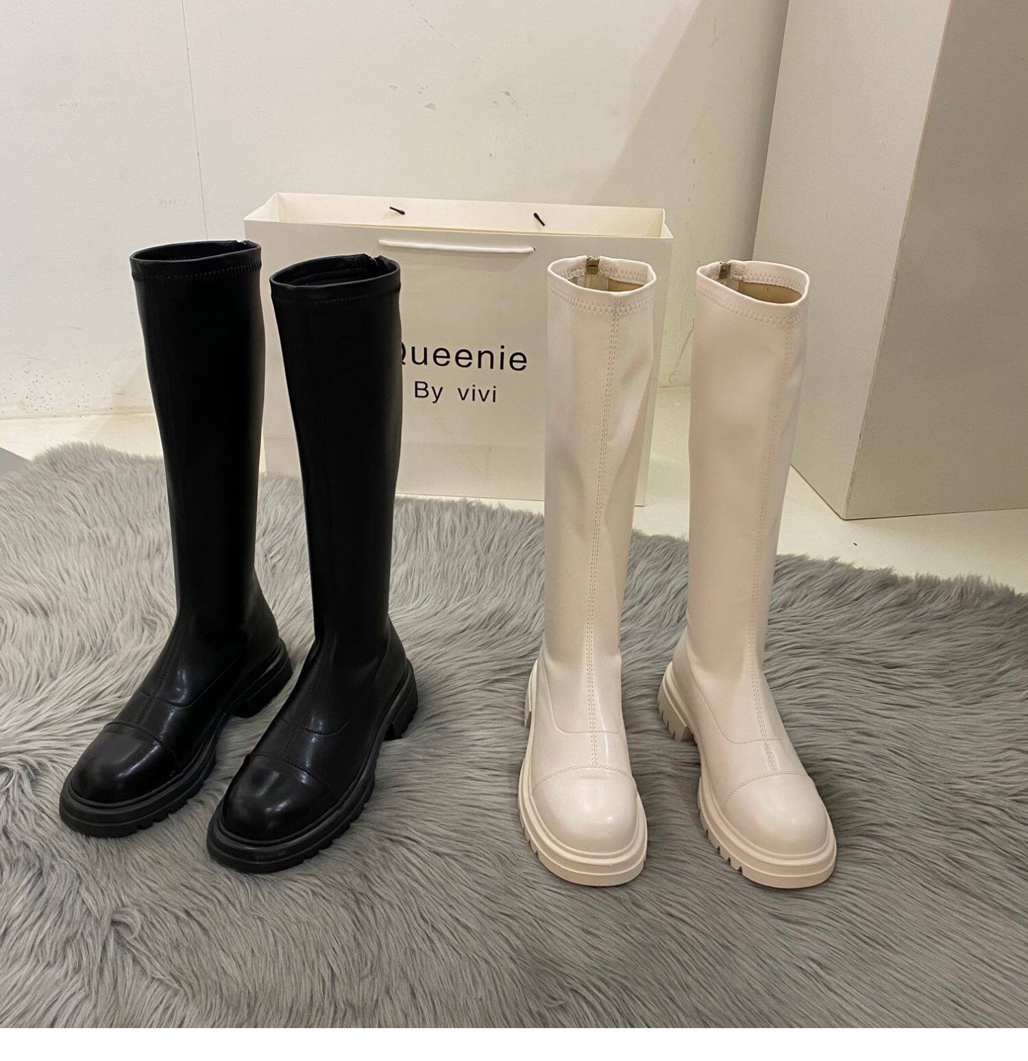 Бежевые высокие сапоги на платформе, демисезонные ботинки, коллекция 2022
