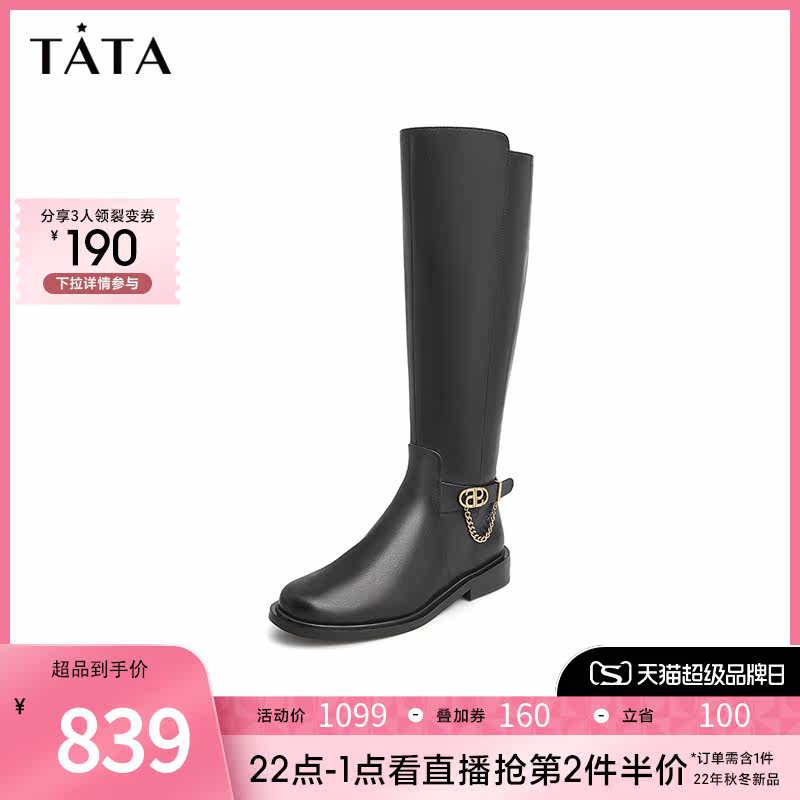 Тата, ее торговый центр, те же самые черные рыцарские ботинки, женские густые каблуки, середины -буты, зимние моды, женщина, новая 7qw82dg1
