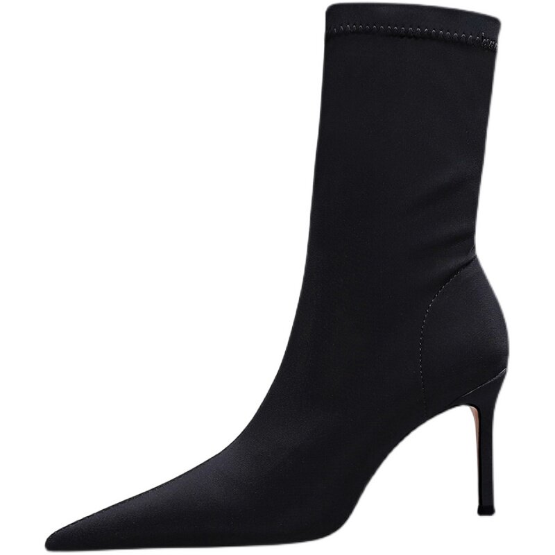 Эластичные сапоги, черные высокие ботинки с заостренным носом, коллекция 2023
