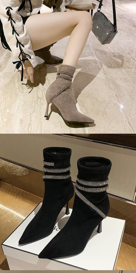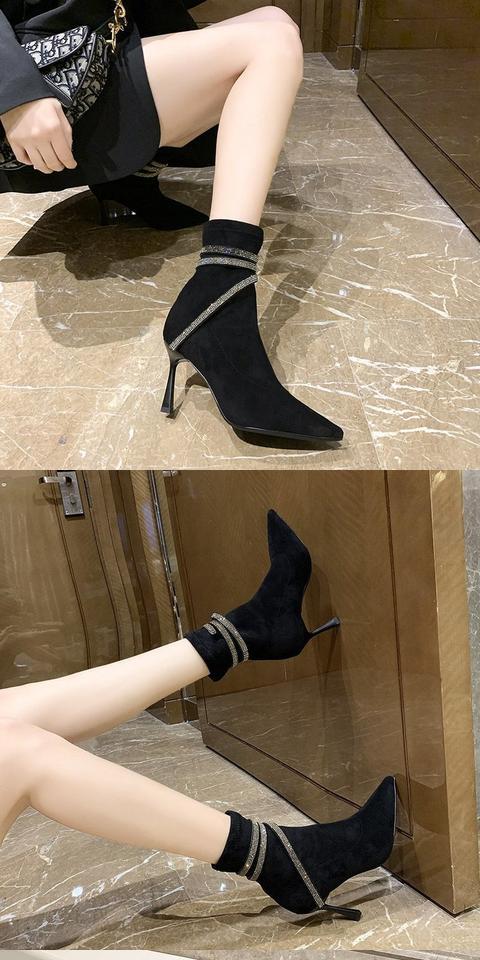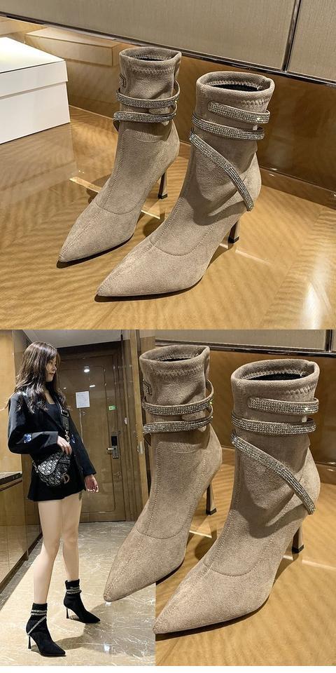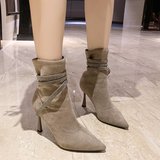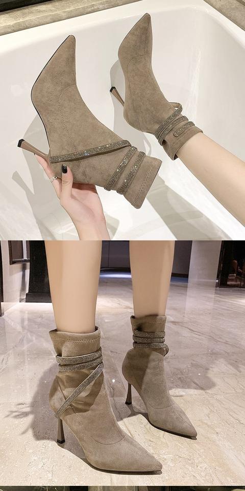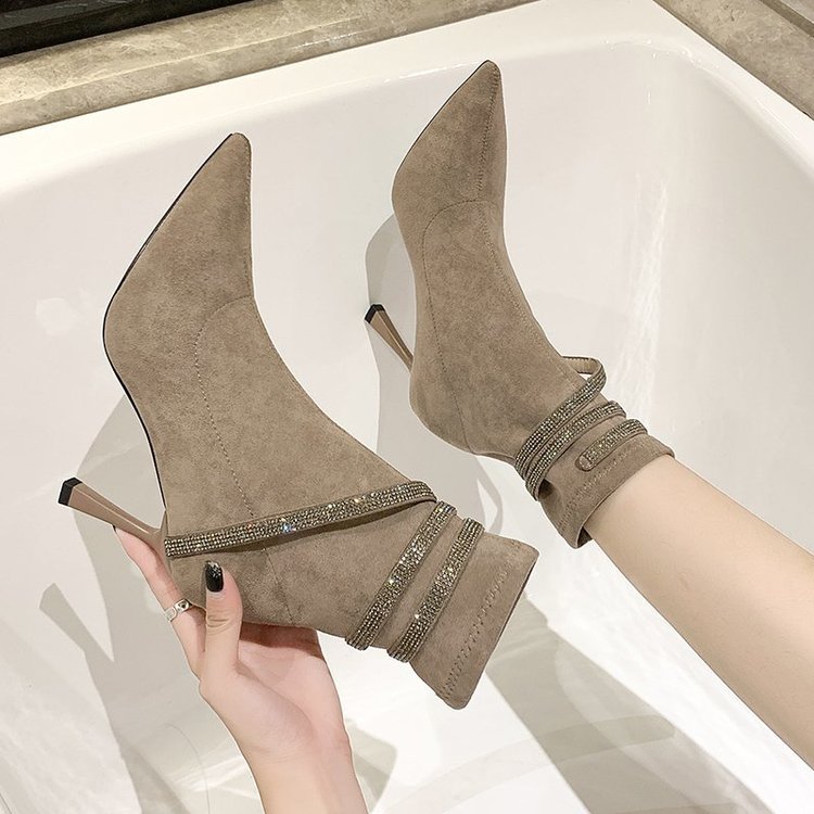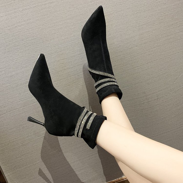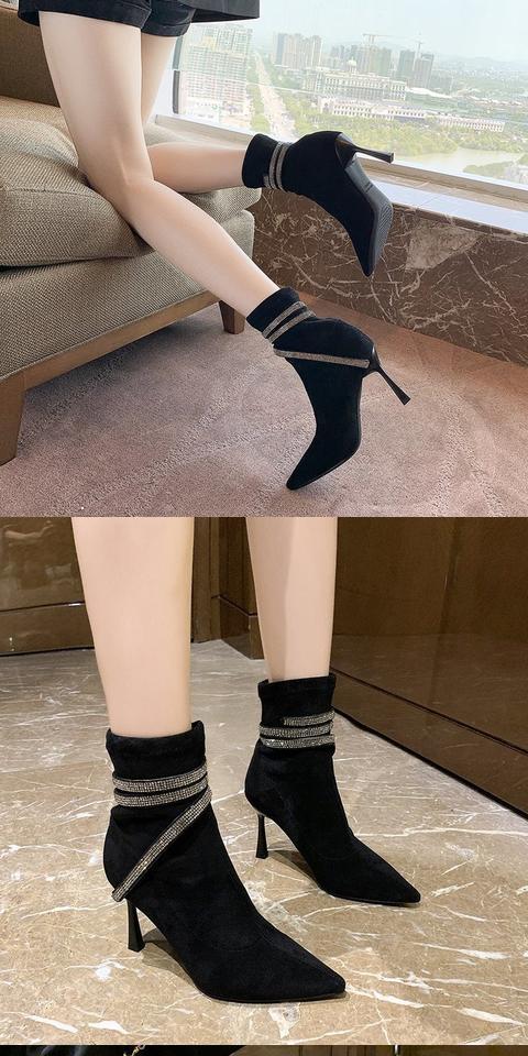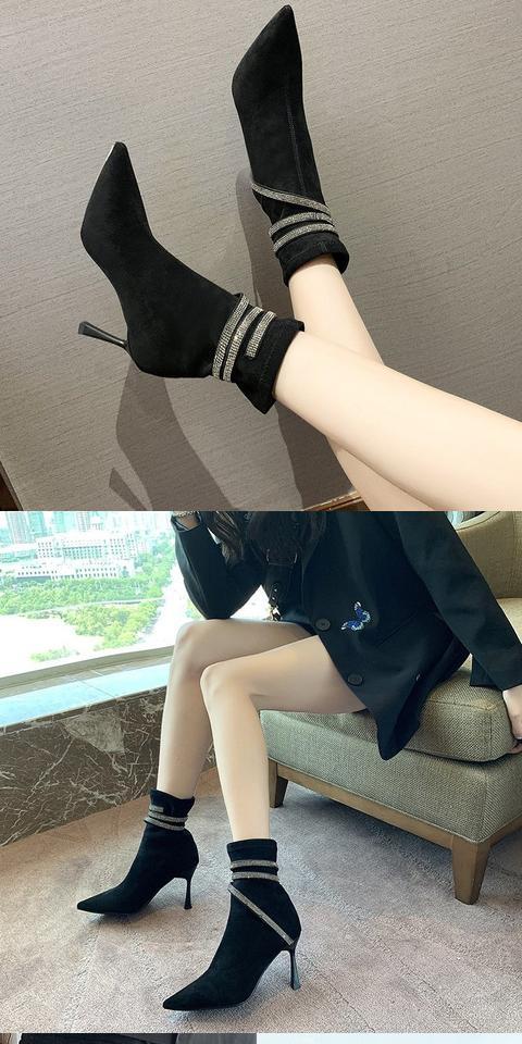 Martens, эластичная демисезонная сексуальная обувь с заостренным носом на высоком каблуке, короткие сапоги, французский стиль, по фигуре