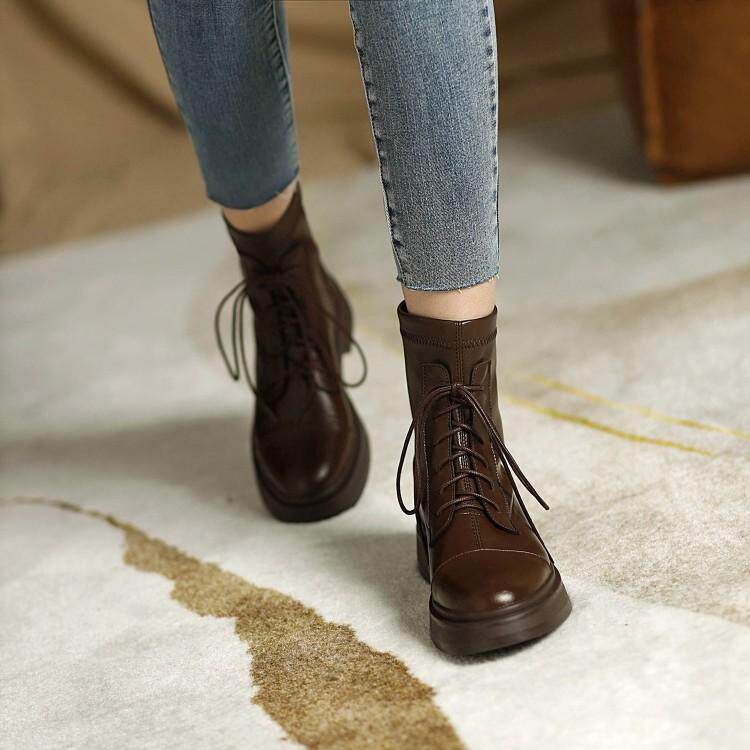 Осень и зима новые Knight Boots Short Tube кружев -густые женские ботинки с кружкой головой маленький размер 3233 Большие ярды 40414243 Прилив