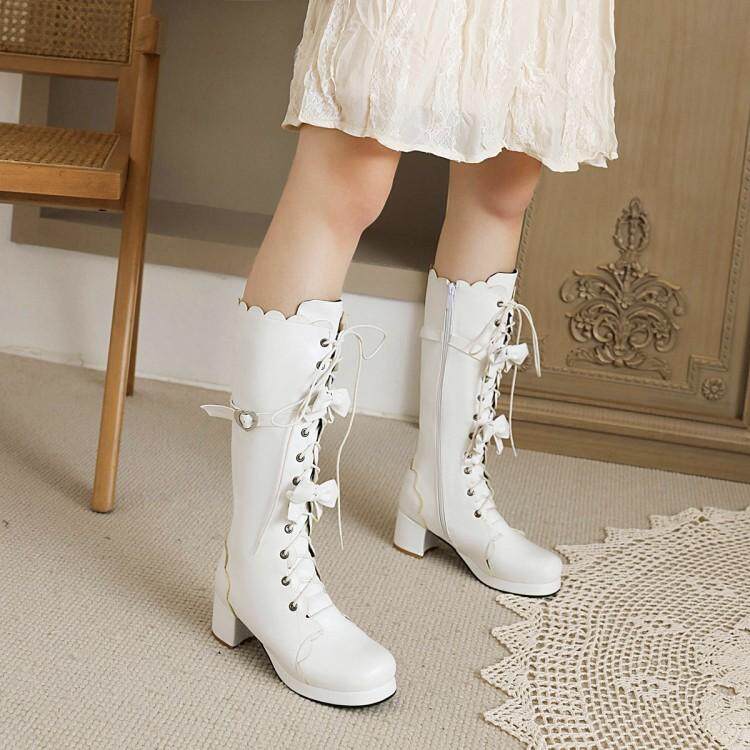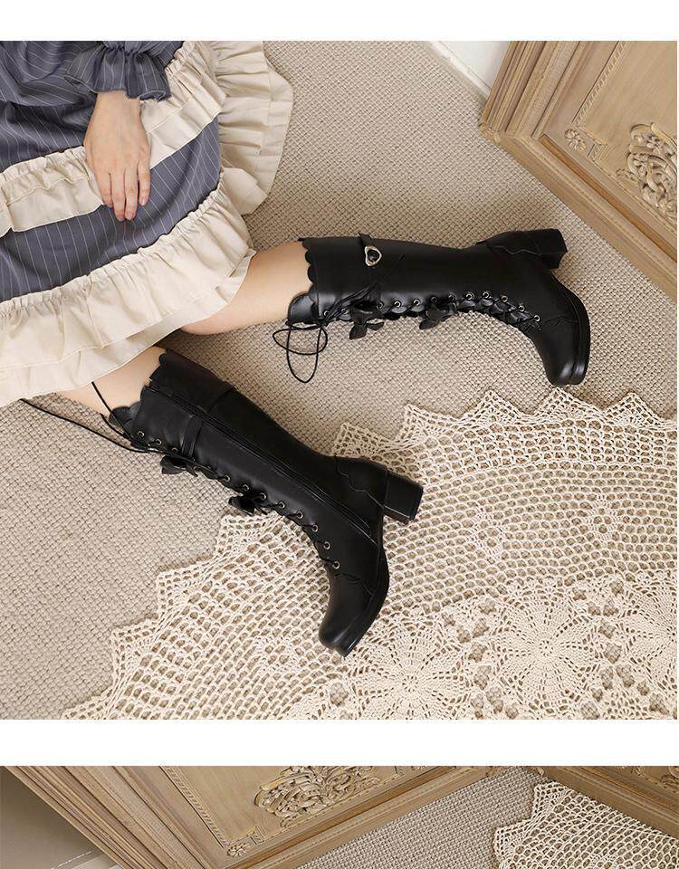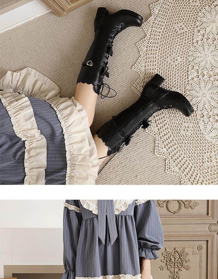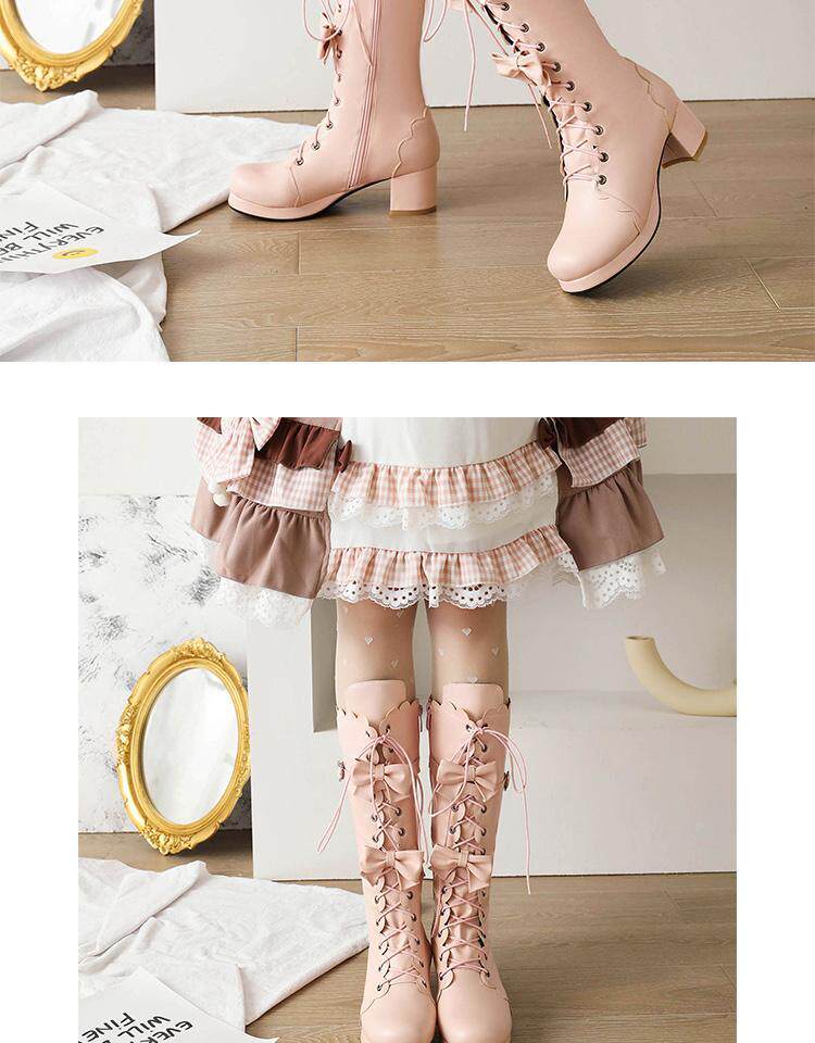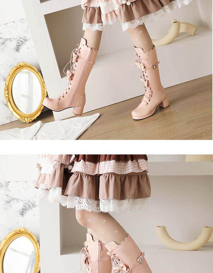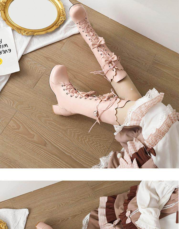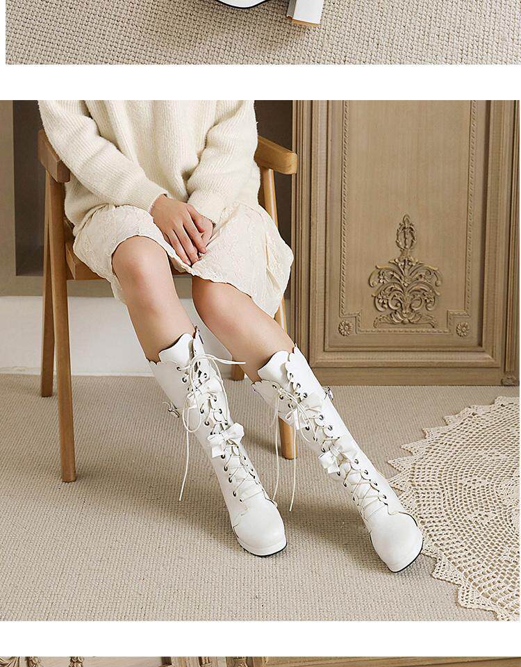 Новые осенние сапоги до середины икры в стиле Лолита, школьные сапоги до колена, школьные сапоги в стиле Лолиты, маленькие размеры 30-33, женские сапоги на толстом каблуке