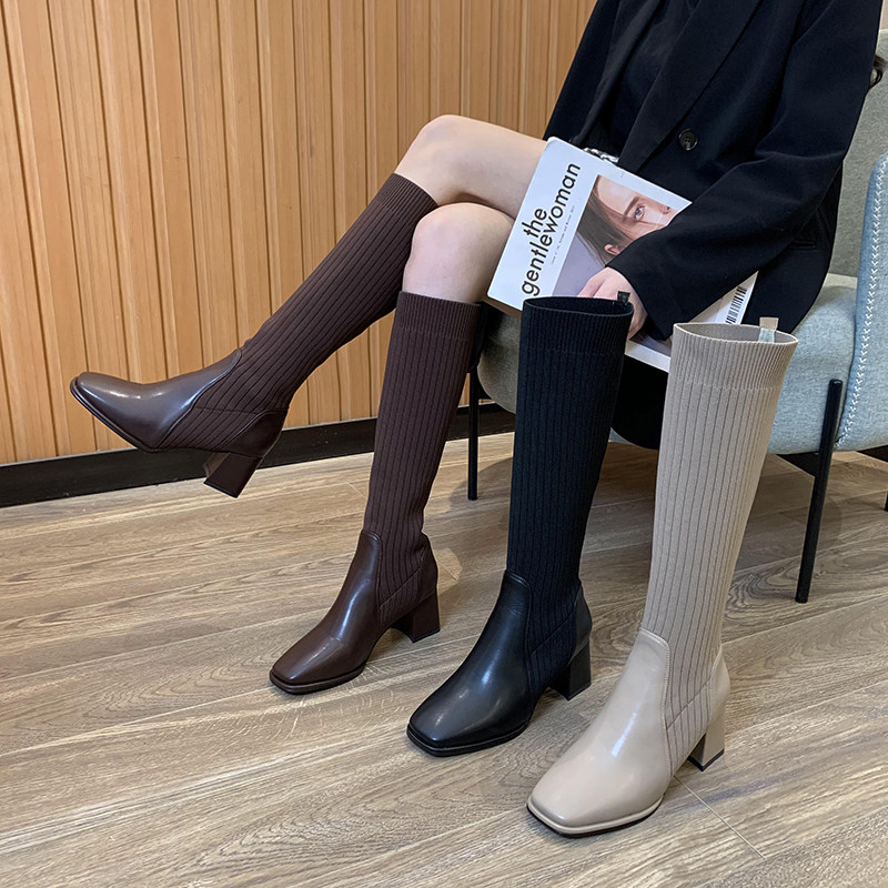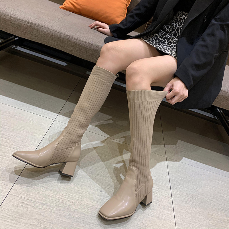 Модные универсальные эластичные трикотажные дышащие высокие сапоги, 2021 года, популярно в интернете