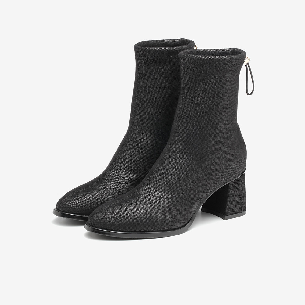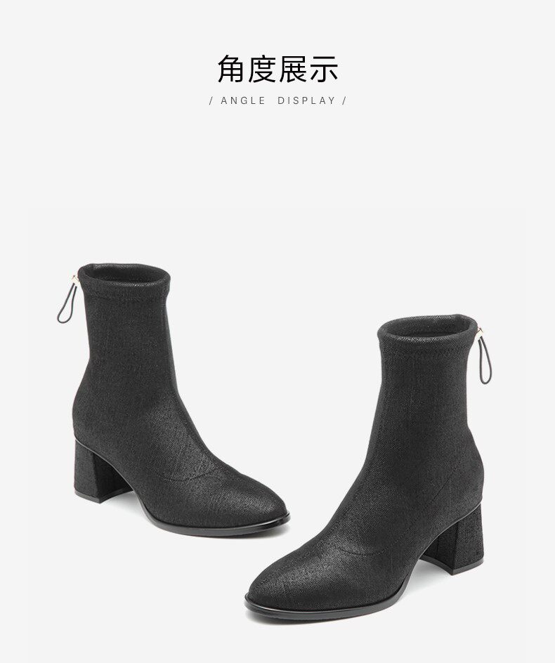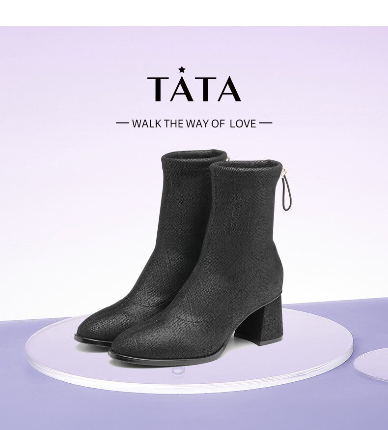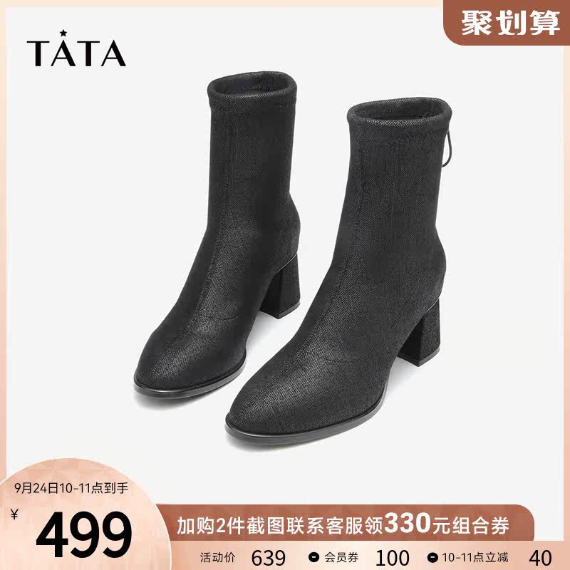 Тата, ее толстые тонкие ботинки женские черные эластичные сапоги женские короткие ботинки в зимних одиночных ботинках универсальные новые wfv01dz1