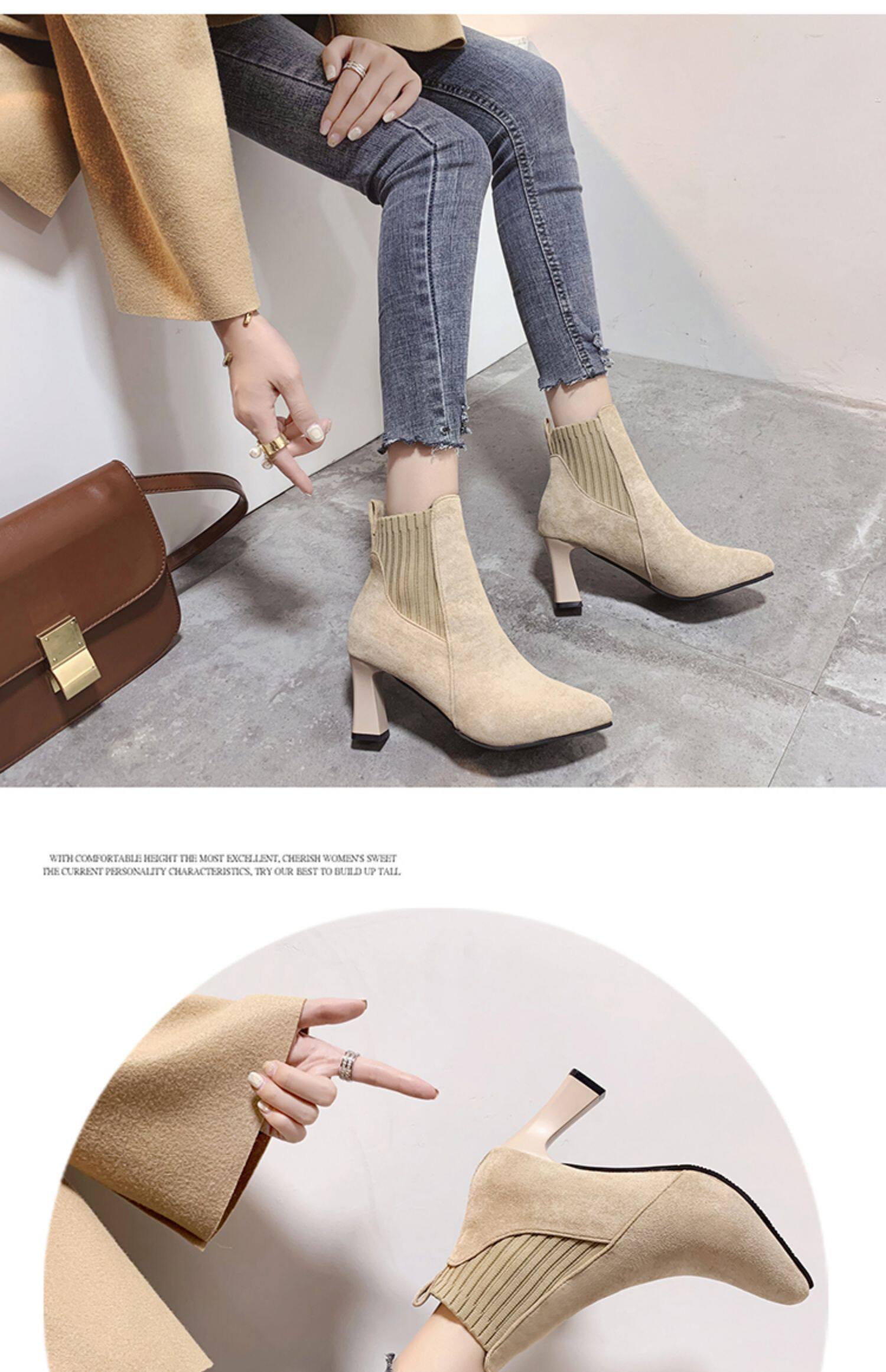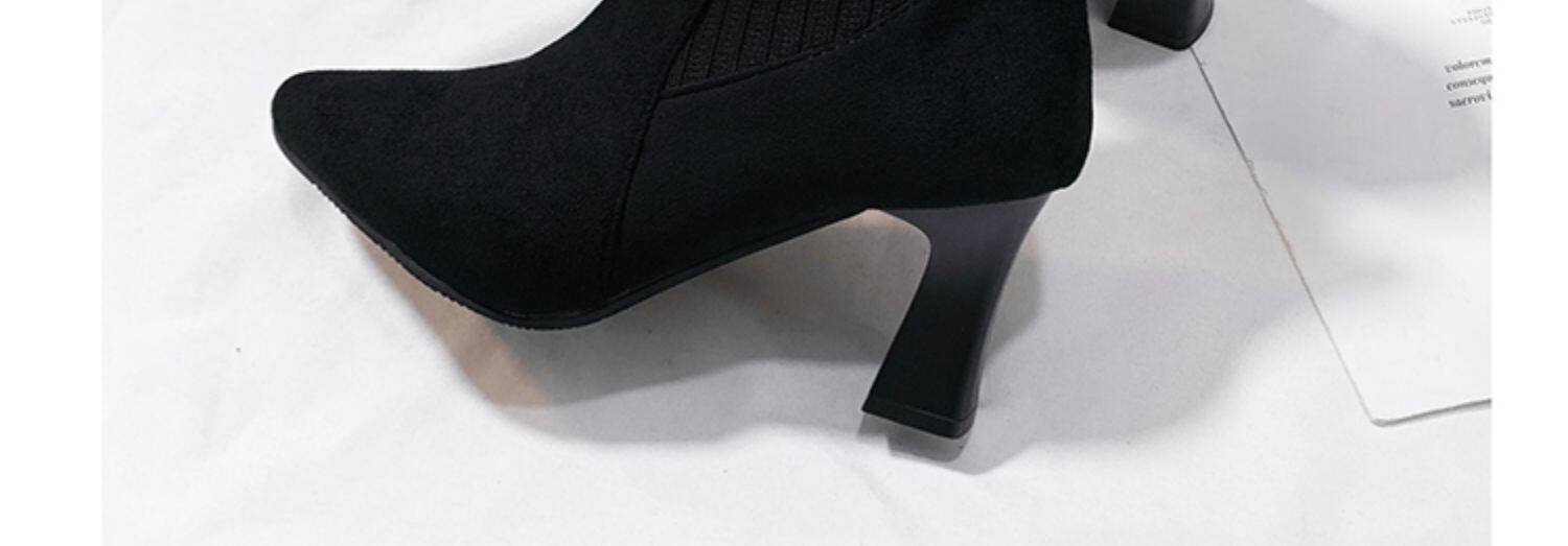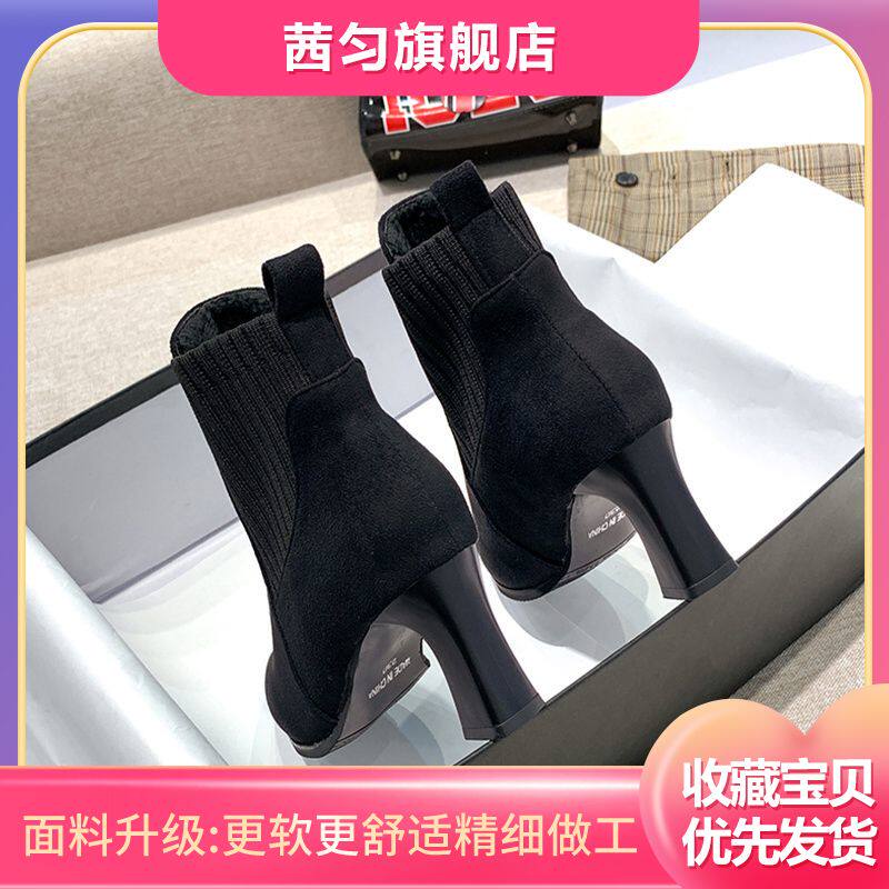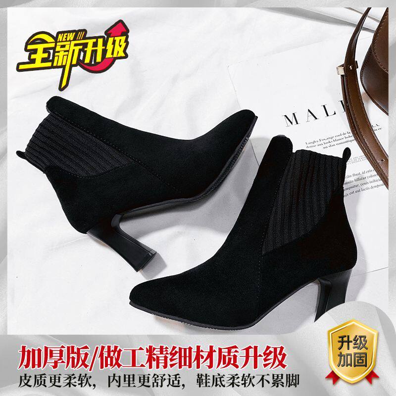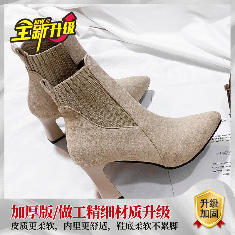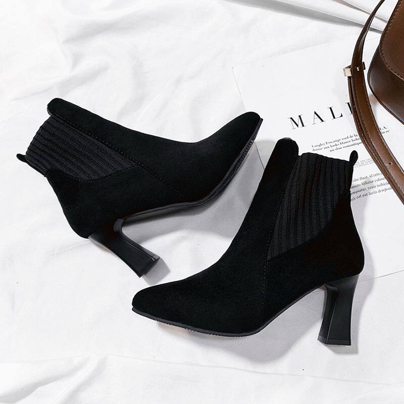 Демисезонные носки с заостренным носом, флисовые эластичные короткие сапоги на высоком каблуке, коллекция 2021, популярно в интернете