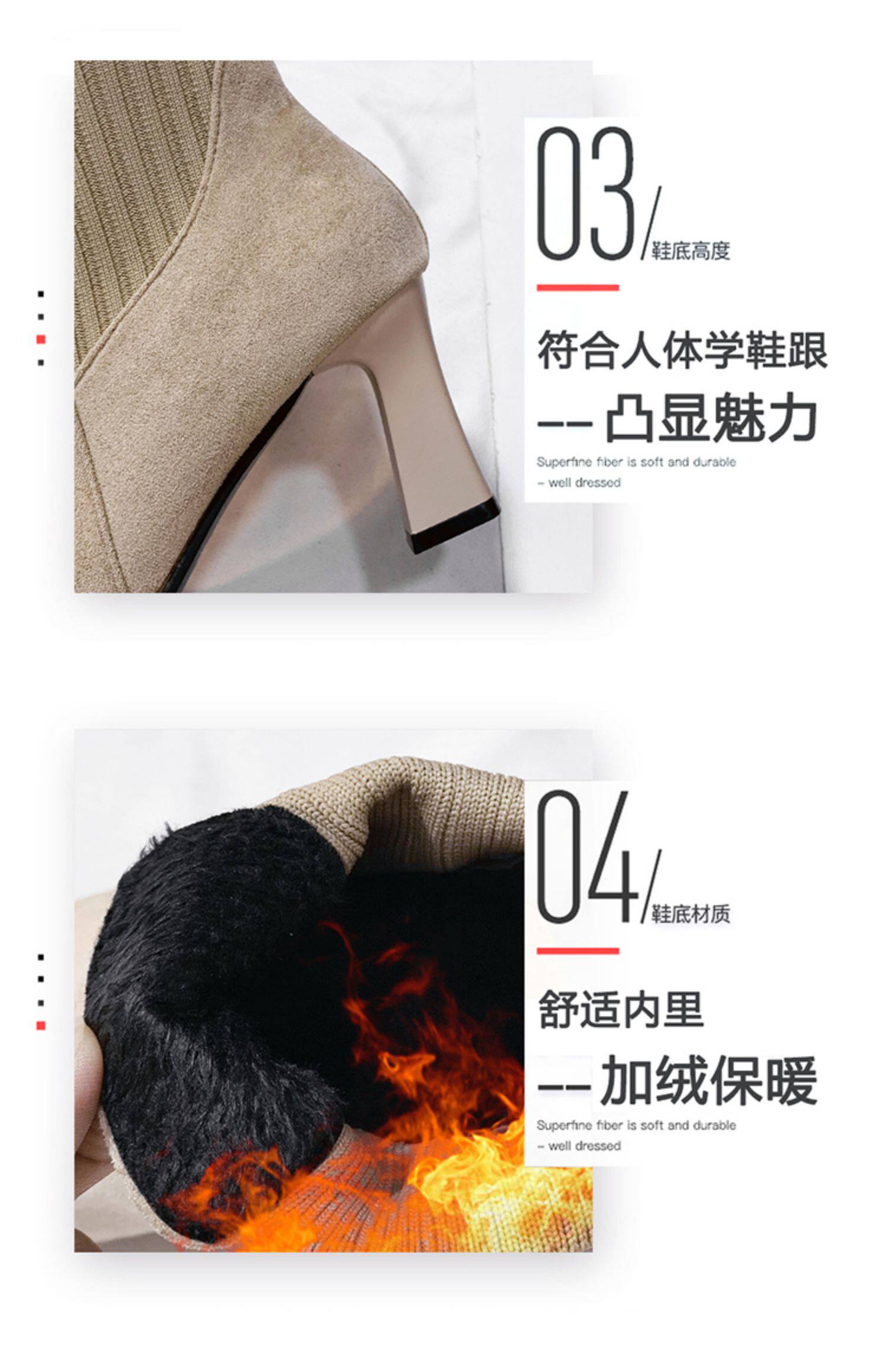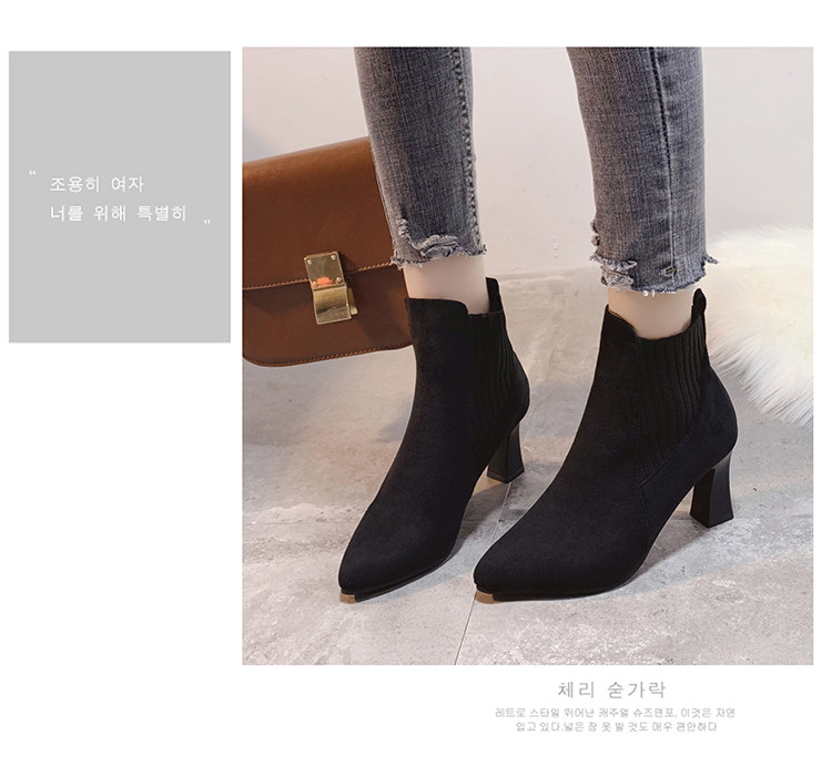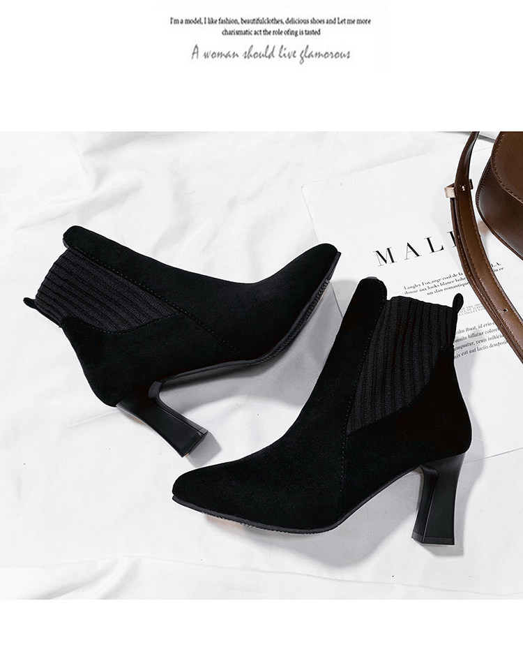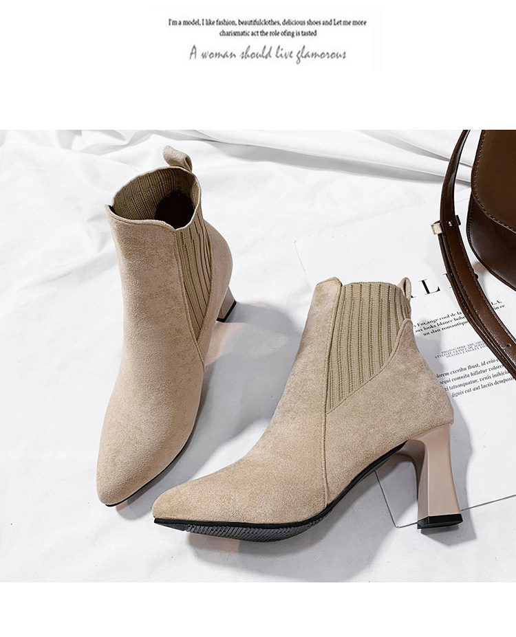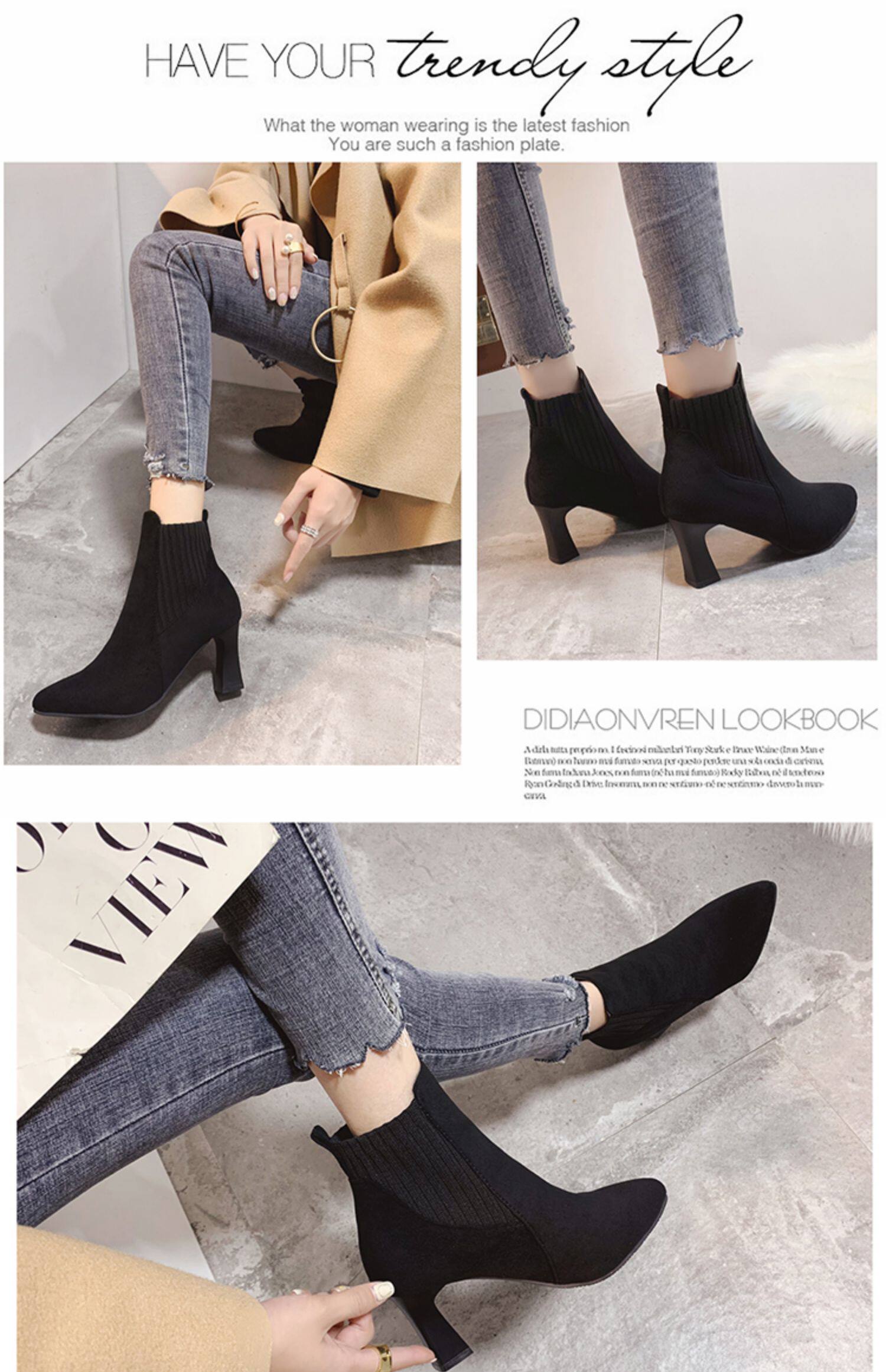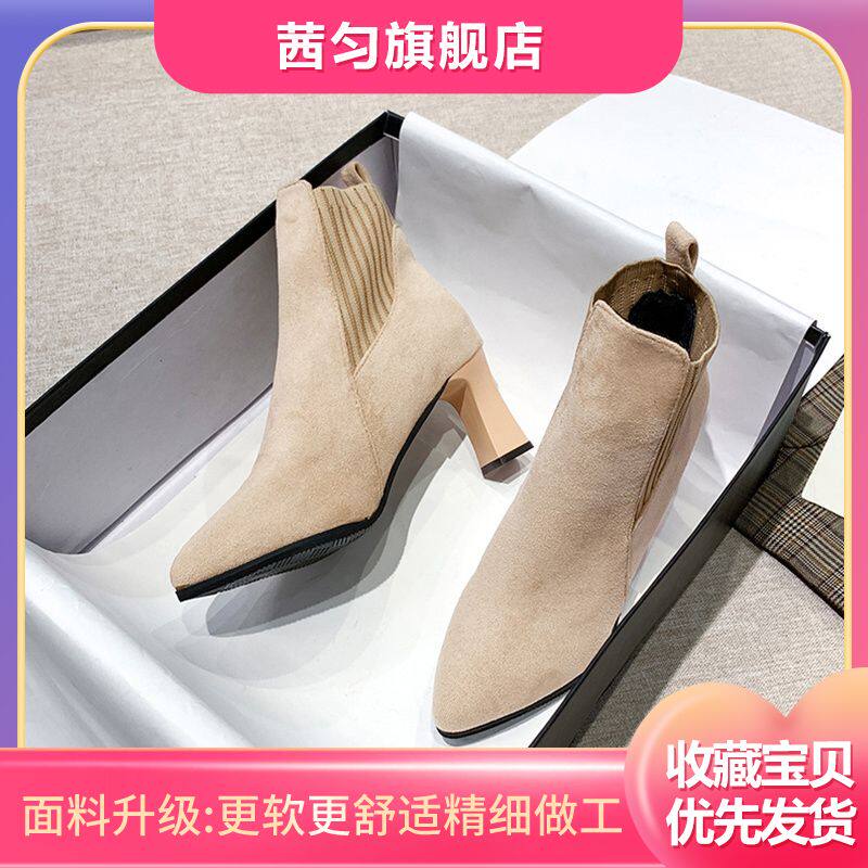 Демисезонные носки с заостренным носом, флисовые эластичные короткие сапоги на высоком каблуке, коллекция 2021, популярно в интернете