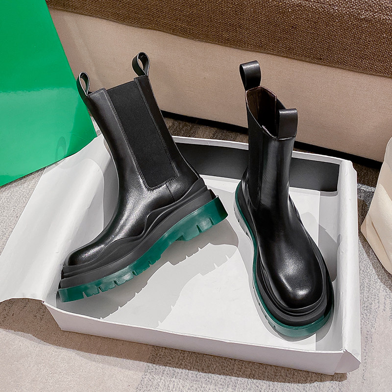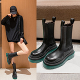 Martens, утепленные высокие зеленые челси на платформе, короткие сапоги, ботинки, коллекция 2023, средней длины
