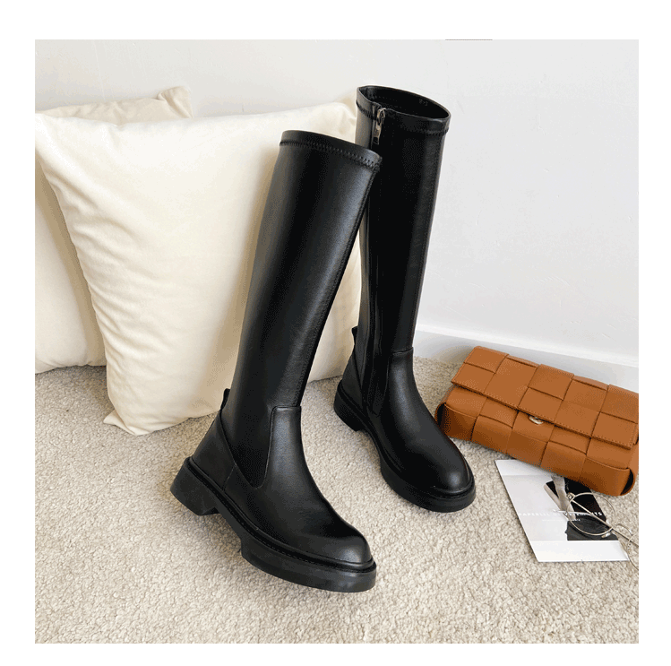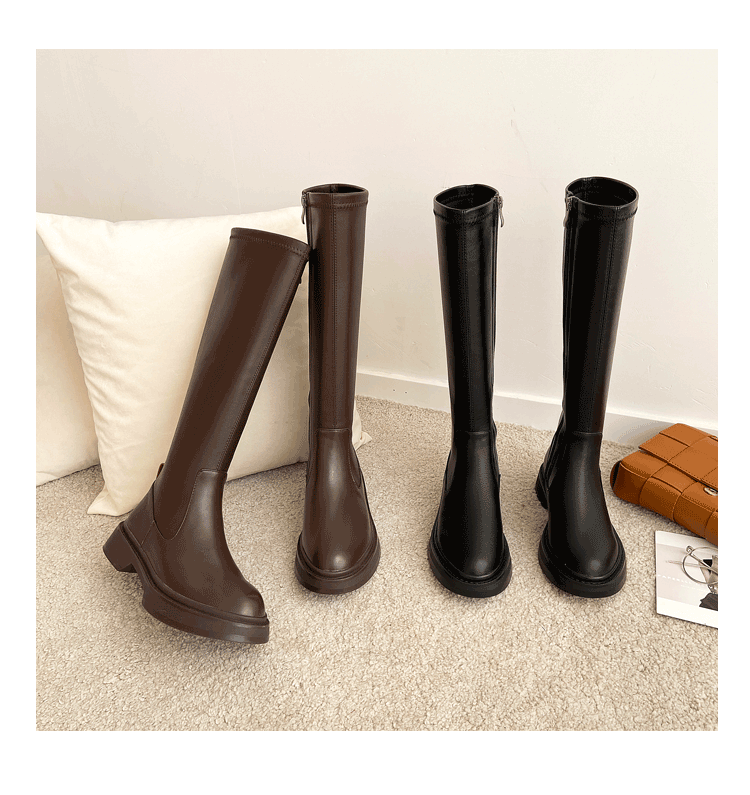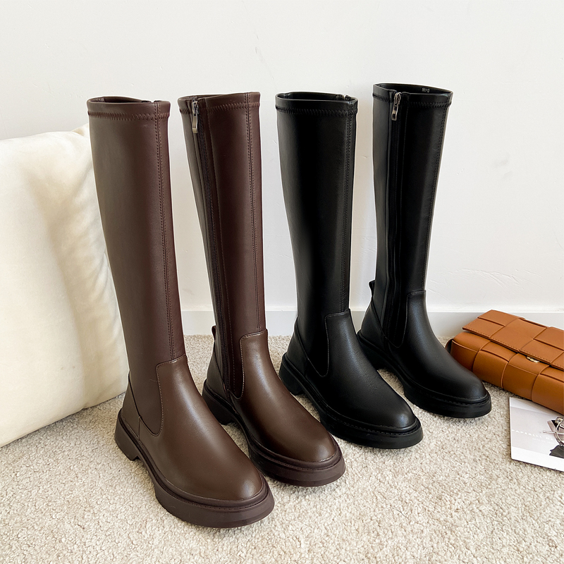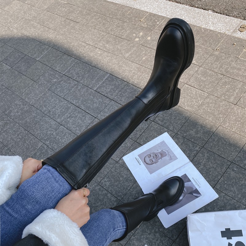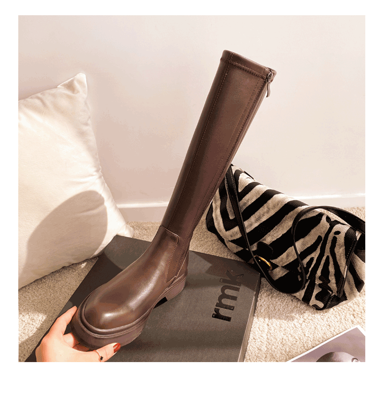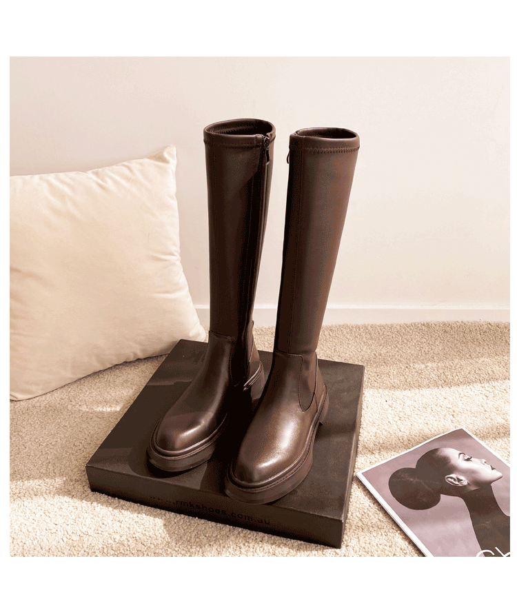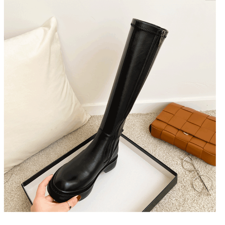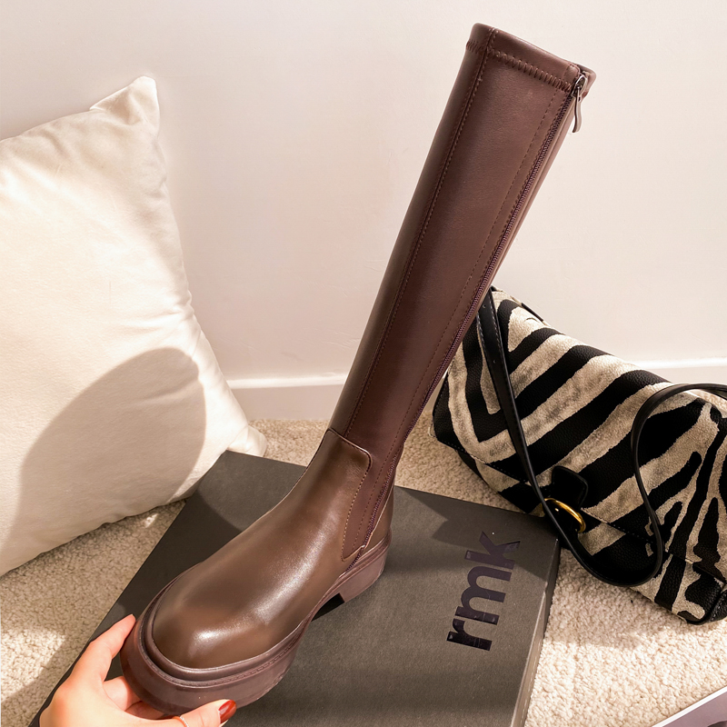 Демисезонные эластичные высокие сапоги на платформе, из натуральной кожи, по фигуре